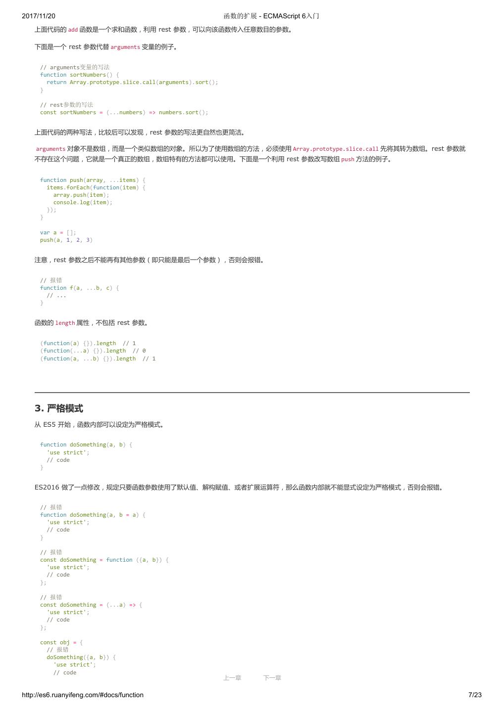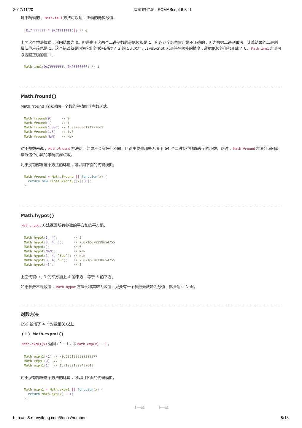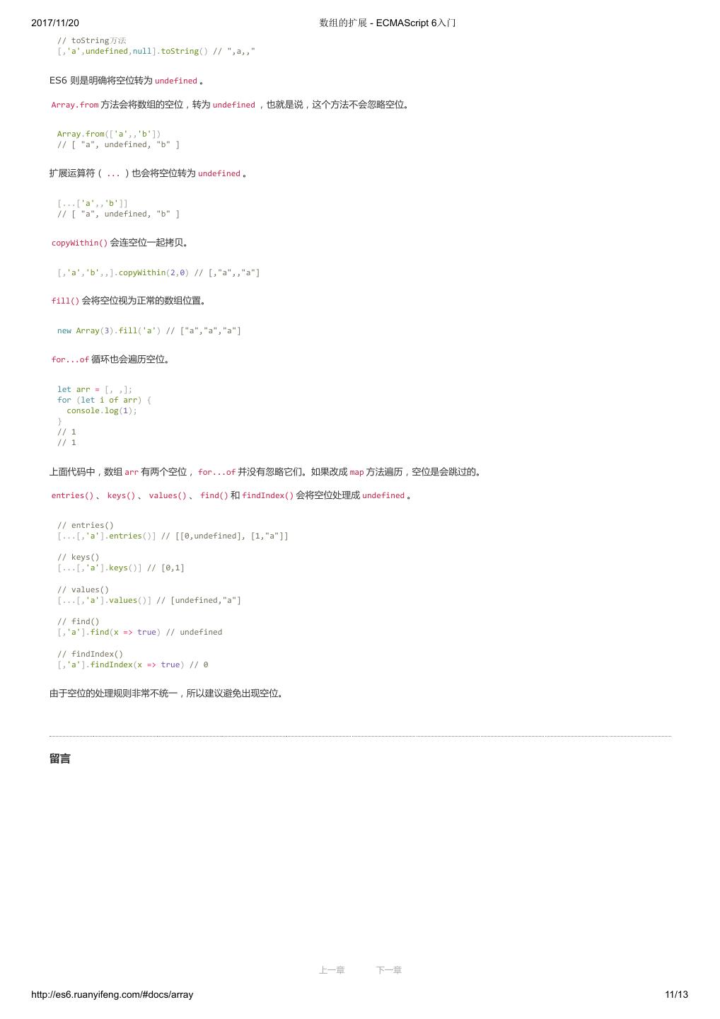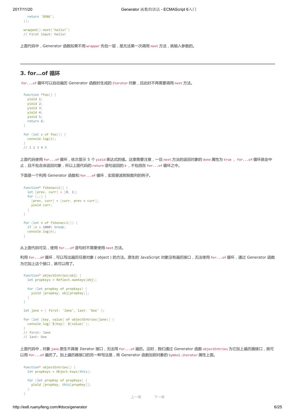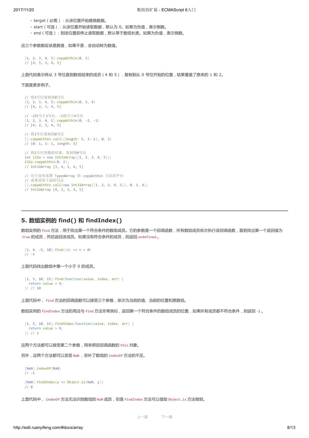 1 .2017/11/20 ECMAScript 6 入门 - ECMAScript 6入门 本书覆盖 ES6 与上一个版本 ES5 的所有不同之处,对涉及的语法知识给予详细介绍,并给出大量简洁易懂的示例代码。 本书为中级难度,适合已经掌握 ES5 的读者,用来了解这门语言的最新发展;也可当作参考手册,查寻新增的语法点。 全书已由电子工业出版社出版,2017年9月推出了第三版,书名为《ES6 标准入门》。纸版是基于网站内容排版印刷的。 感谢张春雨编辑支持我将全书开源的做法。如果您认可这本书,建议购买纸版。这样可以使出版社不因出版开源书籍而亏钱,进而鼓励更多的作者开源自 己的书籍。下面是第三版的购买地址。 - 淘宝 - 京东 - 当当 - 亚马逊 - China-pub 版权许可 本书采用“保持署名—非商用”创意共享4.0许可证。 只要保持原作者署名和非商用,您可以自由地阅读、分享、修改本书。 详细的法律条文请参见创意共享网站。 留言 下一章 http://es6.ruanyifeng.com/#undefined 2/2