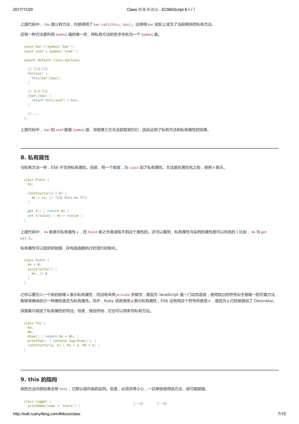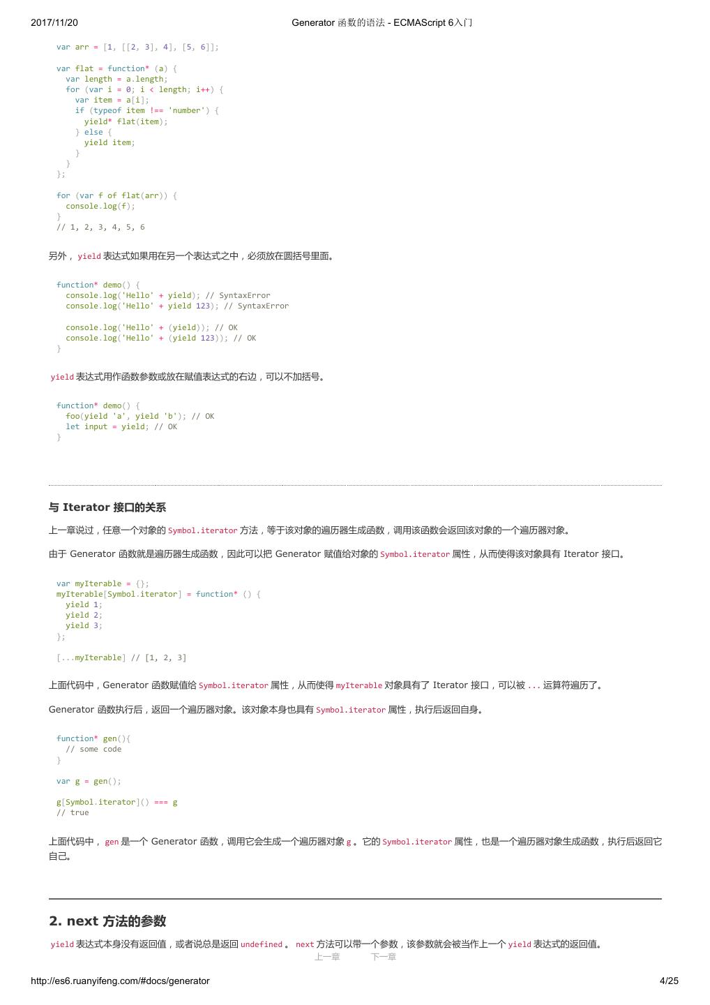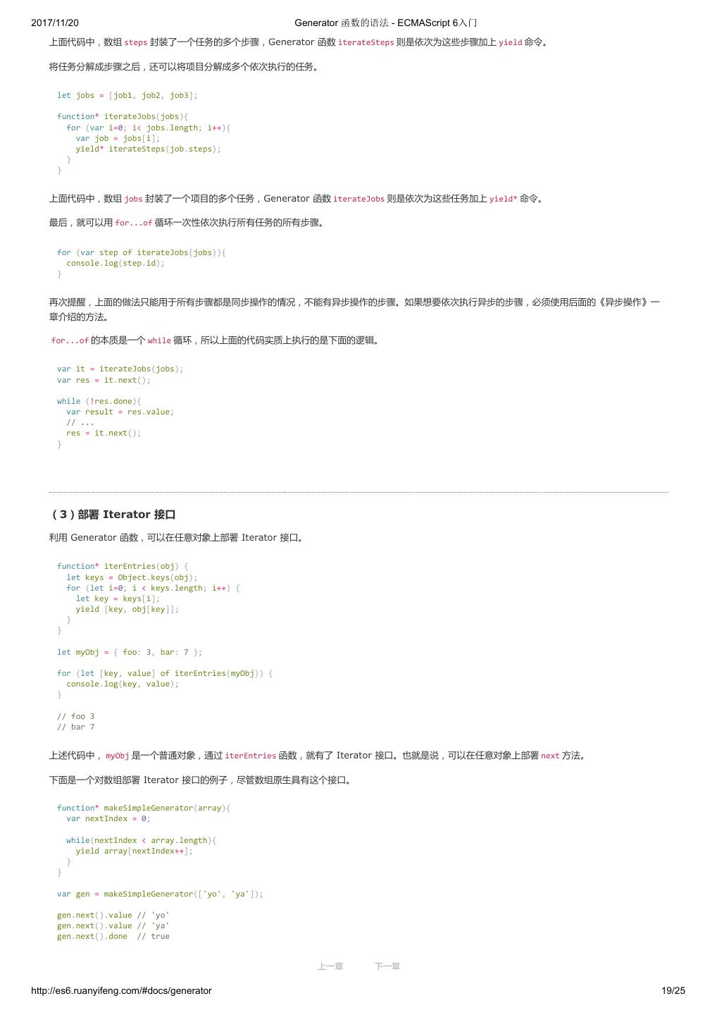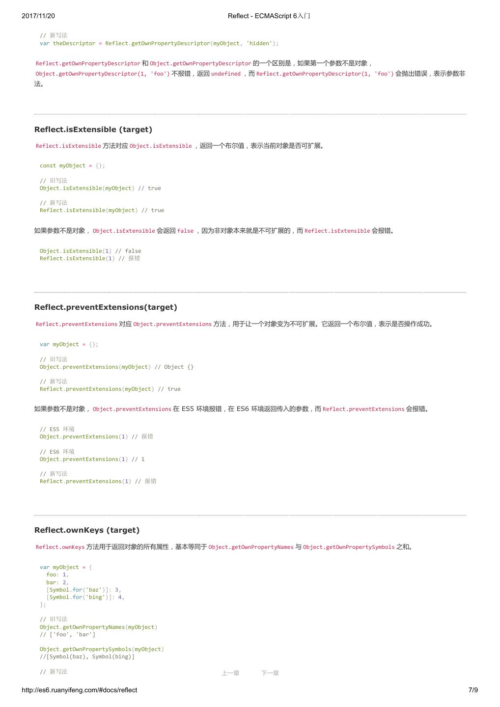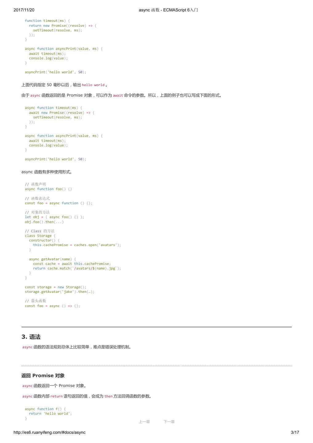 1 .2017/11/20 ECMAScript 6 入门 - ECMAScript 6入门 本书覆盖 ES6 与上一个版本 ES5 的所有不同之处,对涉及的语法知识给予详细介绍,并给出大量简洁易懂的示例代码。 本书为中级难度,适合已经掌握 ES5 的读者,用来了解这门语言的最新发展;也可当作参考手册,查寻新增的语法点。 全书已由电子工业出版社出版,2017年9月推出了第三版,书名为《ES6 标准入门》。纸版是基于网站内容排版印刷的。 感谢张春雨编辑支持我将全书开源的做法。如果您认可这本书,建议购买纸版。这样可以使出版社不因出版开源书籍而亏钱,进而鼓励更多的作者开源自 己的书籍。下面是第三版的购买地址。 - 淘宝 - 京东 - 当当 - 亚马逊 - China-pub 版权许可 本书采用“保持署名—非商用”创意共享4.0许可证。 只要保持原作者署名和非商用,您可以自由地阅读、分享、修改本书。 详细的法律条文请参见创意共享网站。 留言 下一章 http://es6.ruanyifeng.com/#undefined 2/2