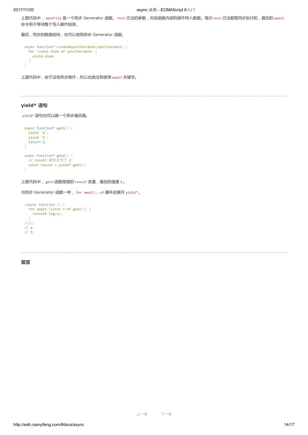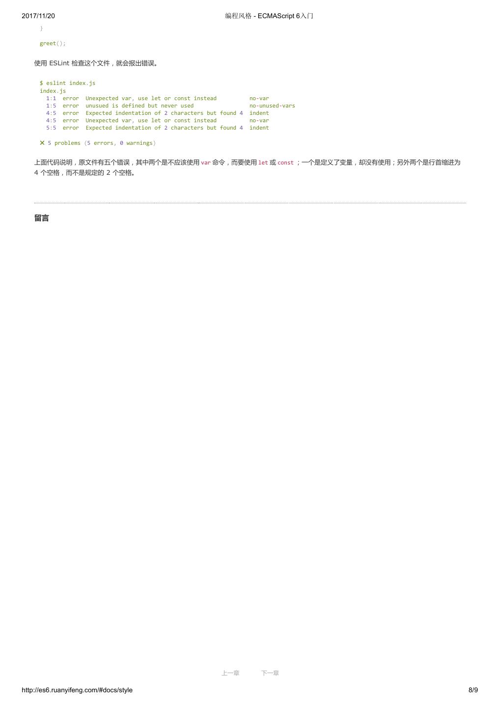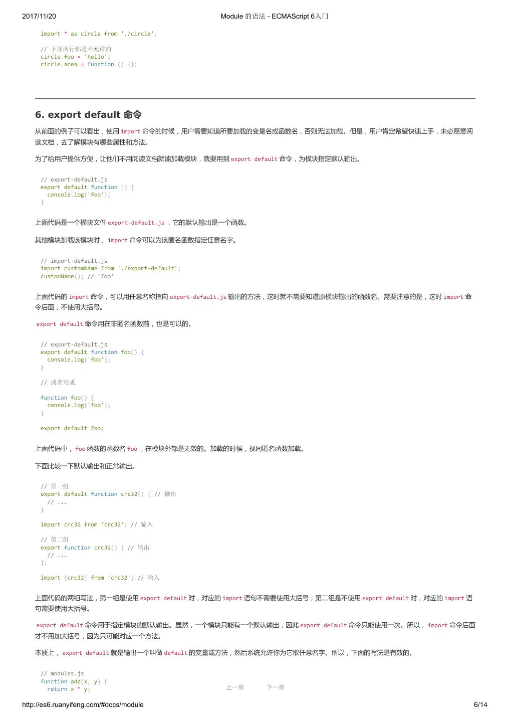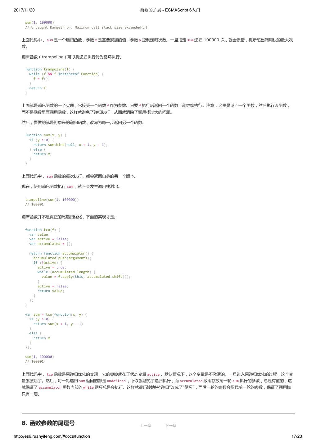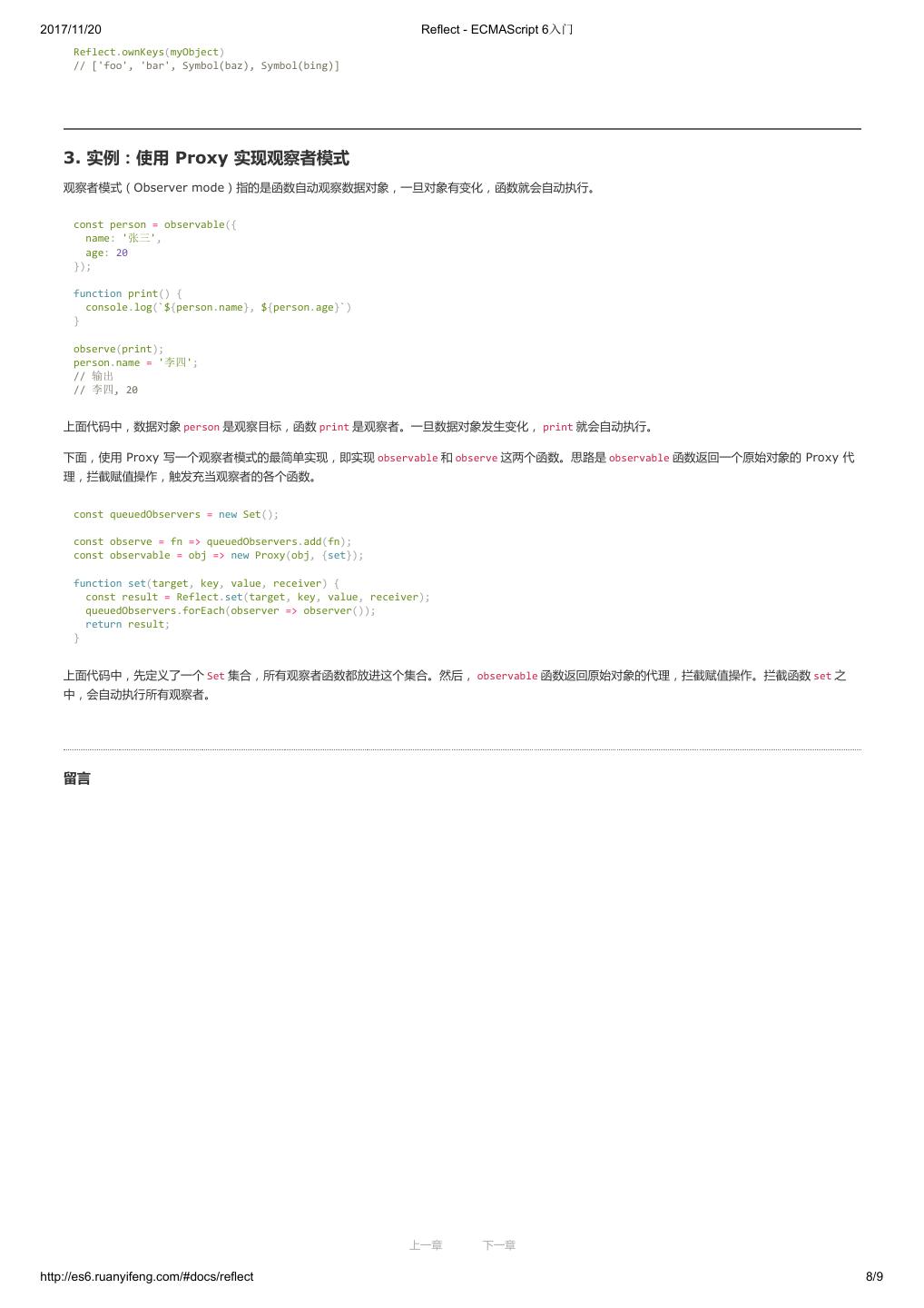 1 .2017/11/20 ECMAScript 6 入门 - ECMAScript 6入门 本书覆盖 ES6 与上一个版本 ES5 的所有不同之处,对涉及的语法知识给予详细介绍,并给出大量简洁易懂的示例代码。 本书为中级难度,适合已经掌握 ES5 的读者,用来了解这门语言的最新发展;也可当作参考手册,查寻新增的语法点。 全书已由电子工业出版社出版,2017年9月推出了第三版,书名为《ES6 标准入门》。纸版是基于网站内容排版印刷的。 感谢张春雨编辑支持我将全书开源的做法。如果您认可这本书,建议购买纸版。这样可以使出版社不因出版开源书籍而亏钱,进而鼓励更多的作者开源自 己的书籍。下面是第三版的购买地址。 - 淘宝 - 京东 - 当当 - 亚马逊 - China-pub 版权许可 本书采用“保持署名—非商用”创意共享4.0许可证。 只要保持原作者署名和非商用,您可以自由地阅读、分享、修改本书。 详细的法律条文请参见创意共享网站。 留言 下一章 http://es6.ruanyifeng.com/#undefined 2/2