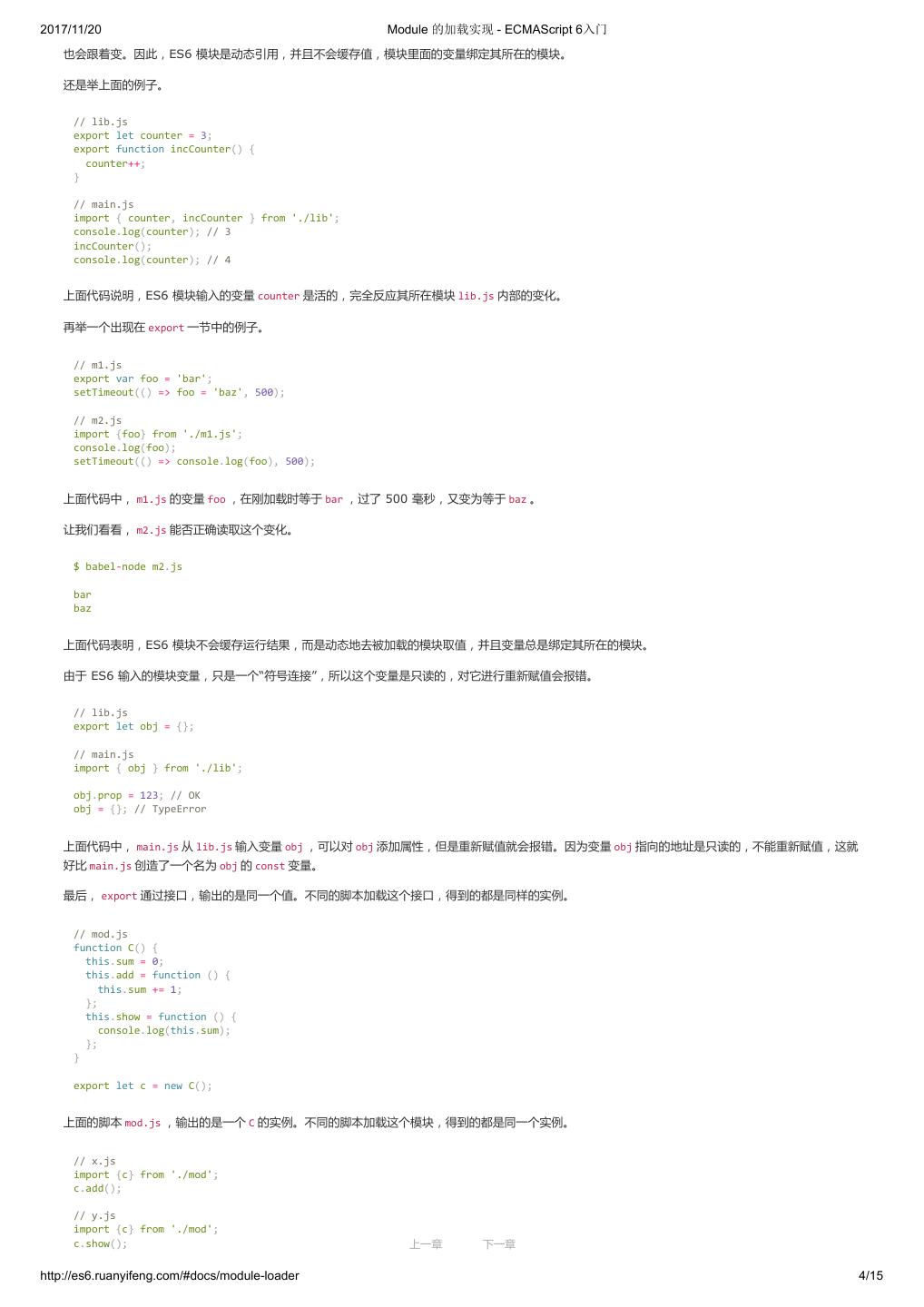 9 .2017/11/20 ECMAScript 6 简介 - ECMAScript 6入门 Traceur 允许将 ES6 代码直接插入网页。首先,必须在网页头部加载 Traceur 库文件。 <script src="https://google.github.io/traceur-compiler/bin/traceur.js"></script> <script src="https://google.github.io/traceur-compiler/bin/BrowserSystem.js"></script> <script src="https://google.github.io/traceur-compiler/src/bootstrap.js"></script> <script type="module"> import './Greeter.js'; </script> 上面代码中,一共有 4 个 script 标签。第一个是加载 Traceur 的库文件,第二个和第三个是将这个库文件用于浏览器环境,第四个则是加载用户脚本, 这个脚本里面可以使用 ES6 代码。 注意,第四个 script 标签的 type 属性的值是 module ,而不是 text/javascript 。这是 Traceur 编译器识别 ES6 代码的标志,编译器会自动将所有 type=module 的代码编译为 ES5,然后再交给浏览器执行。 除了引用外部 ES6 脚本,也可以直接在网页中放置 ES6 代码。 <script type="module"> class Calc { constructor() { console.log('Calc constructor'); } add(a, b) { return a + b; } } var c = new Calc(); console.log(c.add(4,5)); </script> 正常情况下,上面代码会在控制台打印出 9 。 如果想对 Traceur 的行为有精确控制,可以采用下面参数配置的写法。 <script> // Create the System object window.System = new traceur.runtime.BrowserTraceurLoader(); // Set some experimental options var metadata = { traceurOptions: { experimental: true, properTailCalls: true, symbols: true, arrayComprehension: true, asyncFunctions: true, asyncGenerators: exponentiation, forOn: true, generatorComprehension: true } }; // Load your module System.import('./myModule.js', {metadata: metadata}).catch(function(ex) { console.error('Import failed', ex.stack || ex); }); </script> 上面代码中,首先生成 Traceur 的全局对象 window.System ,然后 System.import 方法可以用来加载 ES6。加载的时候,需要传入一个配置对象 metadata ,该对象的 traceurOptions 属性可以配置支持 ES6 功能。如果设为 experimental: true ,就表示除了 ES6 以外,还支持一些实验性的新功 能。 在线转换 Traceur 也提供一个在线编译器,可以在线将 ES6 代码转为 ES5 代码。转换后的代码,可以直接作为 ES5 代码插入网页运行。 上面的例子转为 ES5 代码运行,就是下面这个样子。 <script src="https://google.github.io/traceur-compiler/bin/traceur.js"></script> <script src="https://google.github.io/traceur-compiler/bin/BrowserSystem.js"></script> <script src="https://google.github.io/traceur-compiler/src/bootstrap.js"></script> <script> $traceurRuntime.ModuleStore.getAnonymousModule(function() { "use strict"; var Calc = function Calc() { console.log('Calc constructor'); 上一章 下一章 }; http://es6.ruanyifeng.com/#docs/intro 8/11
