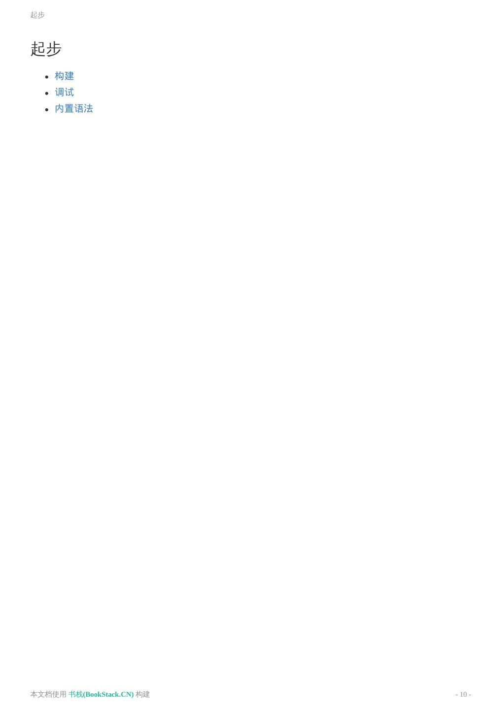 10 .起步 起步 构建 调试 内置语法 本文档使用 书栈(BookStack.CN) 构建 - 10 -