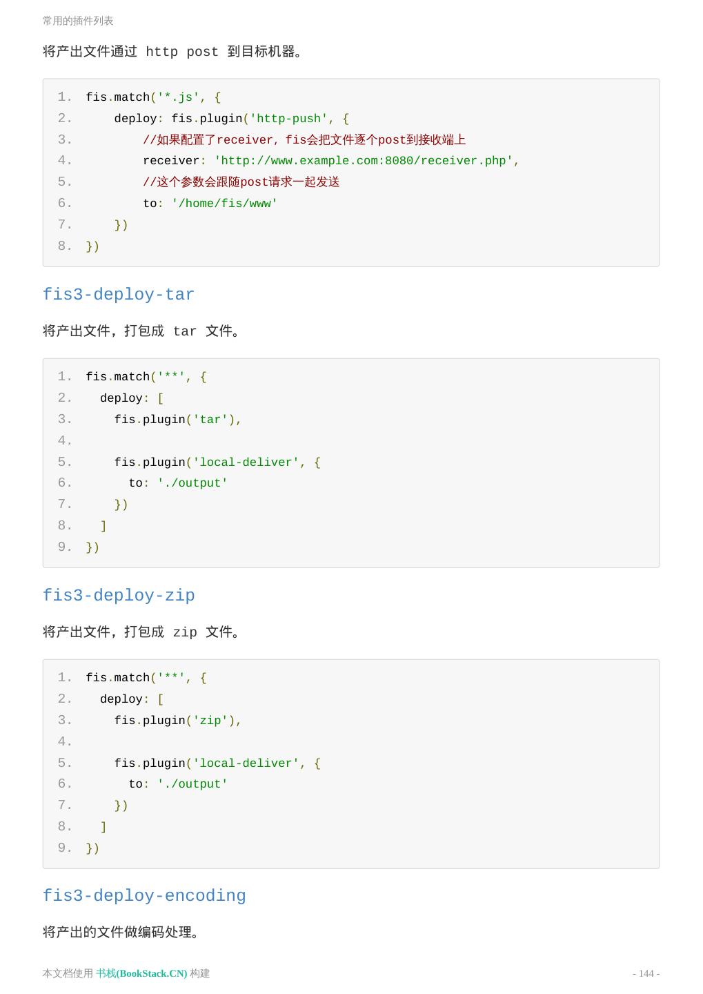 2 . 目 录 致谢 README 介绍 安装 起步 构建 调试 内置语法 内容嵌入 定位资源 声明依赖 请转移到 Release 页面 工作原理 初级使用 中级使用 高级使用 接口文档 命令行 配置 配置接口 配置属性 常用配置 glob 内置插件及配置 自定义插件 从零开始 代码校验 FIS2 到 FIS3 资源合并 mock 假数据模拟 常用的插件列表 fis3 site base-css fis3/lib/fis.js 本文档使用 书栈(BookStack.CN) 构建 - 2 -