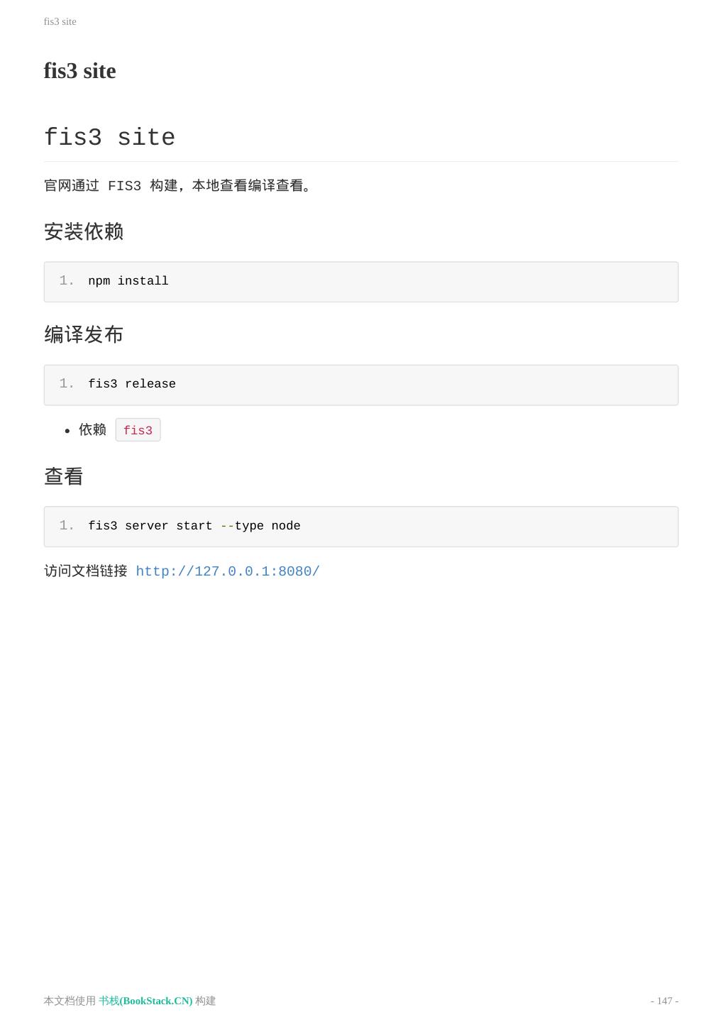 7 .介绍 介绍 FIS3 FIS3 是什么? FIS3 是面向前端的工程构建工具。解决前端工程中性能优化、资源加载(异步、同步、按需、预加 载、依赖管理、合并、内嵌)、模块化开发、自动化工具、开发规范、代码部署等问题。 本文档使用 书栈(BookStack.CN) 构建 - 7 -