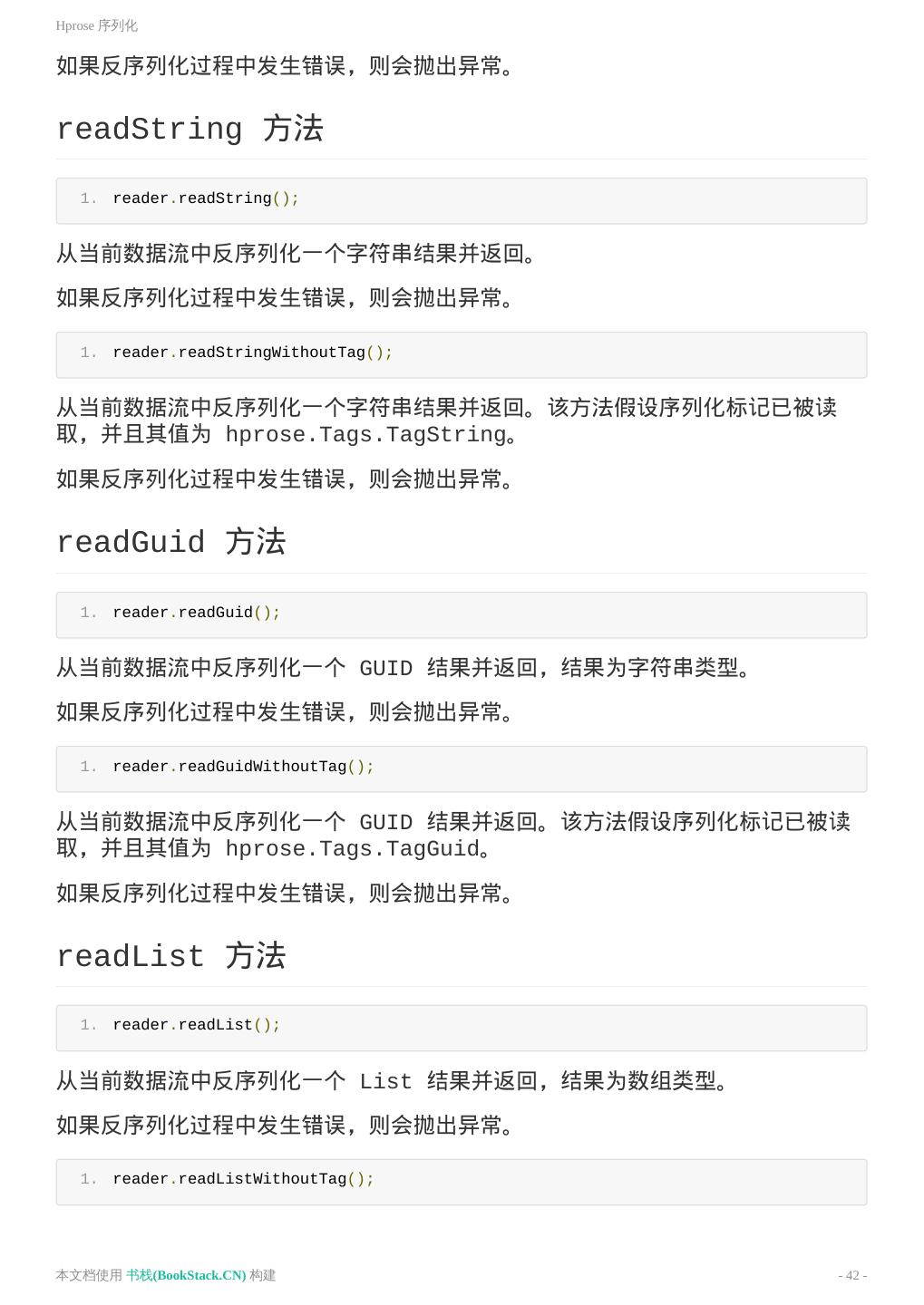 3 .致谢 致谢 当前文档 《Hprose for HTML5 用户手册》 由 进击的皇虫 使用 书栈 (BookStack.CN) 进行构建,生成于 2018-07-09。 书栈(BookStack.CN) 仅提供文档编写、整理、归类等功能,以及对文档内 容的生成和导出工具。 文档内容由网友们编写和整理,书栈(BookStack.CN) 难以确认文档内容知 识点是否错漏。如果您在阅读文档获取知识的时候,发现文档内容有不恰当的地 方,请向我们反馈,让我们共同携手,将知识准确、高效且有效地传递给每一个 人。 同时,如果您在日常工作、生活和学习中遇到有价值有营养的知识文档,欢迎 分享到 书栈(BookStack.CN) ,为知识的传承献上您的一份力量! 如果当前文档生成时间太久,请到 书栈(BookStack.CN) 获取最新的文 档,以跟上知识更新换代的步伐。 文档地址:http://www.bookstack.cn/books/hprose-html5 书栈官网:http://www.bookstack.cn 书栈开源:https://github.com/TruthHun 分享,让知识传承更久远! 感谢知识的创造者,感谢知识的分享者,也感谢 每一位阅读到此处的读者,因为我们都将成为知识的传承者。 本文档使用 书栈(BookStack.CN) 构建 - 3 -