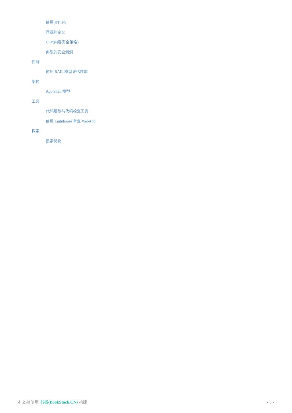 3 . 使用 HTTPS 同源的定义 CSP(内容安全策略) 典型的安全漏洞 性能 使用 RAIL 模型评估性能 架构 App Shell 模型 工具 代码规范与代码检查工具 使用 Lighthouse 审查 WebApp 探索 搜索优化 本文档使用 书栈(BookStack.CN) 构建 - 3 -