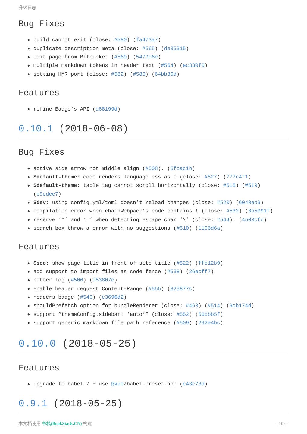 27 .在 Markdown 中 使用 Vue 1. ### Badge <Badge text="beta" type="warn"/> <Badge text="0.10.1+"/> 本文档使用 书栈(BookStack.CN) 构建 - 27 -