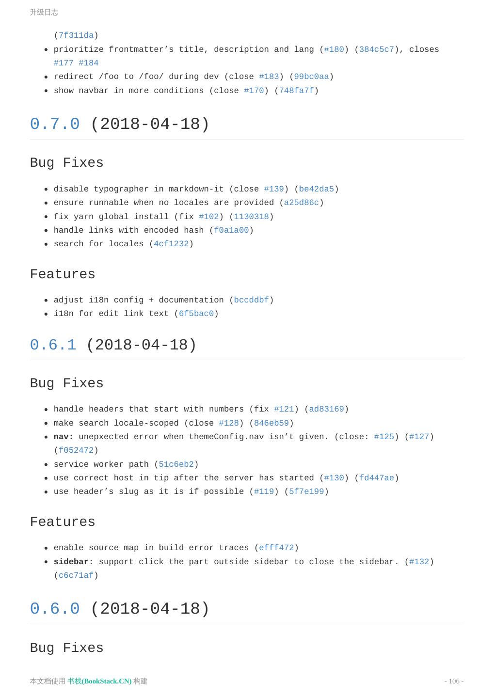 3 .致谢 致谢 当前文档 《VuePress 中文&英文文档》 由 进击的皇虫 使用 书栈(BookStack.CN) 进行构建,生成于 2018-07-15。 书栈(BookStack.CN) 仅提供文档编写、整理、归类等功能,以及对文档内容的生成和导出工具。 文档内容由网友们编写和整理,书栈(BookStack.CN) 难以确认文档内容知识点是否错漏。如果您在阅读文档 获取知识的时候,发现文档内容有不恰当的地方,请向我们反馈,让我们共同携手,将知识准确、高效且有效地传递 给每一个人。 同时,如果您在日常工作、生活和学习中遇到有价值有营养的知识文档,欢迎分享到 书栈(BookStack.CN) , 为知识的传承献上您的一份力量! 如果当前文档生成时间太久,请到 书栈(BookStack.CN) 获取最新的文档,以跟上知识更新换代的步伐。 文档地址:http://www.bookstack.cn/books/VuePress-docs 书栈官网:http://www.bookstack.cn 书栈开源:https://github.com/TruthHun 分享,让知识传承更久远! 感谢知识的创造者,感谢知识的分享者,也感谢每一位阅读到此处的读者,因为我们 都将成为知识的传承者。 本文档使用 书栈(BookStack.CN) 构建 - 3 -