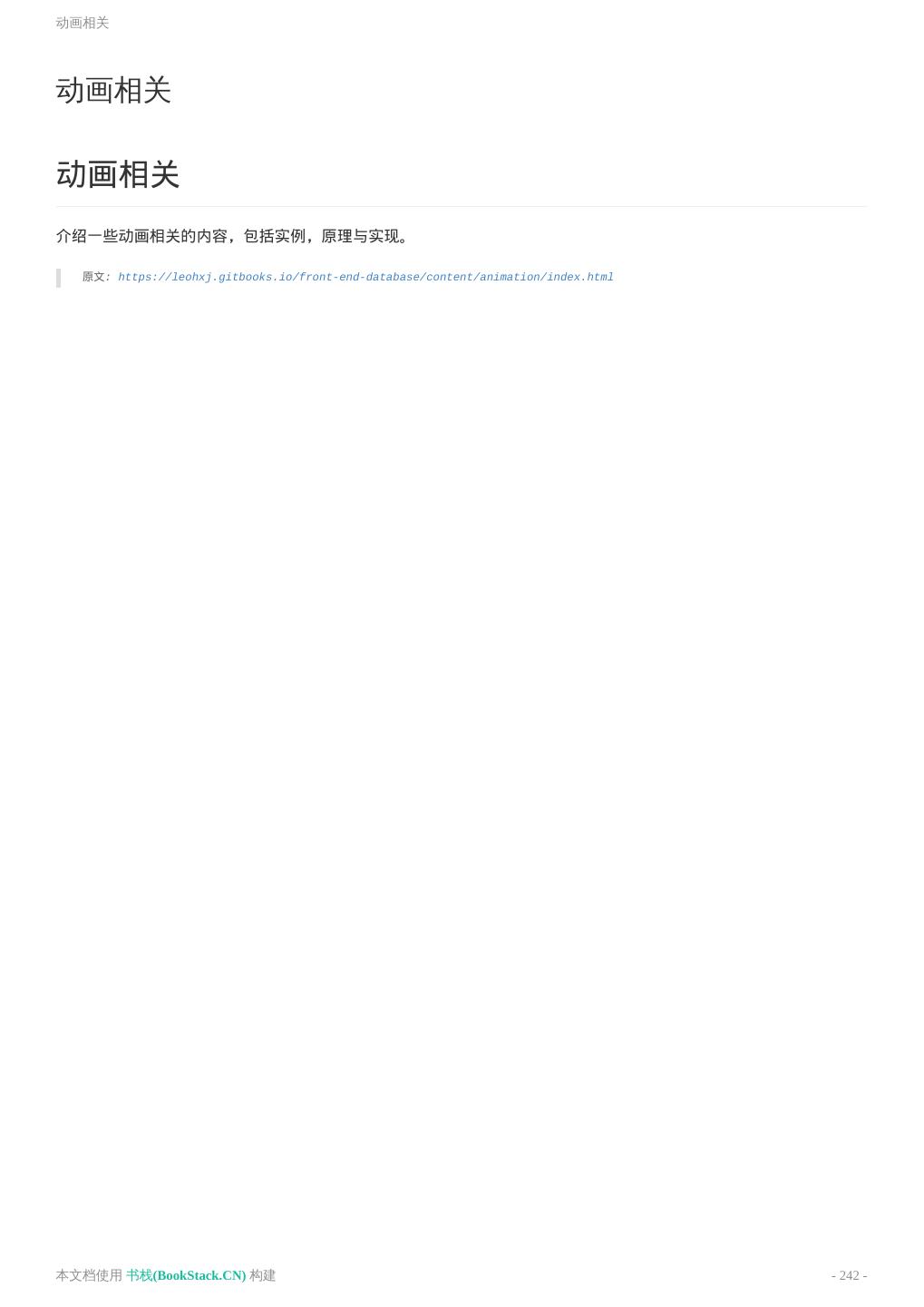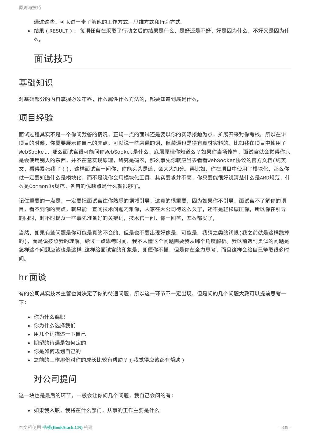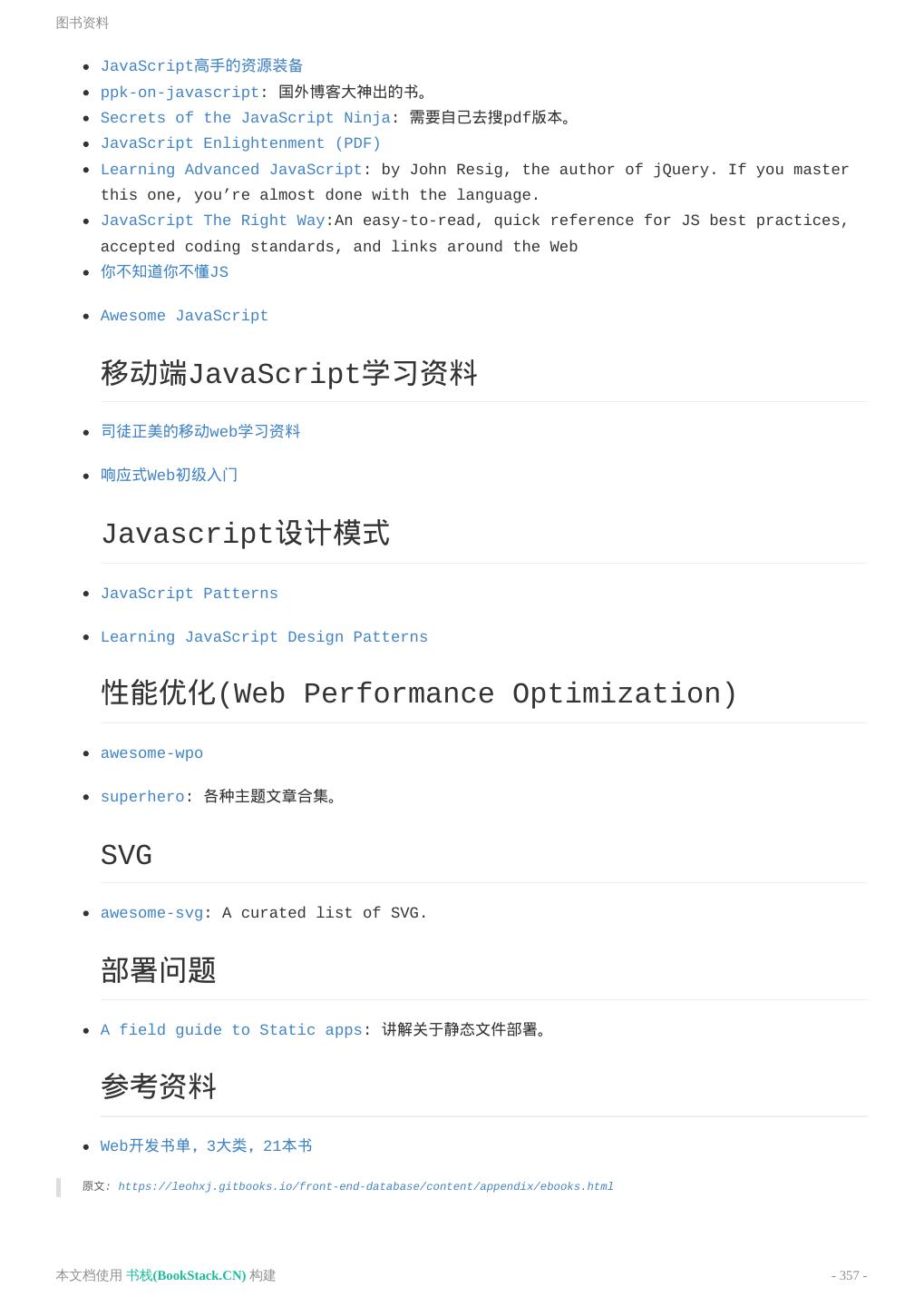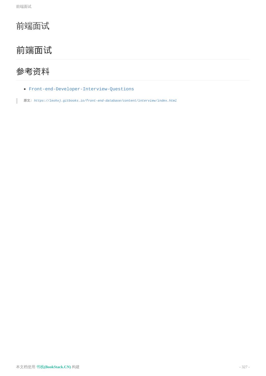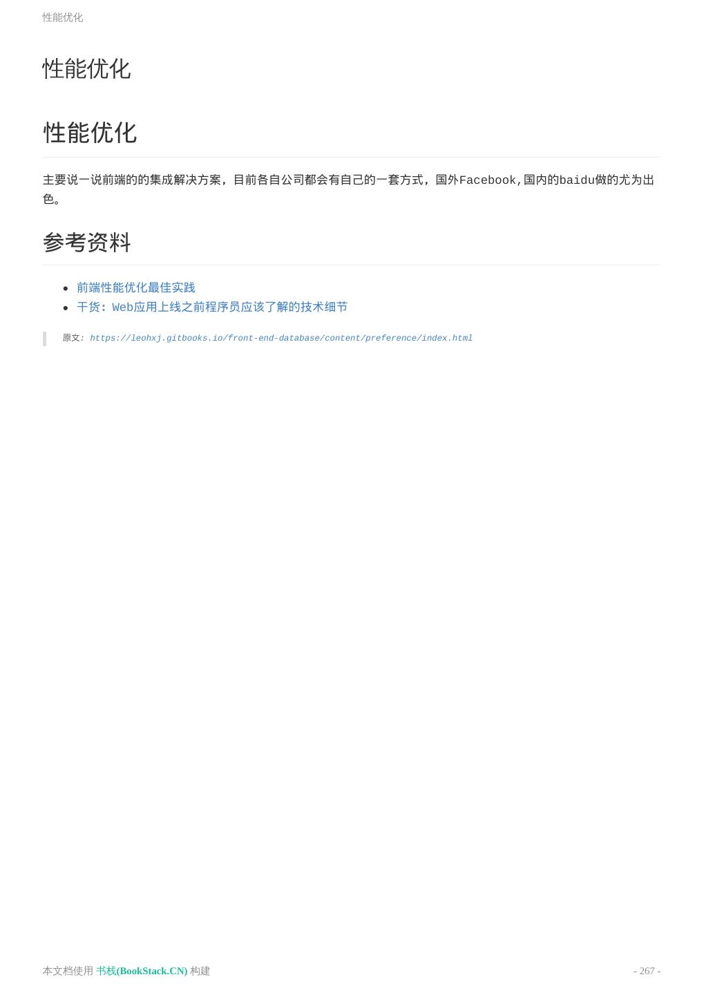 8 .致谢 致谢 当前文档 《前端工程师手册》 由 进击的皇虫 使用 书栈(BookStack.CN) 进行构建,生成于 2018-07- 17。 书栈(BookStack.CN) 仅提供文档编写、整理、归类等功能,以及对文档内容的生成和导出工具。 文档内容由网友们编写和整理,书栈(BookStack.CN) 难以确认文档内容知识点是否错漏。如果您在阅读文档 获取知识的时候,发现文档内容有不恰当的地方,请向我们反馈,让我们共同携手,将知识准确、高效且有效地传递 给每一个人。 同时,如果您在日常工作、生活和学习中遇到有价值有营养的知识文档,欢迎分享到 书栈(BookStack.CN) , 为知识的传承献上您的一份力量! 如果当前文档生成时间太久,请到 书栈(BookStack.CN) 获取最新的文档,以跟上知识更新换代的步伐。 文档地址:http://www.bookstack.cn/books/front-end-database 书栈官网:http://www.bookstack.cn 书栈开源:https://github.com/TruthHun 分享,让知识传承更久远! 感谢知识的创造者,感谢知识的分享者,也感谢每一位阅读到此处的读者,因为我们 都将成为知识的传承者。 本文档使用 书栈(BookStack.CN) 构建 - 8 -