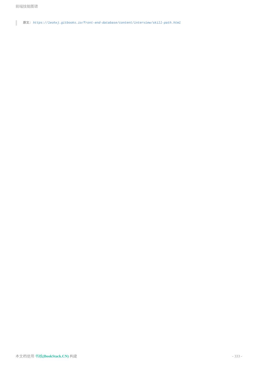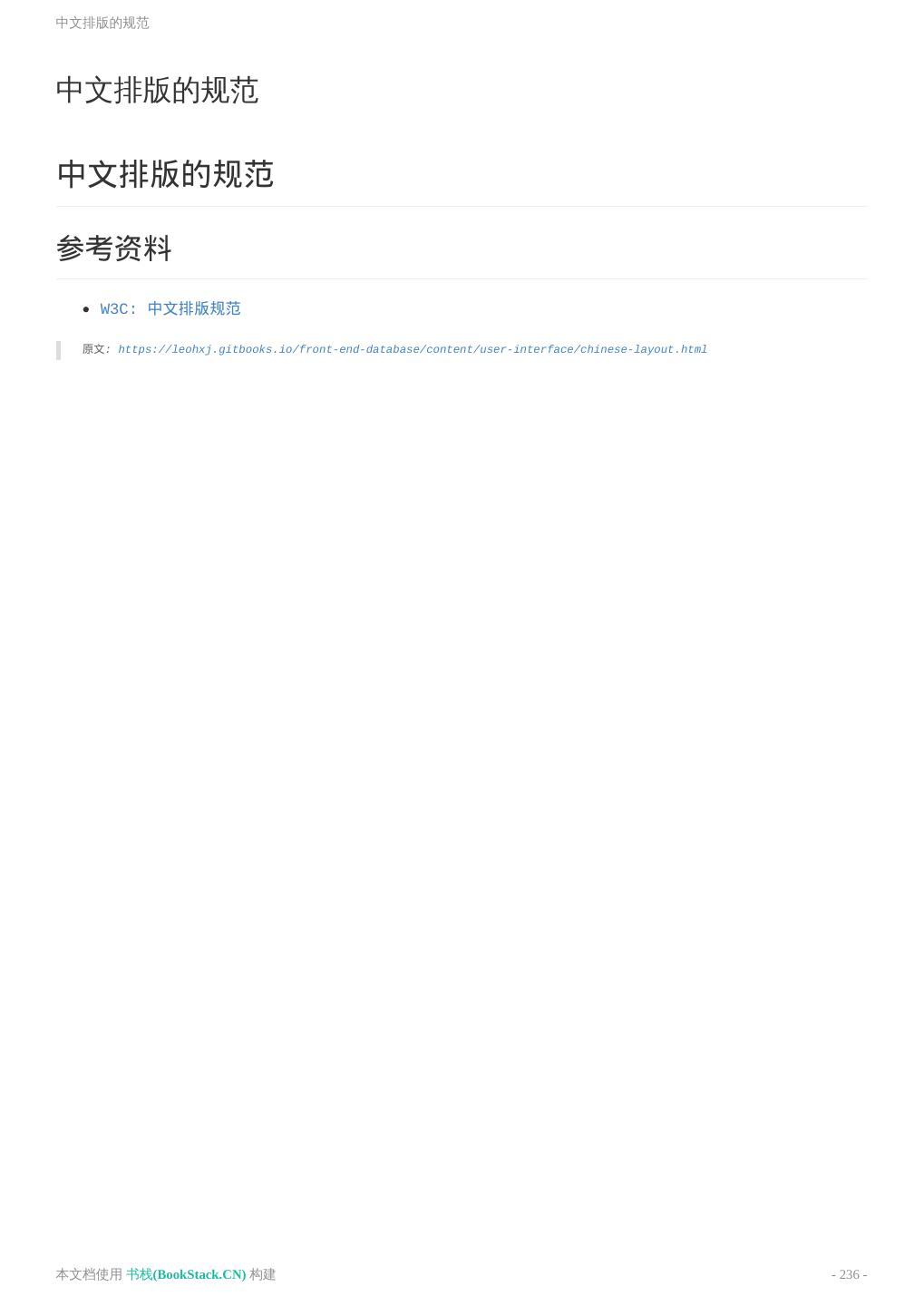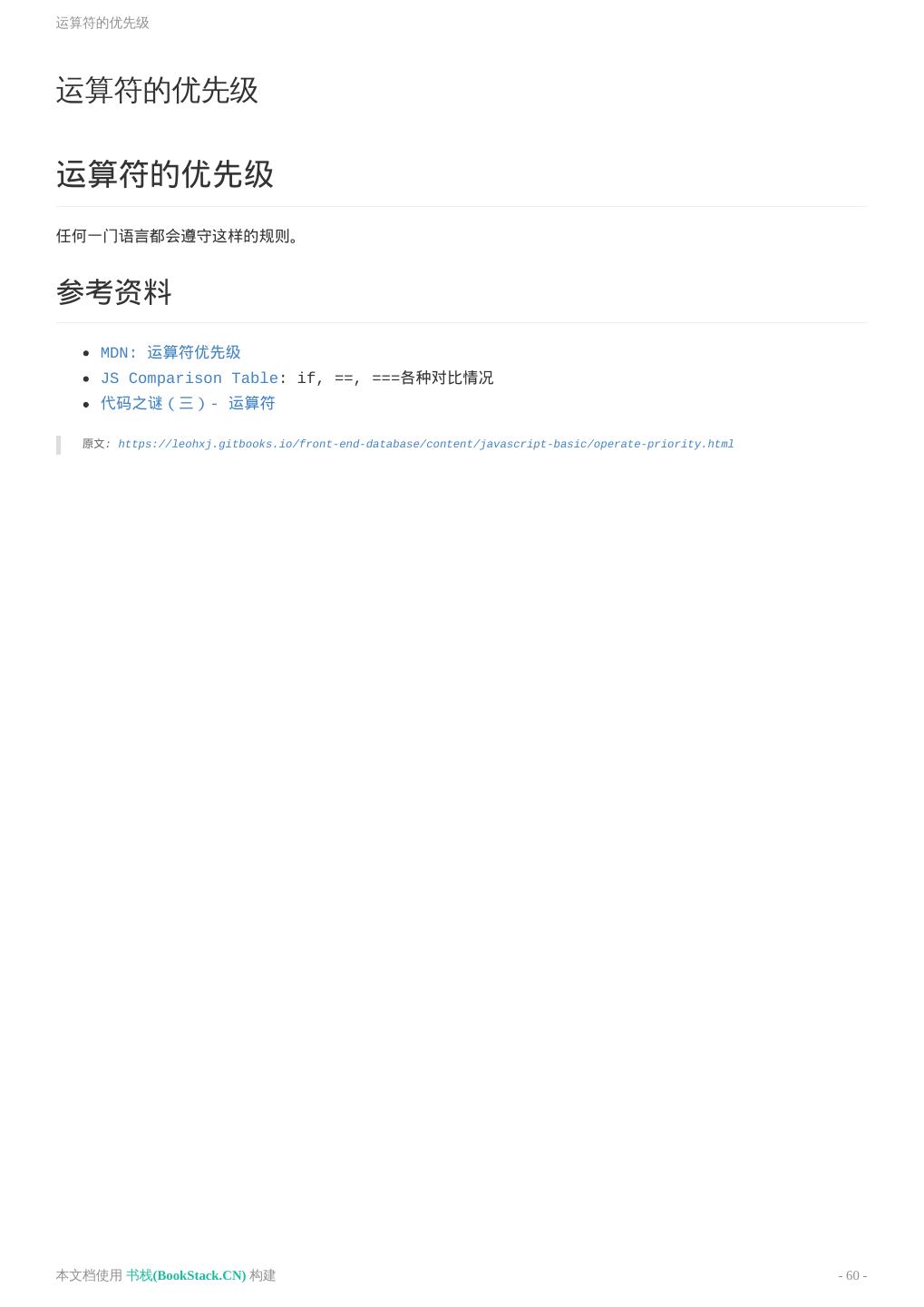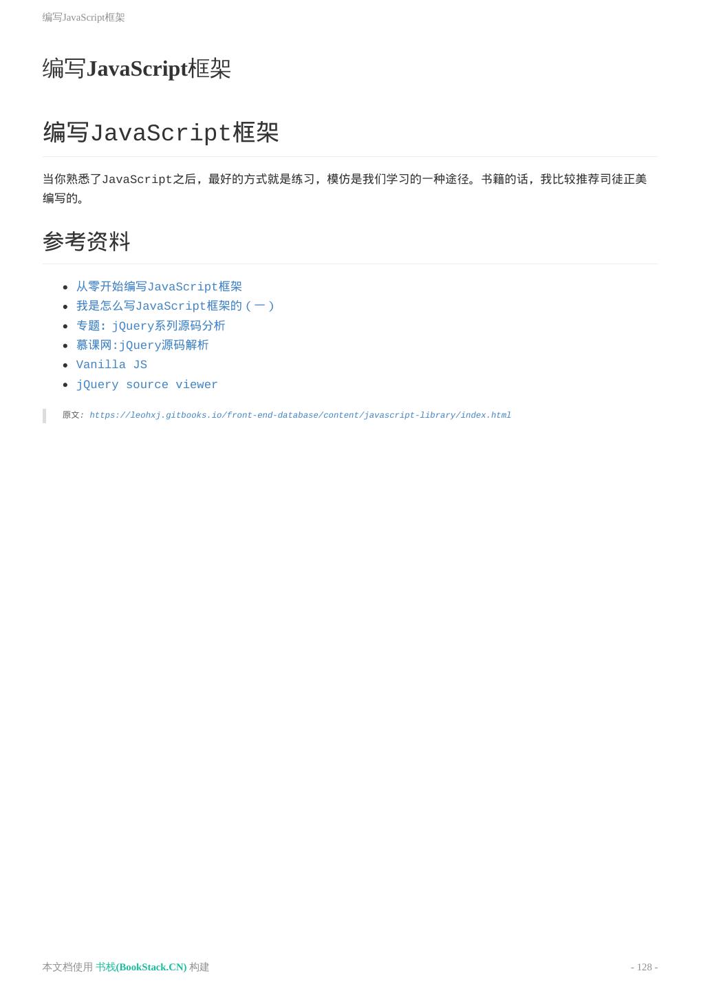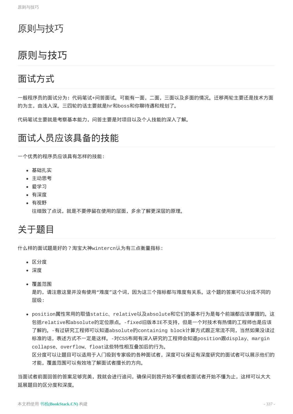8 .致谢 致谢 当前文档 《前端工程师手册》 由 进击的皇虫 使用 书栈(BookStack.CN) 进行构建,生成于 2018-07- 17。 书栈(BookStack.CN) 仅提供文档编写、整理、归类等功能,以及对文档内容的生成和导出工具。 文档内容由网友们编写和整理,书栈(BookStack.CN) 难以确认文档内容知识点是否错漏。如果您在阅读文档 获取知识的时候,发现文档内容有不恰当的地方,请向我们反馈,让我们共同携手,将知识准确、高效且有效地传递 给每一个人。 同时,如果您在日常工作、生活和学习中遇到有价值有营养的知识文档,欢迎分享到 书栈(BookStack.CN) , 为知识的传承献上您的一份力量! 如果当前文档生成时间太久,请到 书栈(BookStack.CN) 获取最新的文档,以跟上知识更新换代的步伐。 文档地址:http://www.bookstack.cn/books/front-end-database 书栈官网:http://www.bookstack.cn 书栈开源:https://github.com/TruthHun 分享,让知识传承更久远! 感谢知识的创造者,感谢知识的分享者,也感谢每一位阅读到此处的读者,因为我们 都将成为知识的传承者。 本文档使用 书栈(BookStack.CN) 构建 - 8 -