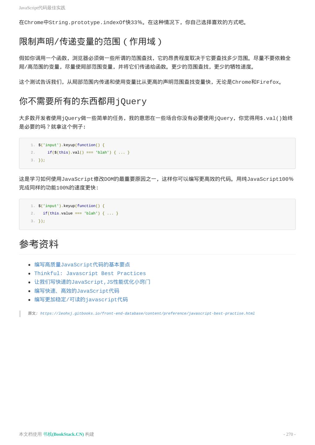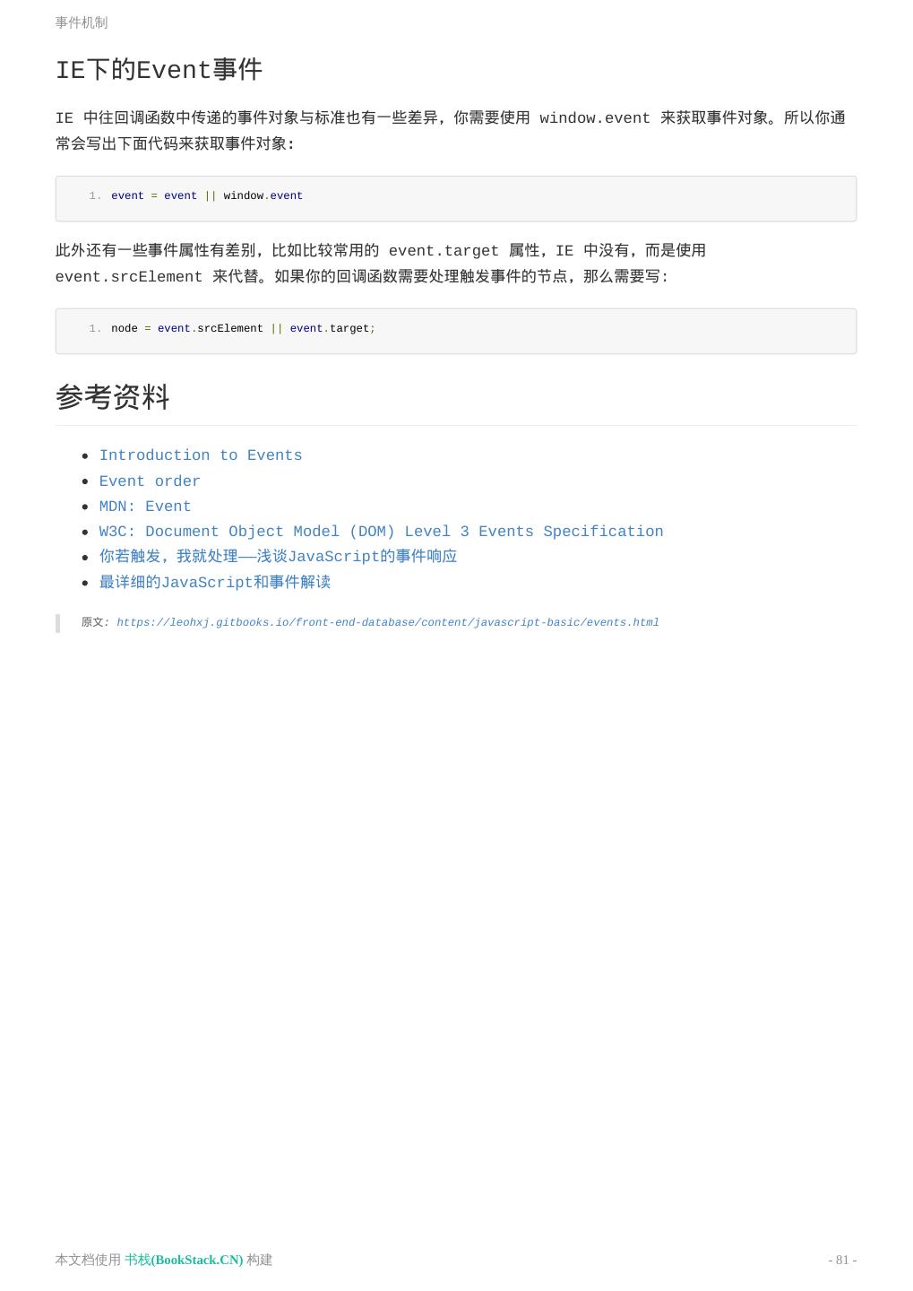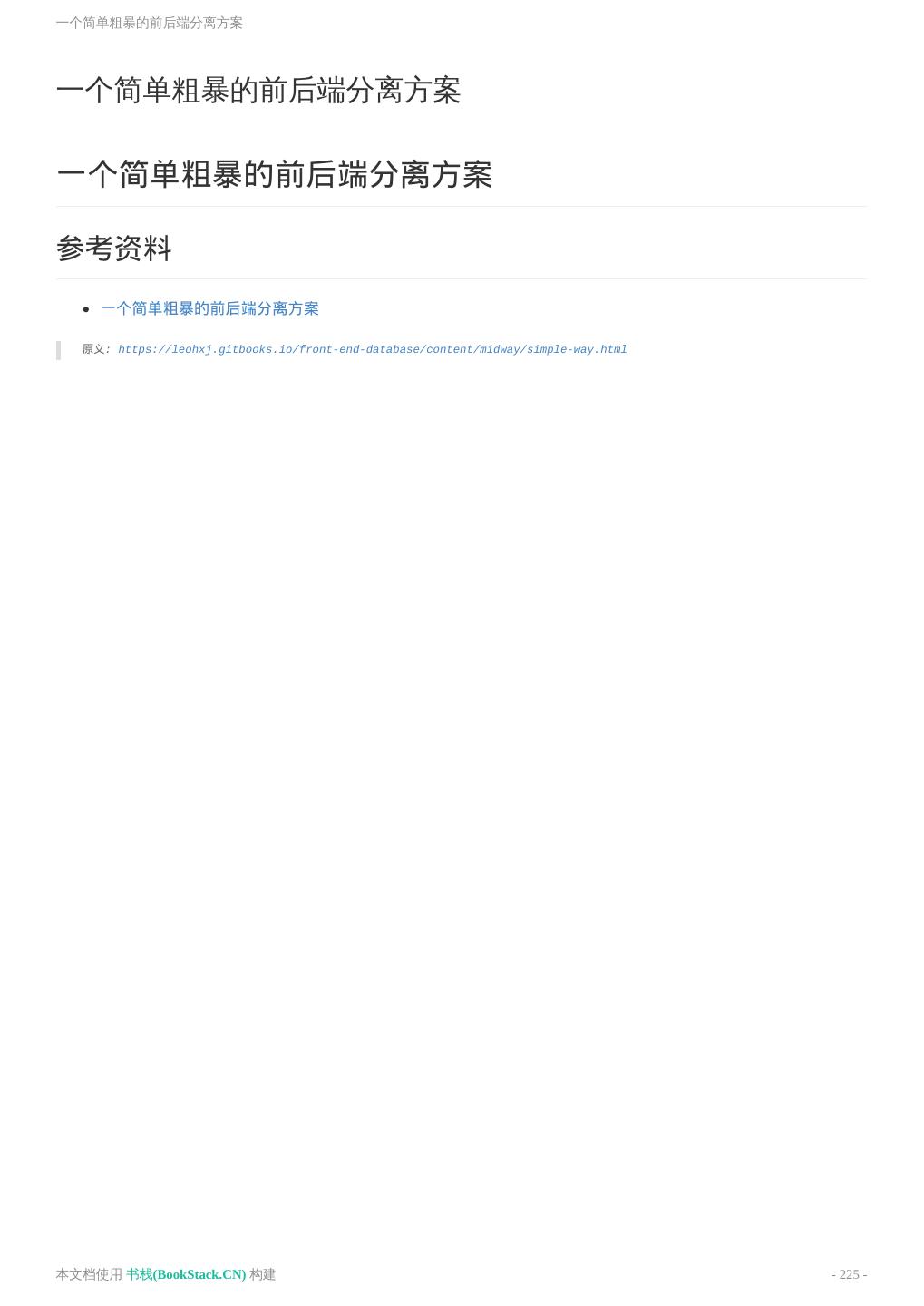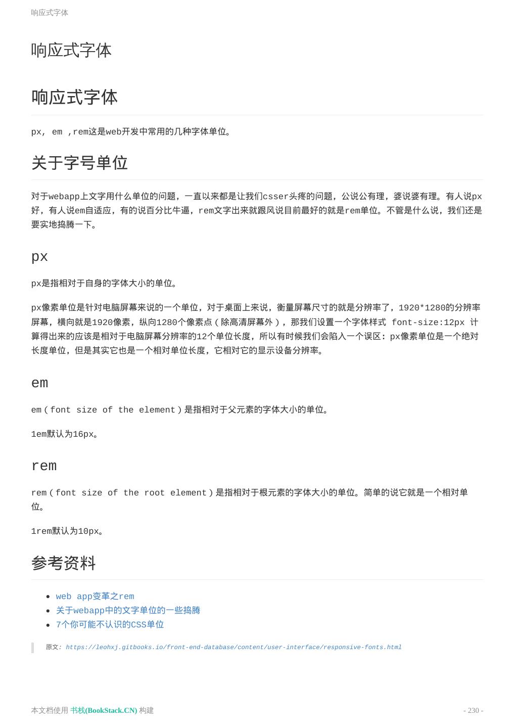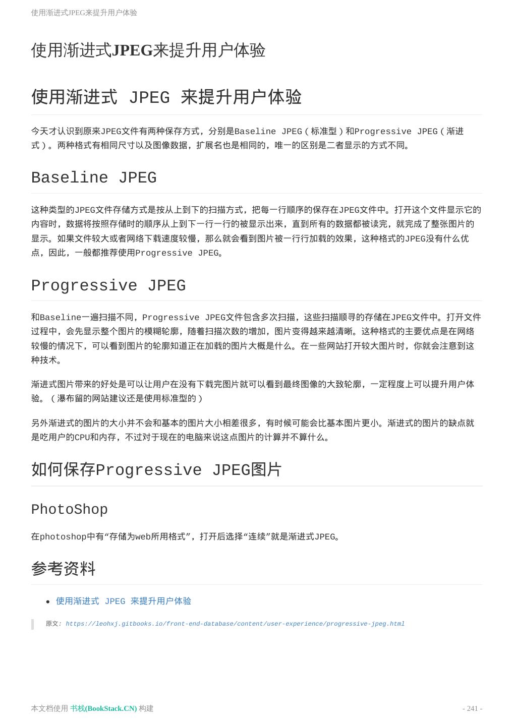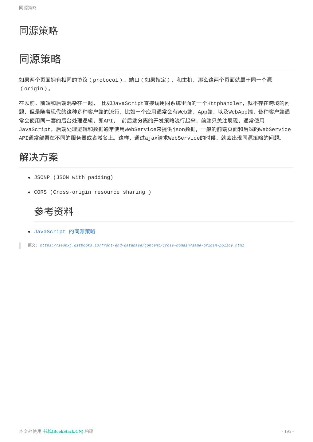8 .致谢 致谢 当前文档 《前端工程师手册》 由 进击的皇虫 使用 书栈(BookStack.CN) 进行构建,生成于 2018-07- 17。 书栈(BookStack.CN) 仅提供文档编写、整理、归类等功能,以及对文档内容的生成和导出工具。 文档内容由网友们编写和整理,书栈(BookStack.CN) 难以确认文档内容知识点是否错漏。如果您在阅读文档 获取知识的时候,发现文档内容有不恰当的地方,请向我们反馈,让我们共同携手,将知识准确、高效且有效地传递 给每一个人。 同时,如果您在日常工作、生活和学习中遇到有价值有营养的知识文档,欢迎分享到 书栈(BookStack.CN) , 为知识的传承献上您的一份力量! 如果当前文档生成时间太久,请到 书栈(BookStack.CN) 获取最新的文档,以跟上知识更新换代的步伐。 文档地址:http://www.bookstack.cn/books/front-end-database 书栈官网:http://www.bookstack.cn 书栈开源:https://github.com/TruthHun 分享,让知识传承更久远! 感谢知识的创造者,感谢知识的分享者,也感谢每一位阅读到此处的读者,因为我们 都将成为知识的传承者。 本文档使用 书栈(BookStack.CN) 构建 - 8 -
