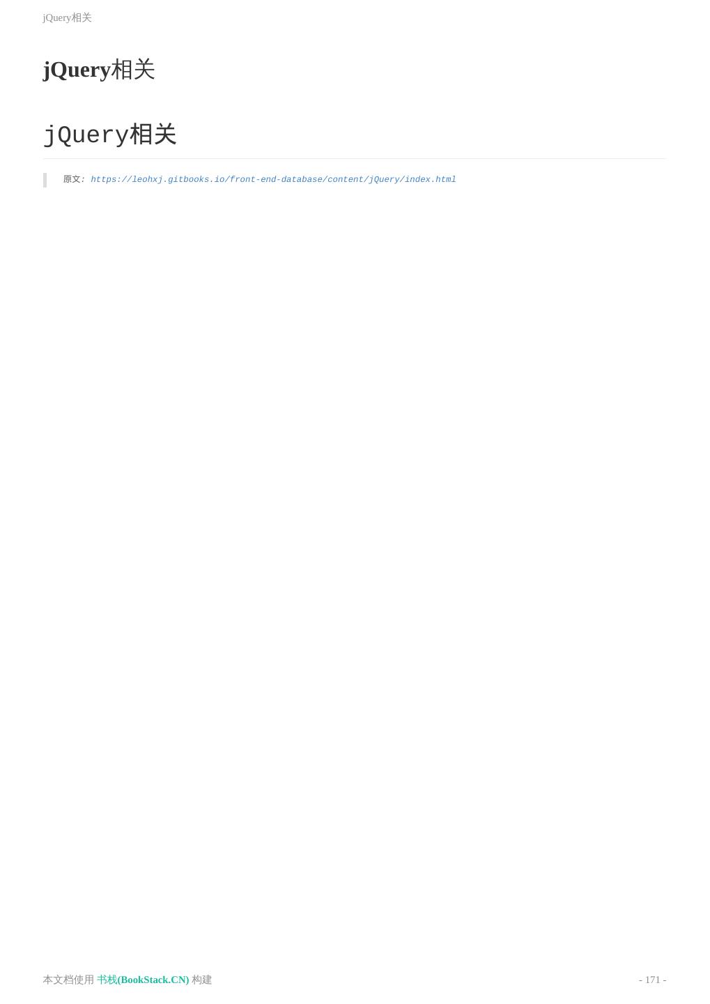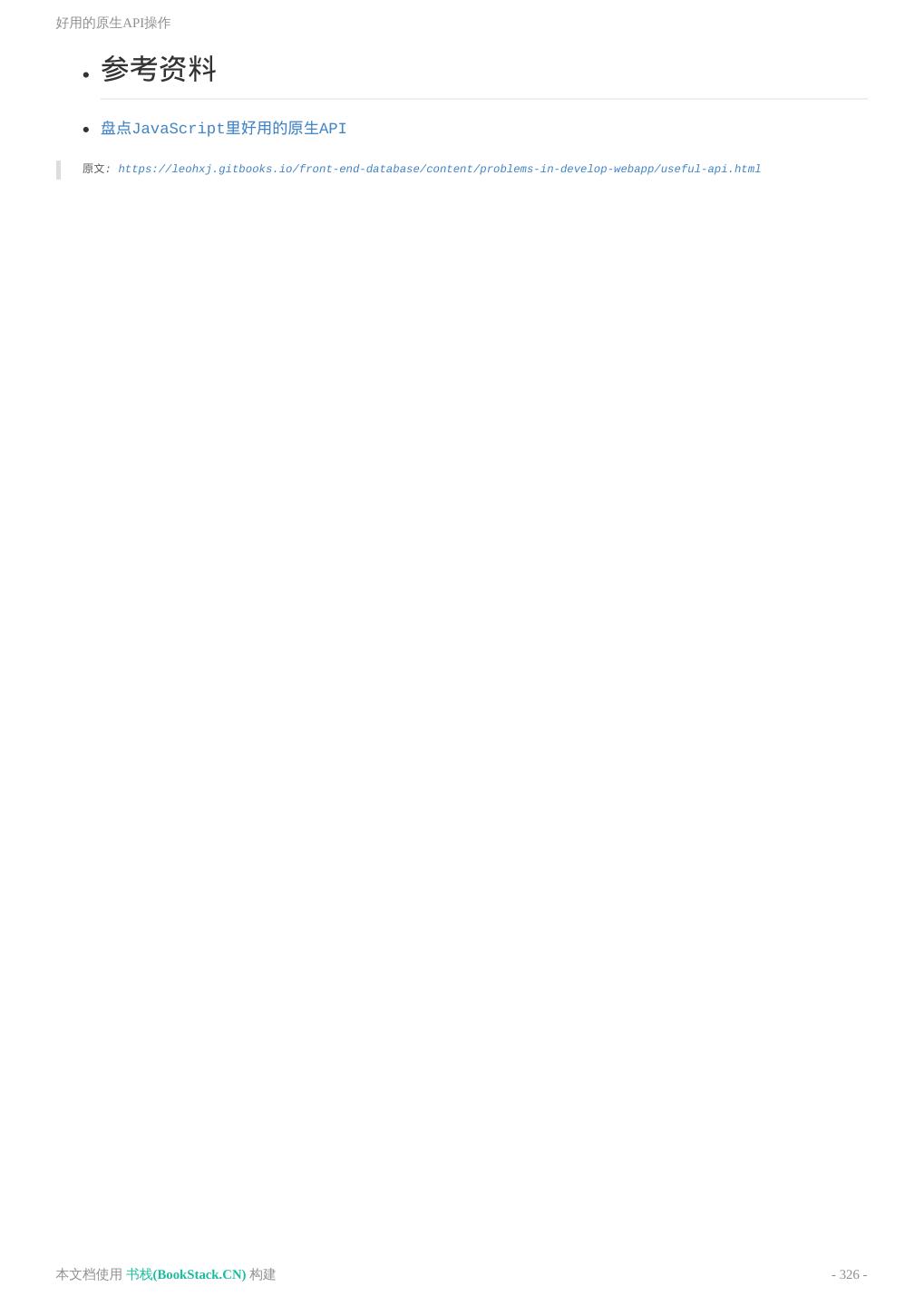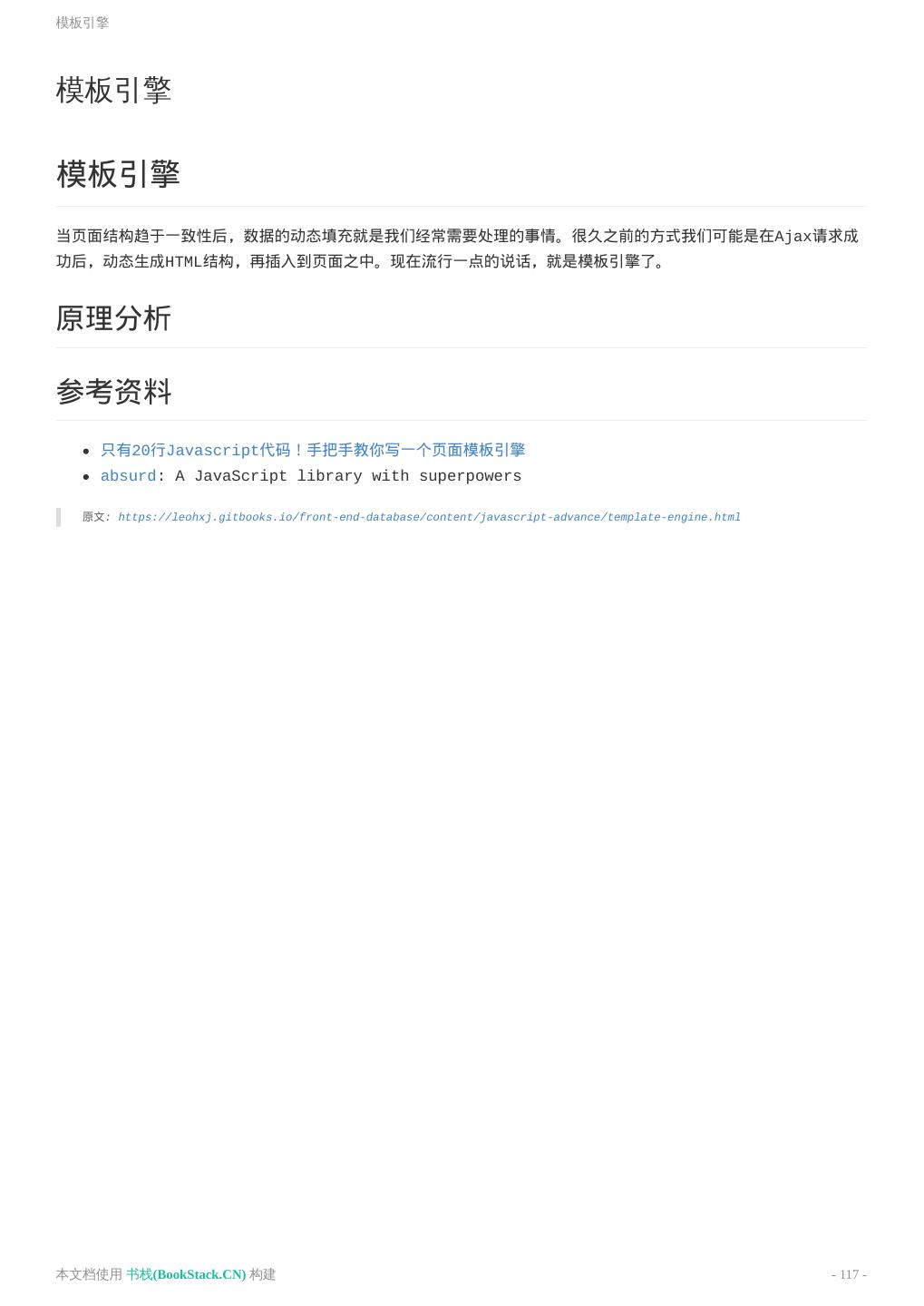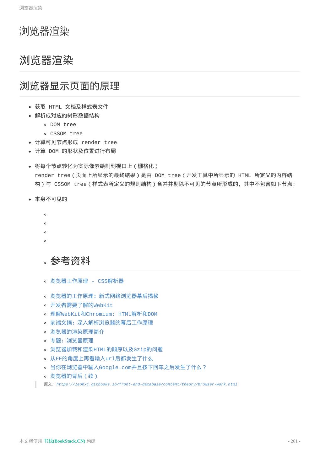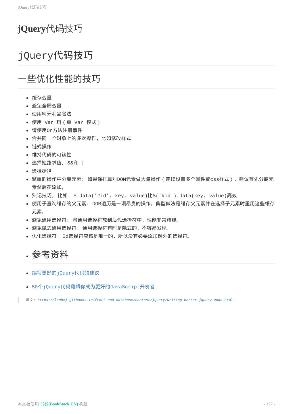 8 .致谢 致谢 当前文档 《前端工程师手册》 由 进击的皇虫 使用 书栈(BookStack.CN) 进行构建,生成于 2018-07- 17。 书栈(BookStack.CN) 仅提供文档编写、整理、归类等功能,以及对文档内容的生成和导出工具。 文档内容由网友们编写和整理,书栈(BookStack.CN) 难以确认文档内容知识点是否错漏。如果您在阅读文档 获取知识的时候,发现文档内容有不恰当的地方,请向我们反馈,让我们共同携手,将知识准确、高效且有效地传递 给每一个人。 同时,如果您在日常工作、生活和学习中遇到有价值有营养的知识文档,欢迎分享到 书栈(BookStack.CN) , 为知识的传承献上您的一份力量! 如果当前文档生成时间太久,请到 书栈(BookStack.CN) 获取最新的文档,以跟上知识更新换代的步伐。 文档地址:http://www.bookstack.cn/books/front-end-database 书栈官网:http://www.bookstack.cn 书栈开源:https://github.com/TruthHun 分享,让知识传承更久远! 感谢知识的创造者,感谢知识的分享者,也感谢每一位阅读到此处的读者,因为我们 都将成为知识的传承者。 本文档使用 书栈(BookStack.CN) 构建 - 8 -