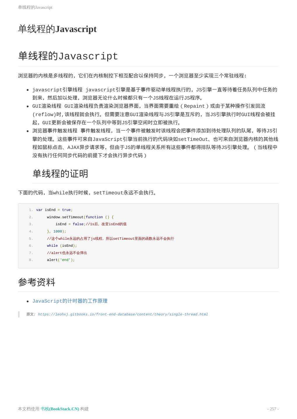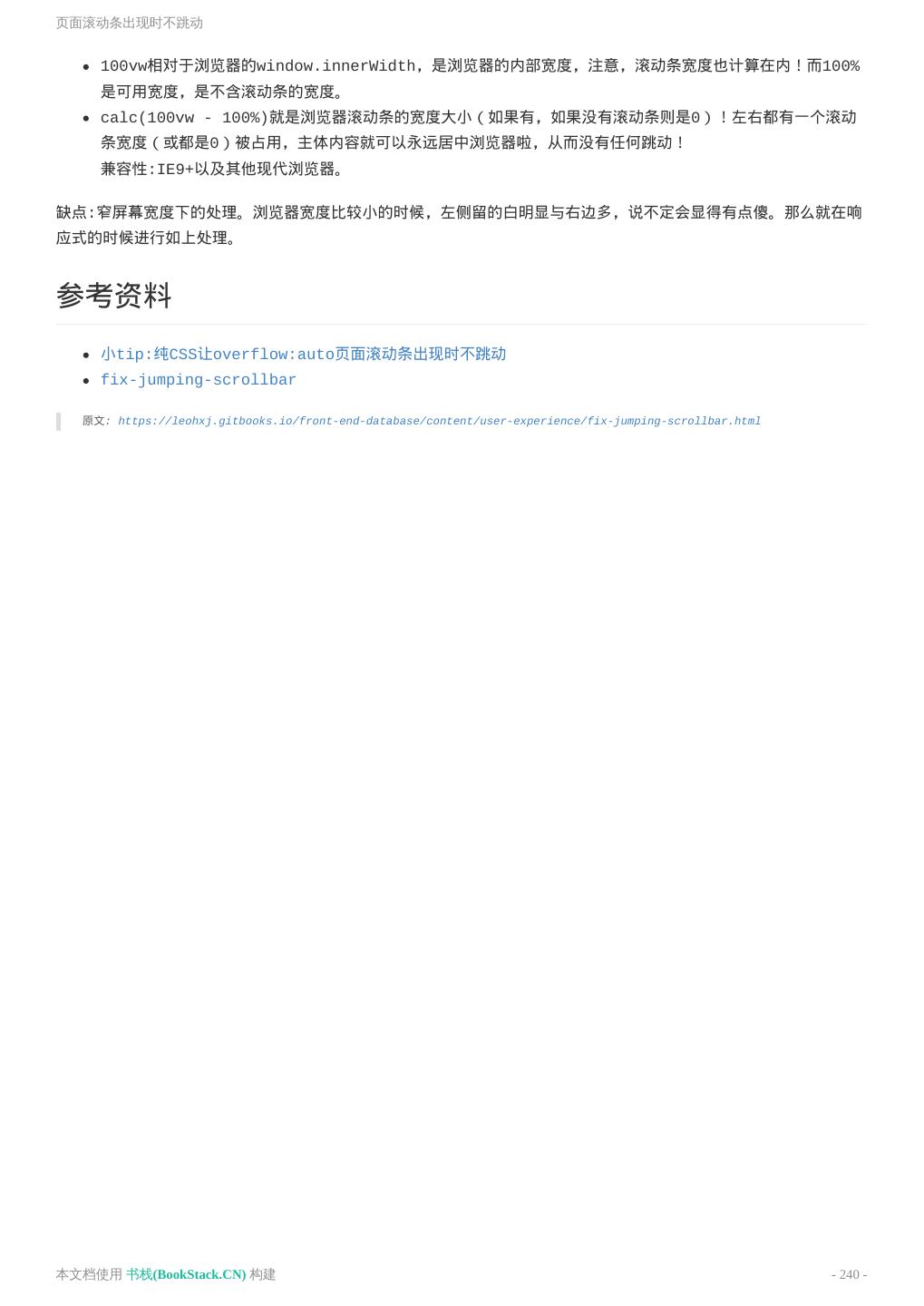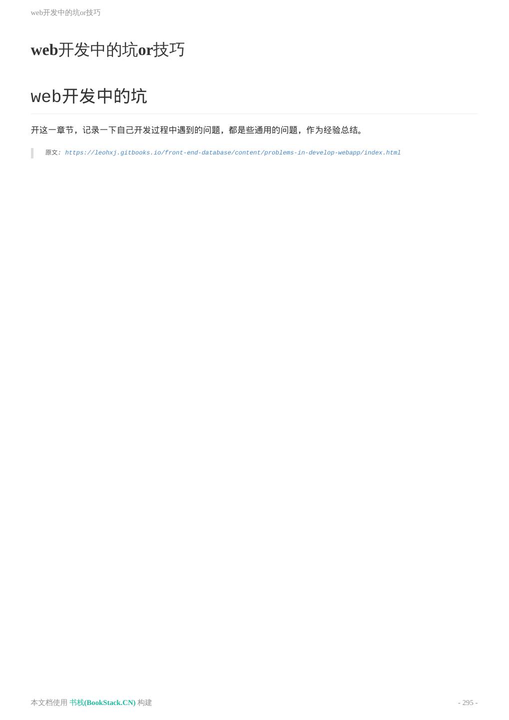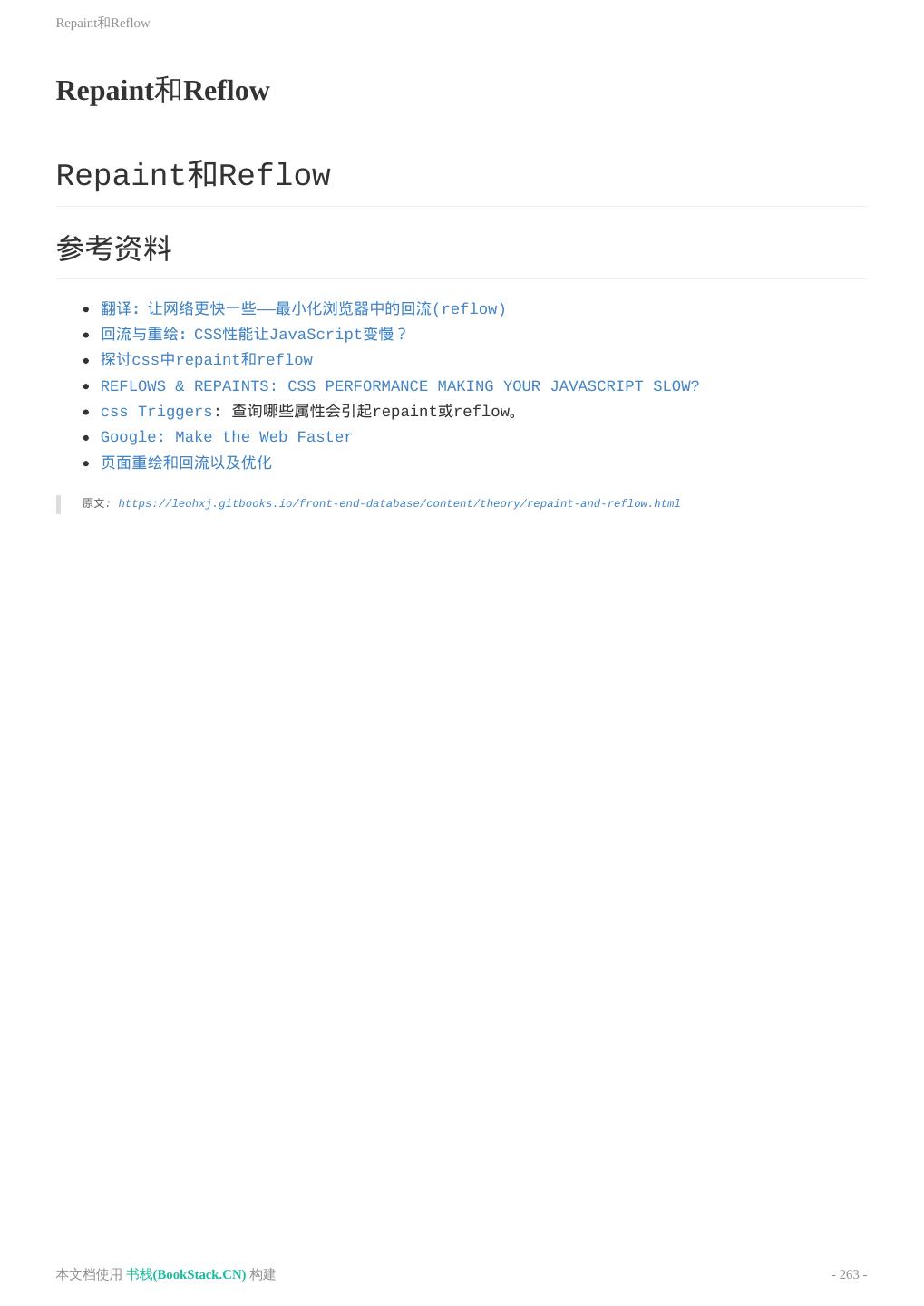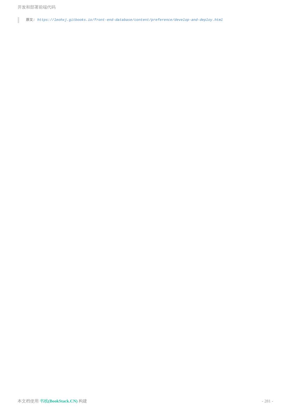 8 .致谢 致谢 当前文档 《前端工程师手册》 由 进击的皇虫 使用 书栈(BookStack.CN) 进行构建,生成于 2018-07- 17。 书栈(BookStack.CN) 仅提供文档编写、整理、归类等功能,以及对文档内容的生成和导出工具。 文档内容由网友们编写和整理,书栈(BookStack.CN) 难以确认文档内容知识点是否错漏。如果您在阅读文档 获取知识的时候,发现文档内容有不恰当的地方,请向我们反馈,让我们共同携手,将知识准确、高效且有效地传递 给每一个人。 同时,如果您在日常工作、生活和学习中遇到有价值有营养的知识文档,欢迎分享到 书栈(BookStack.CN) , 为知识的传承献上您的一份力量! 如果当前文档生成时间太久,请到 书栈(BookStack.CN) 获取最新的文档,以跟上知识更新换代的步伐。 文档地址:http://www.bookstack.cn/books/front-end-database 书栈官网:http://www.bookstack.cn 书栈开源:https://github.com/TruthHun 分享,让知识传承更久远! 感谢知识的创造者,感谢知识的分享者,也感谢每一位阅读到此处的读者,因为我们 都将成为知识的传承者。 本文档使用 书栈(BookStack.CN) 构建 - 8 -
