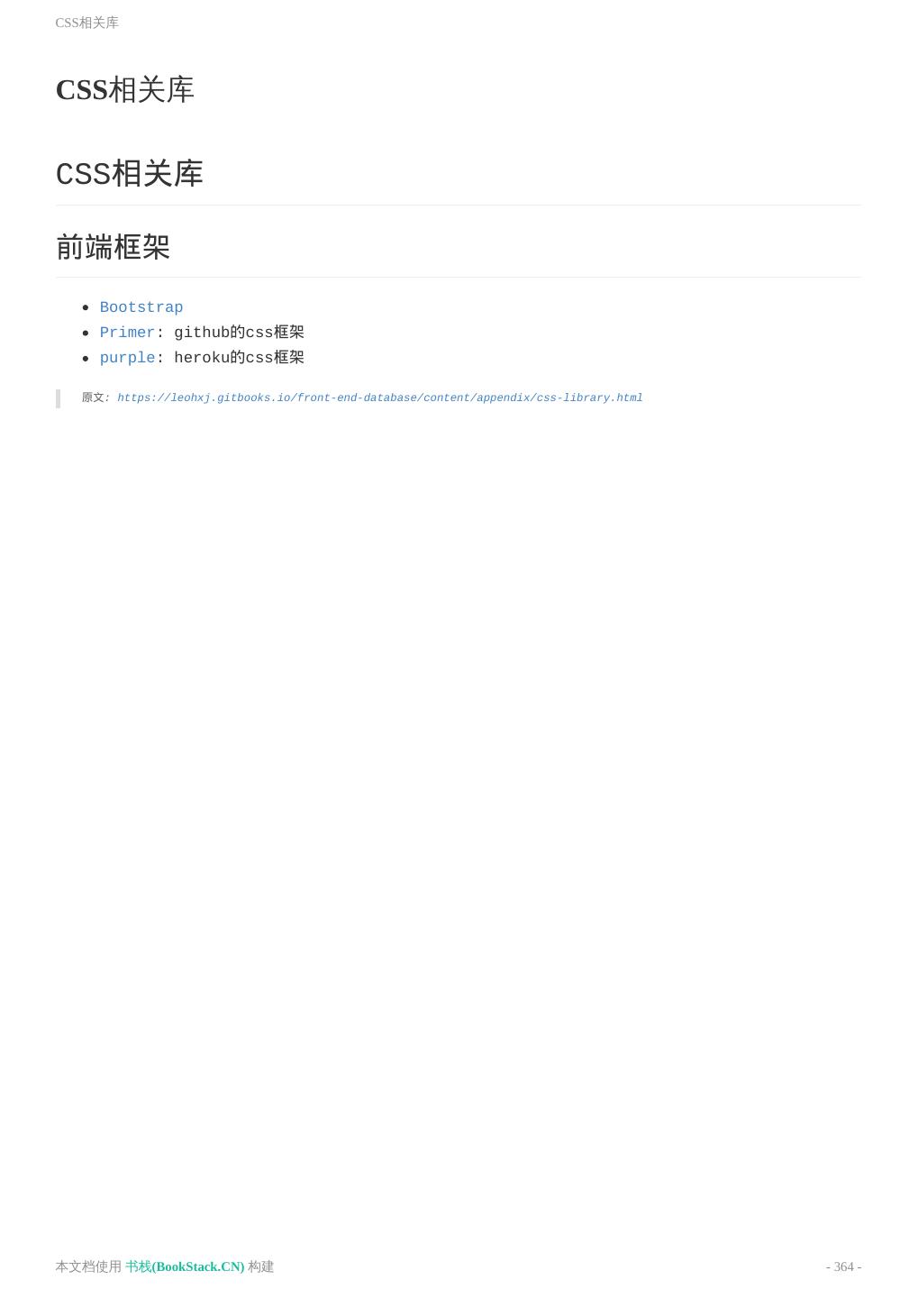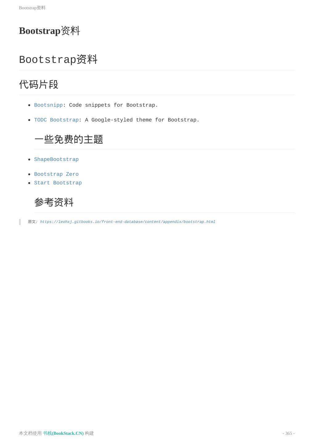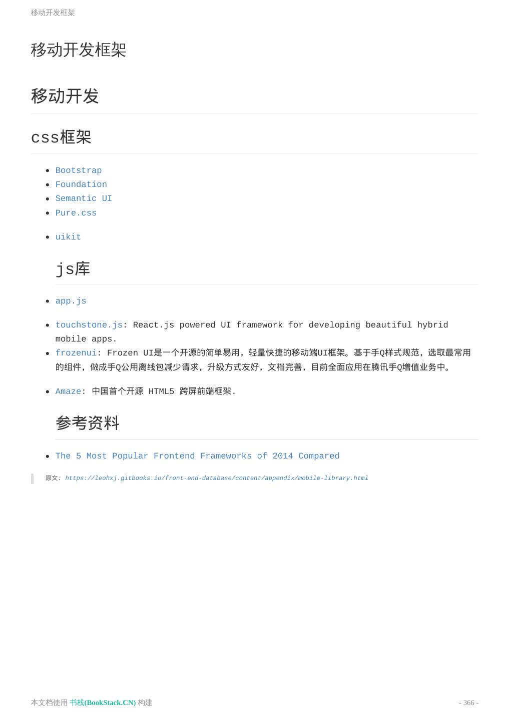 7 . 2S库 CSS相关库 Bootstrap资料 移动开发框架 Loading动画 辅助工具 本文档使用 书栈(BookStack.CN) 构建 - 7 -