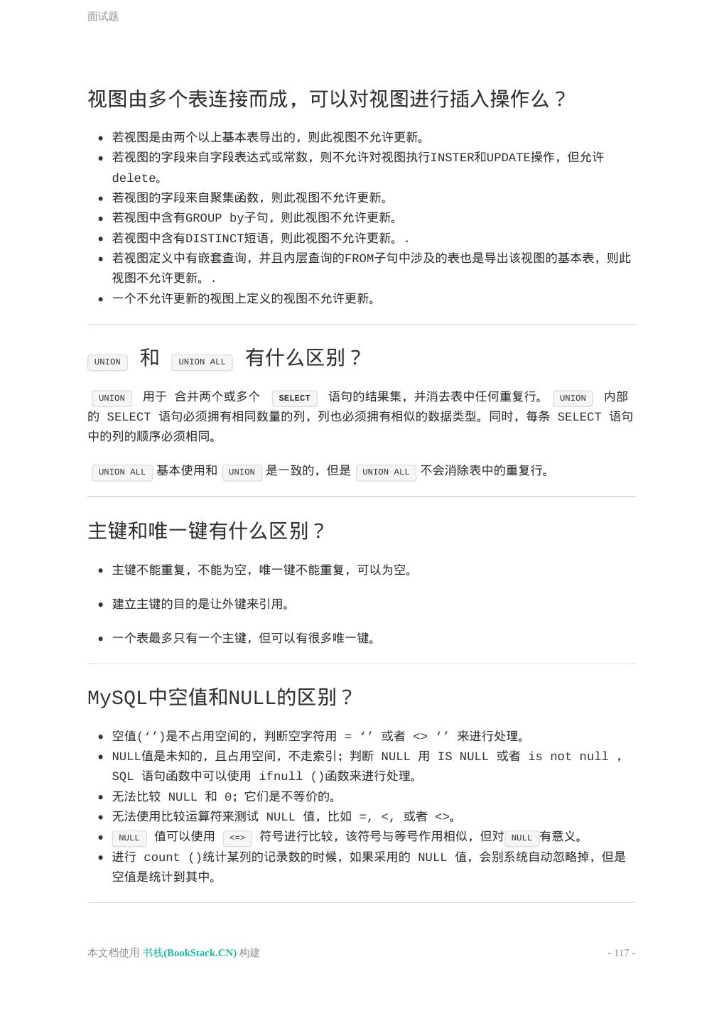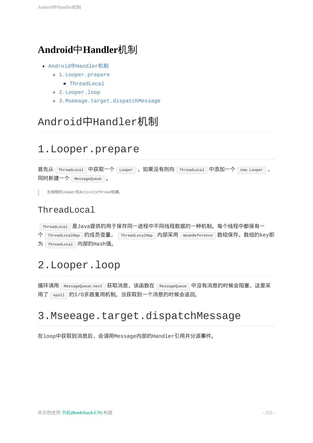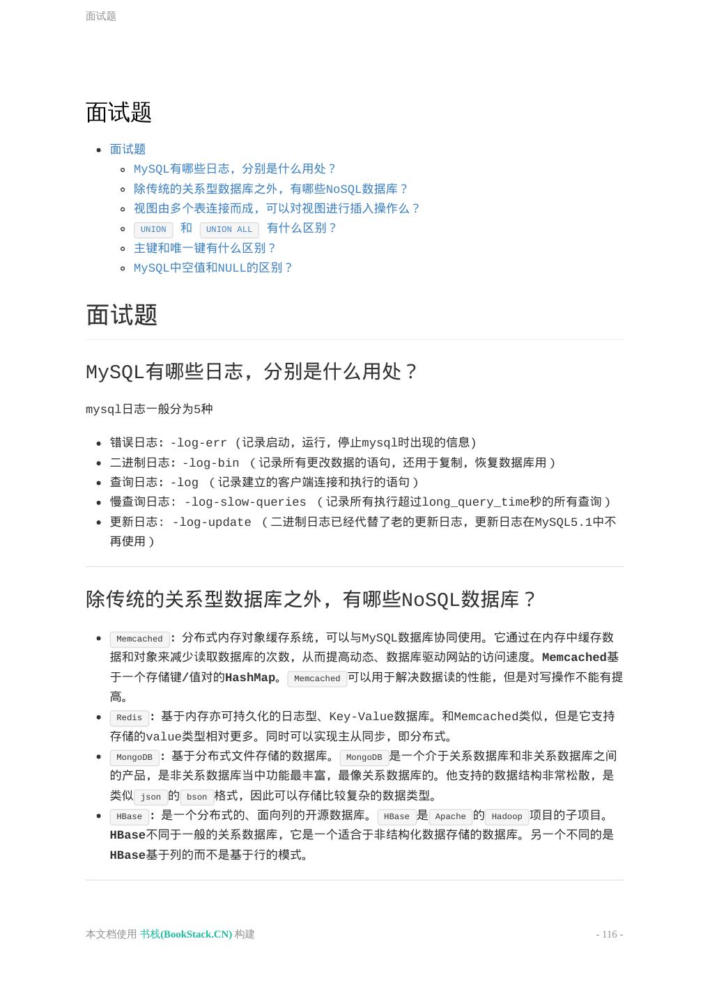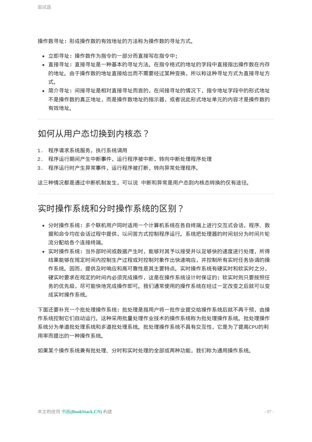 4 .致谢 致谢 当前文档 《Java / Android 笔试、面试 知识整理》 由 进击的皇虫 使用 书栈 (BookStack.CN) 进行构建,生成于 2018-03-11。 书栈(BookStack.CN) 仅提供文档编写、整理、归类等功能,以及对文档内容的生成和导出工 具。 文档内容由网友们编写和整理,书栈(BookStack.CN) 难以确认文档内容知识点是否错漏。如 果您在阅读文档获取知识的时候,发现文档内容有不恰当的地方,请向我们反馈,让我们共同携手, 将知识准确、高效且有效地传递给每一个人。 同时,如果您在日常生活、工作和学习中遇到有价值有营养的知识文档,欢迎分享到 书栈 (BookStack.CN) ,为知识的传承献上您的一份力量! 如果当前文档生成时间太久,请到 书栈(BookStack.CN) 获取最新的文档,以跟上知识更新换 代的步伐。 文档地址:http://www.bookstack.cn/books/interview 书栈官网:http://www.bookstack.cn 书栈开源:https://github.com/TruthHun 分享,让知识传承更久远! 感谢知识的创造者,感谢知识的分享者,也感谢每一位阅读到此处的 读者,因为我们都将成为知识的传承者。 本文档使用 书栈(BookStack.CN) 构建 - 4 -