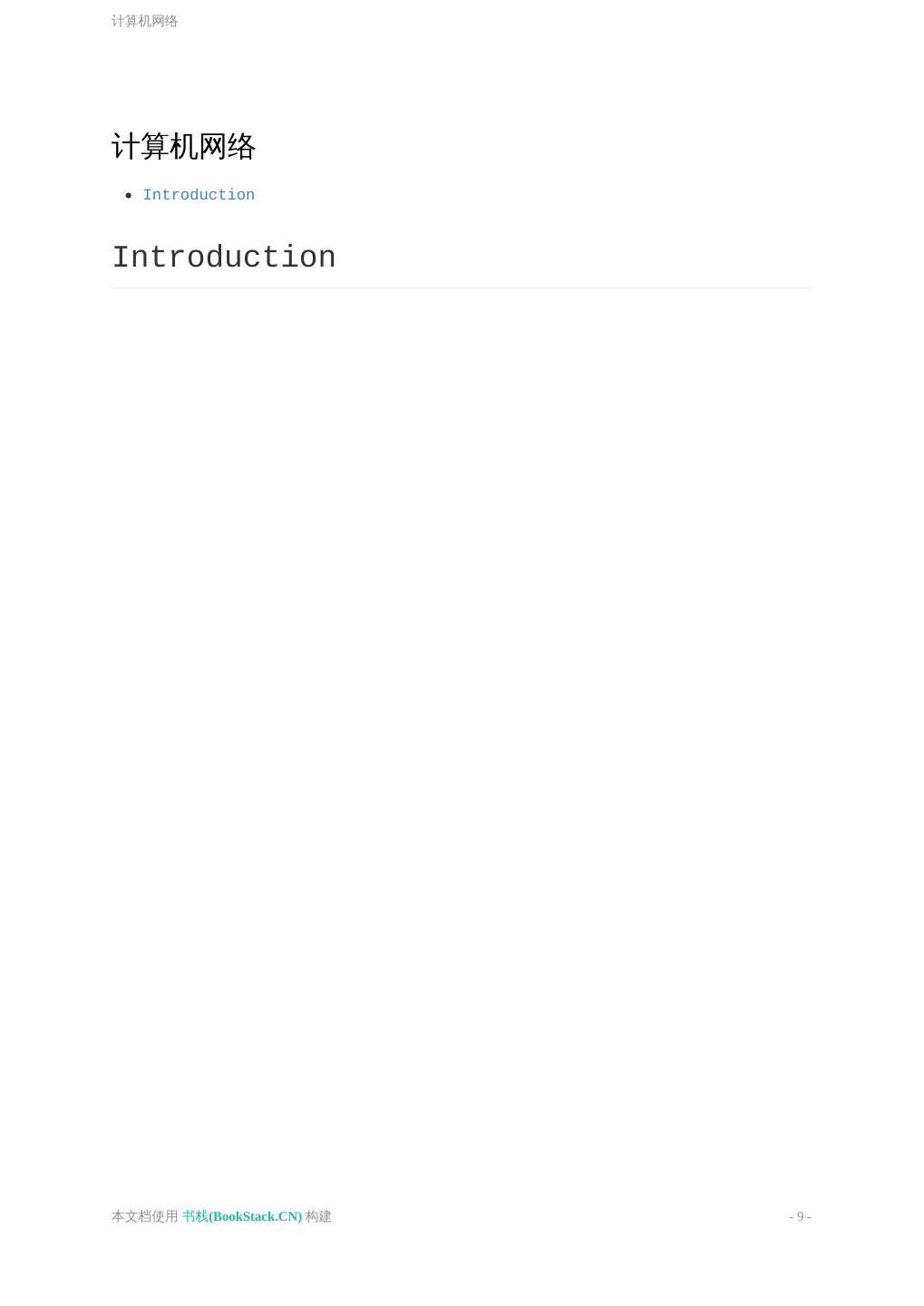 9 .计算机网络 计算机网络 Introduction Introduction 本文档使用 书栈(BookStack.CN) 构建 - 9 -