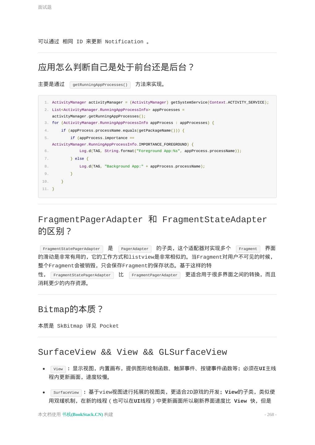 3 . 推送机制 进程保活 Activity、View及Window之间关系 EventBus OkHttp Intent 版本问题 面试题 本文档使用 书栈(BookStack.CN) 构建 - 3 -