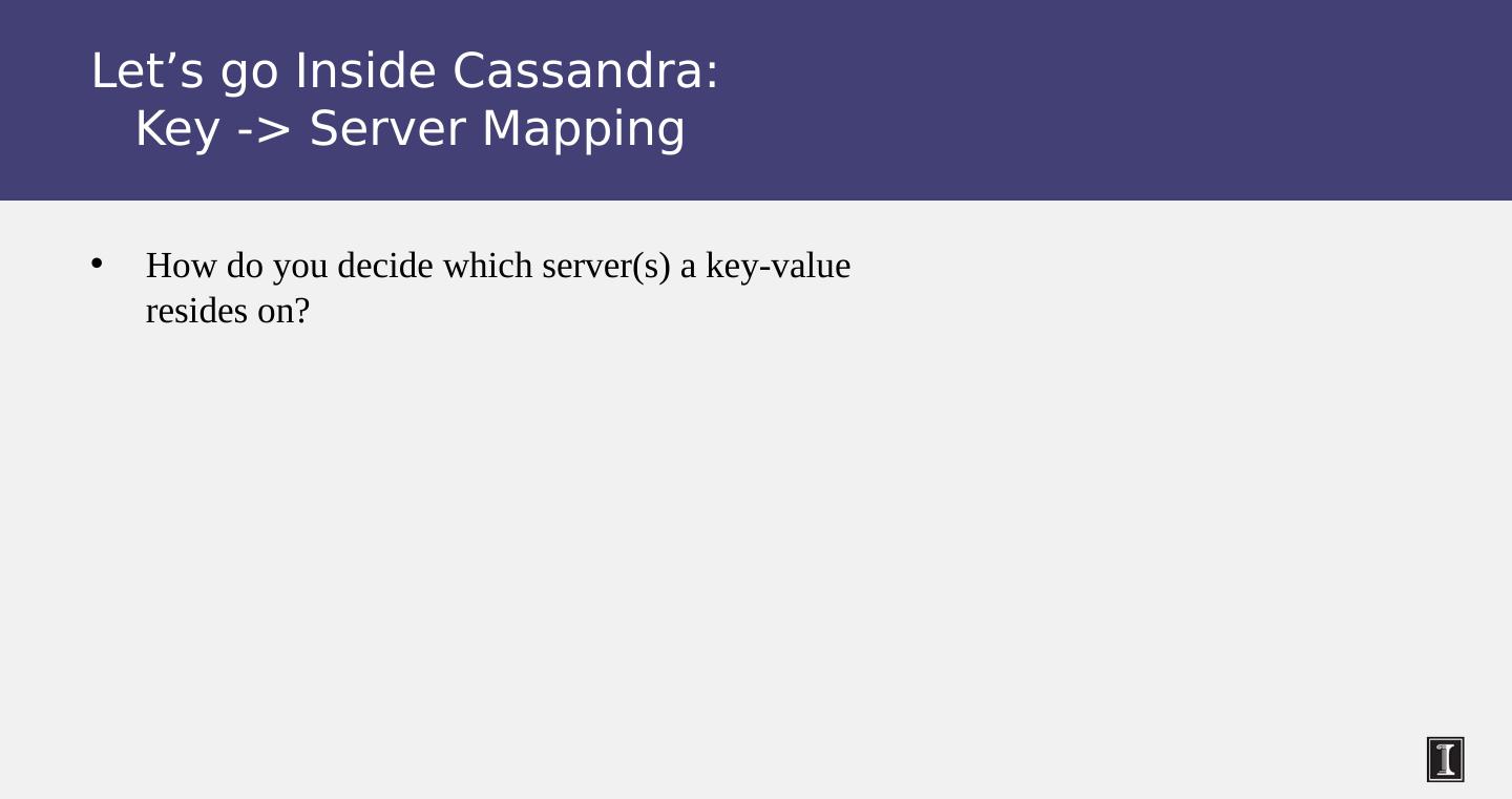 14 .Let’s go Inside Cassandra: Key -> Server Mapping How do you decide which server(s) a key-value resides on?