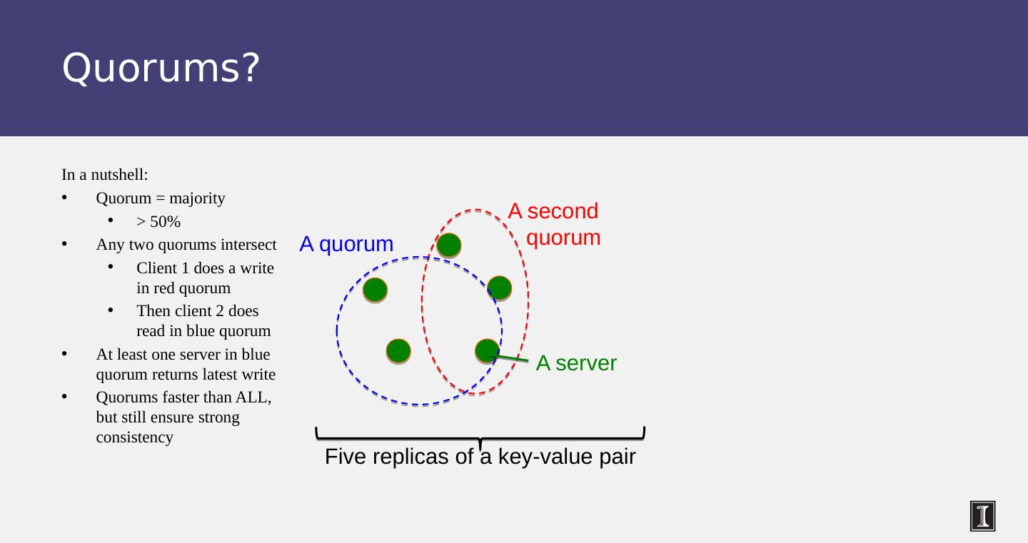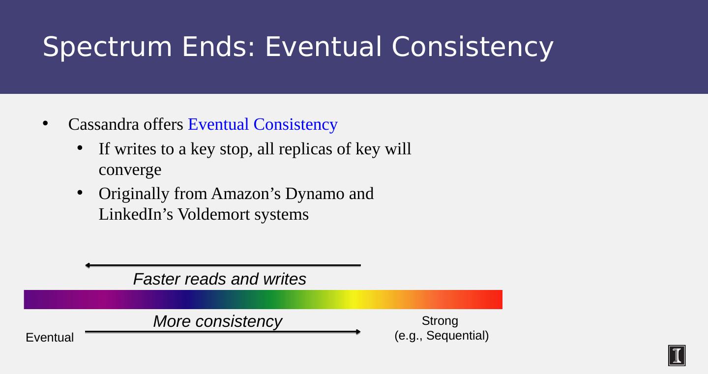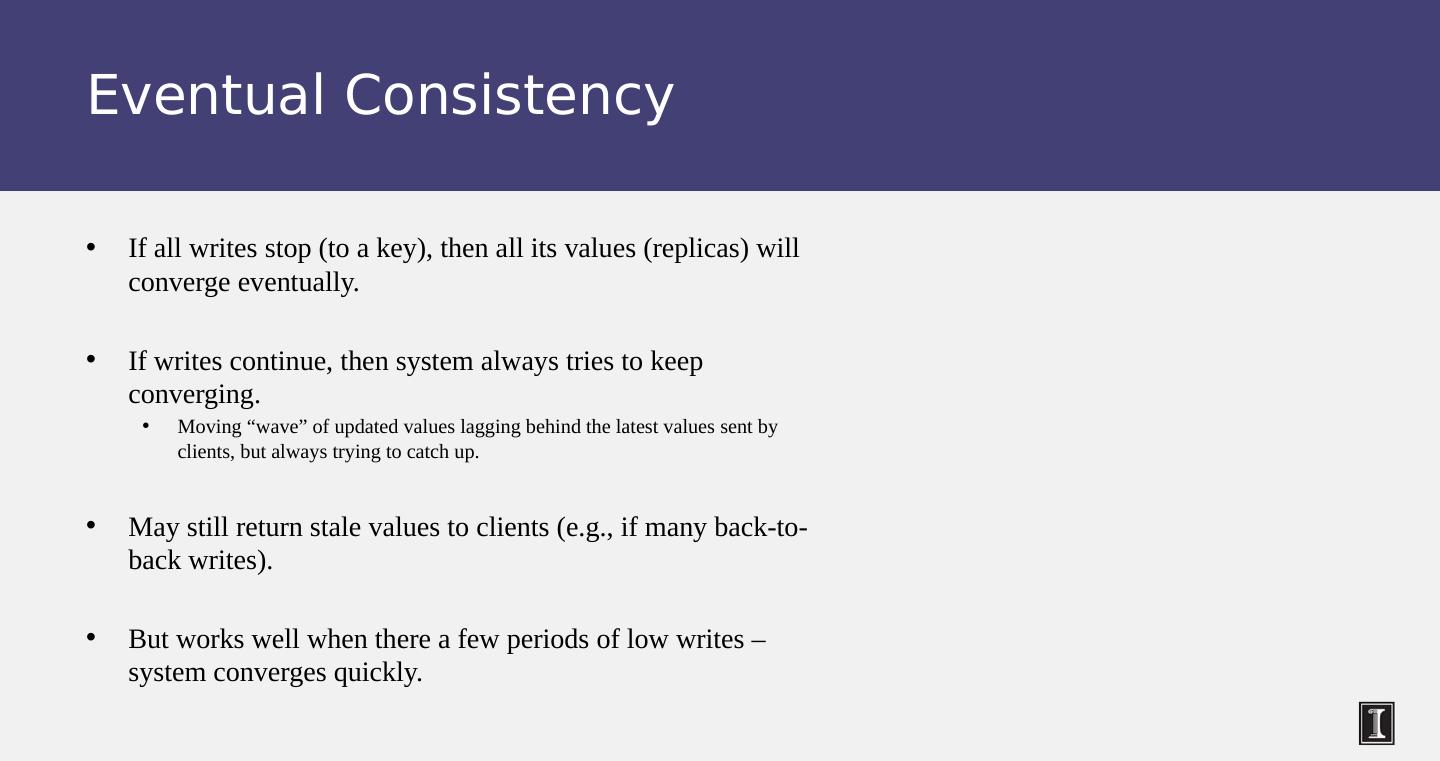 15 .N80 0 Say m=7 N32 N45 Backup replicas for key K13 Cassandra uses a Ring-based DHT but without finger tables or routing Key server mapping is the “ Partitioner ” N112 N96 N16 Read/write K13 Primary replica for key K13 (Remember this?) Coordinator Client One ring per DC