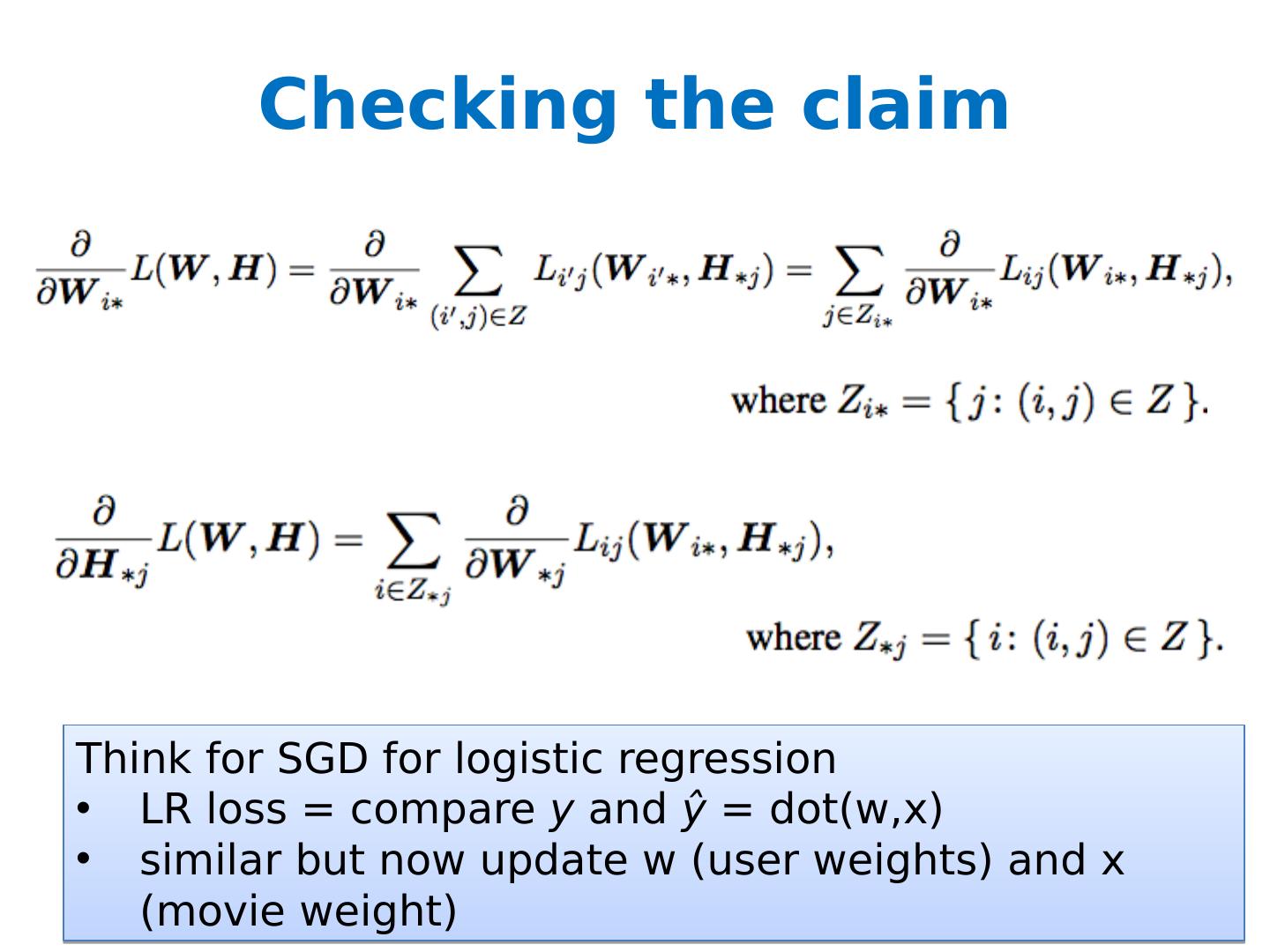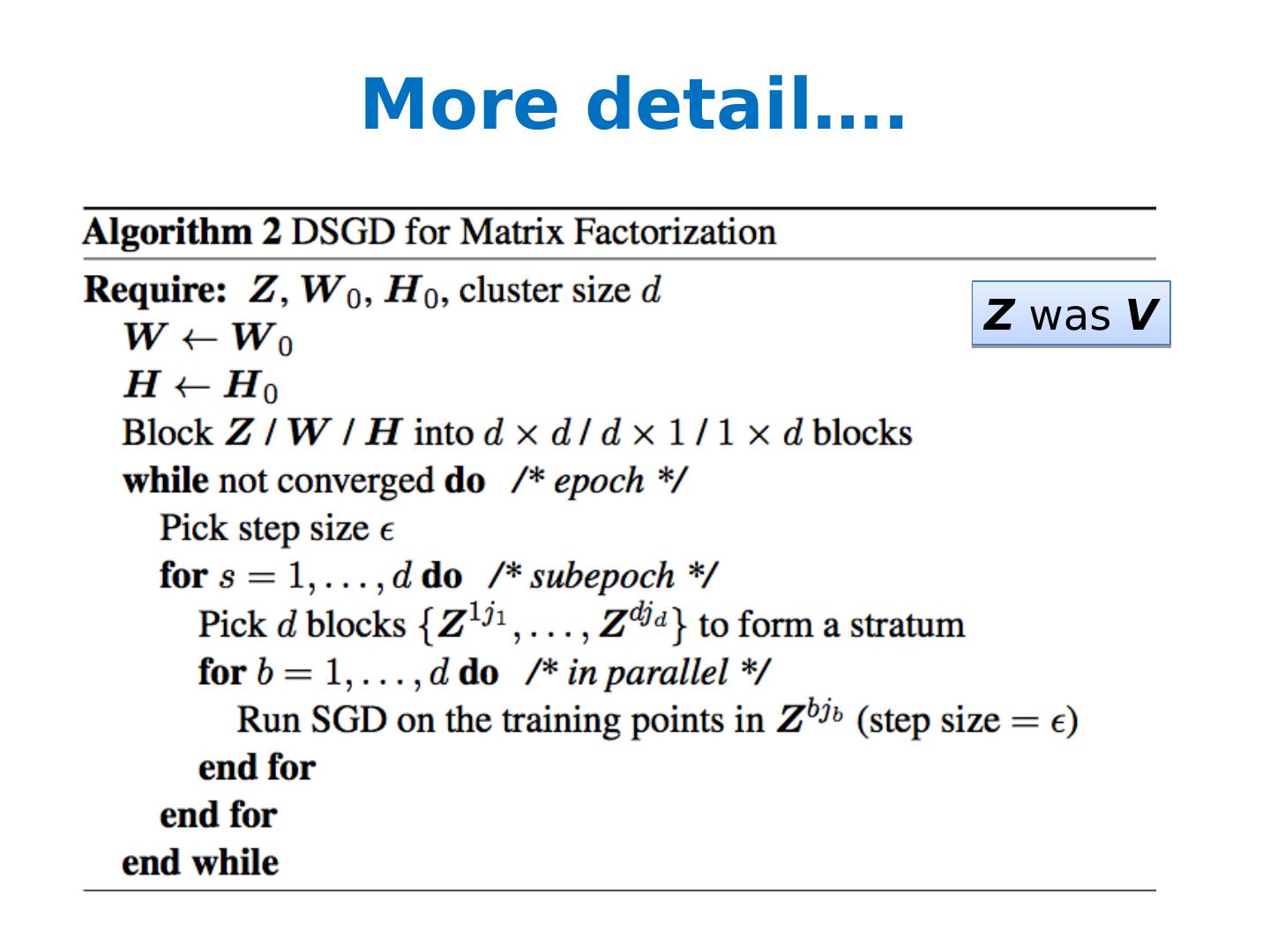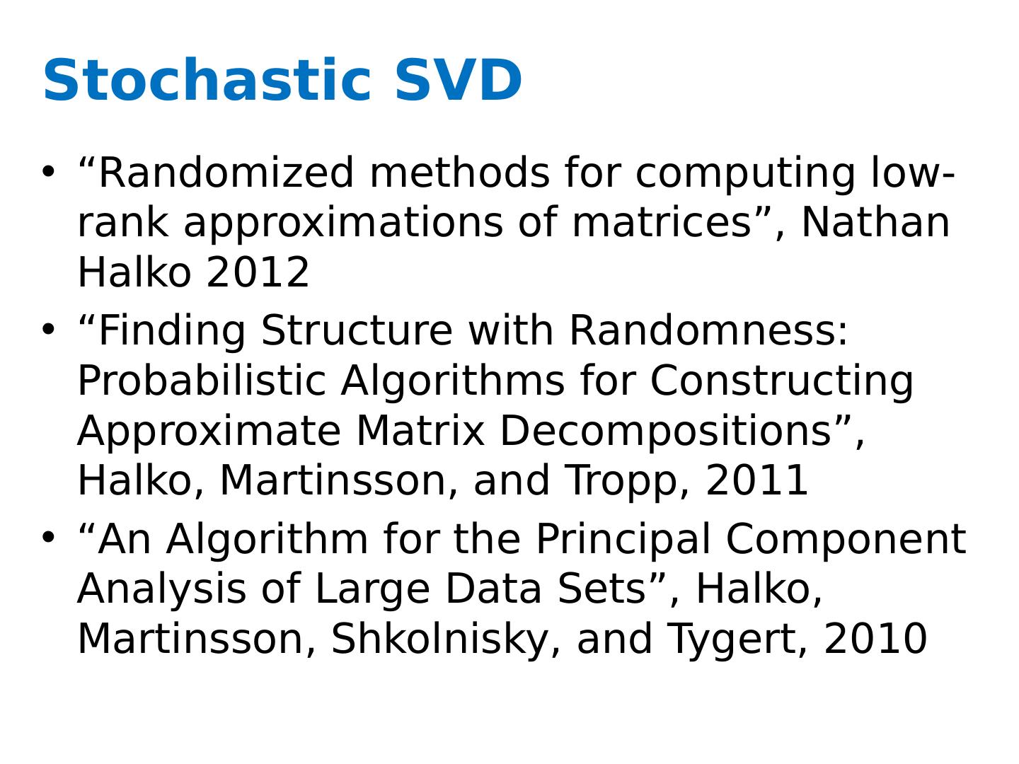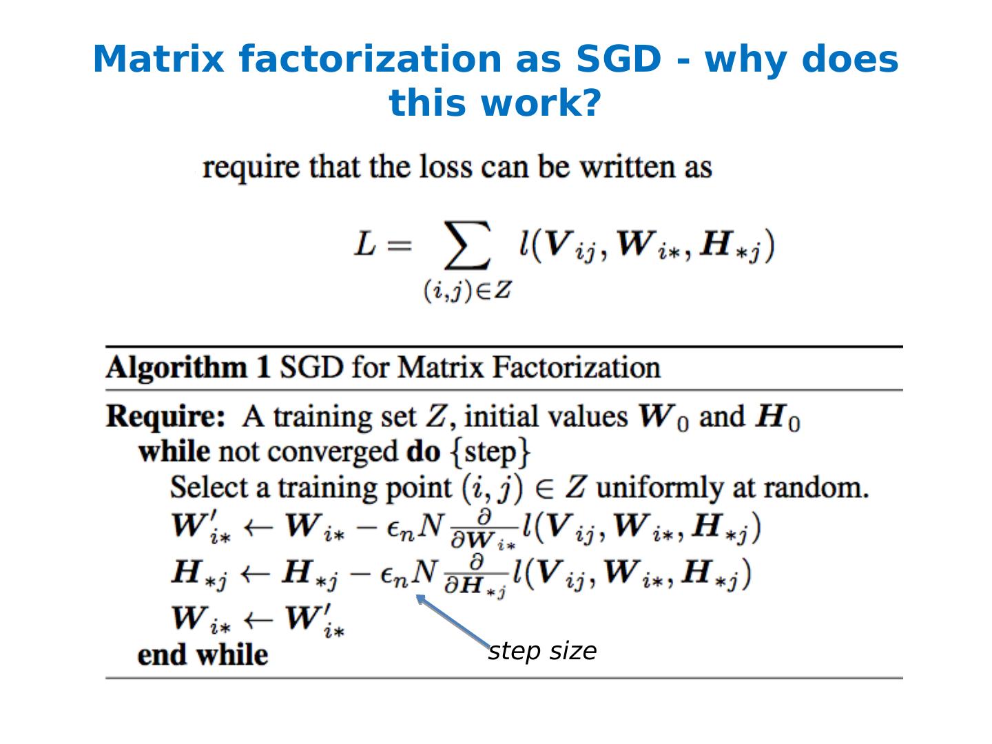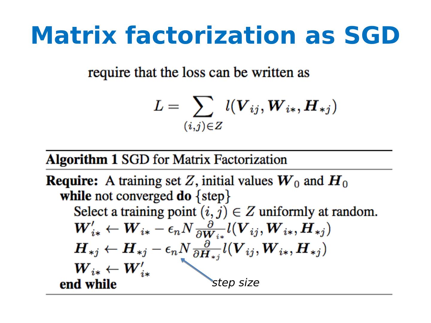 27 .Computing SVD (especially in a MapReduce setting…) Stochastic Gradient Descent (today) Stochastic SVD (not today) Other methods (not today)