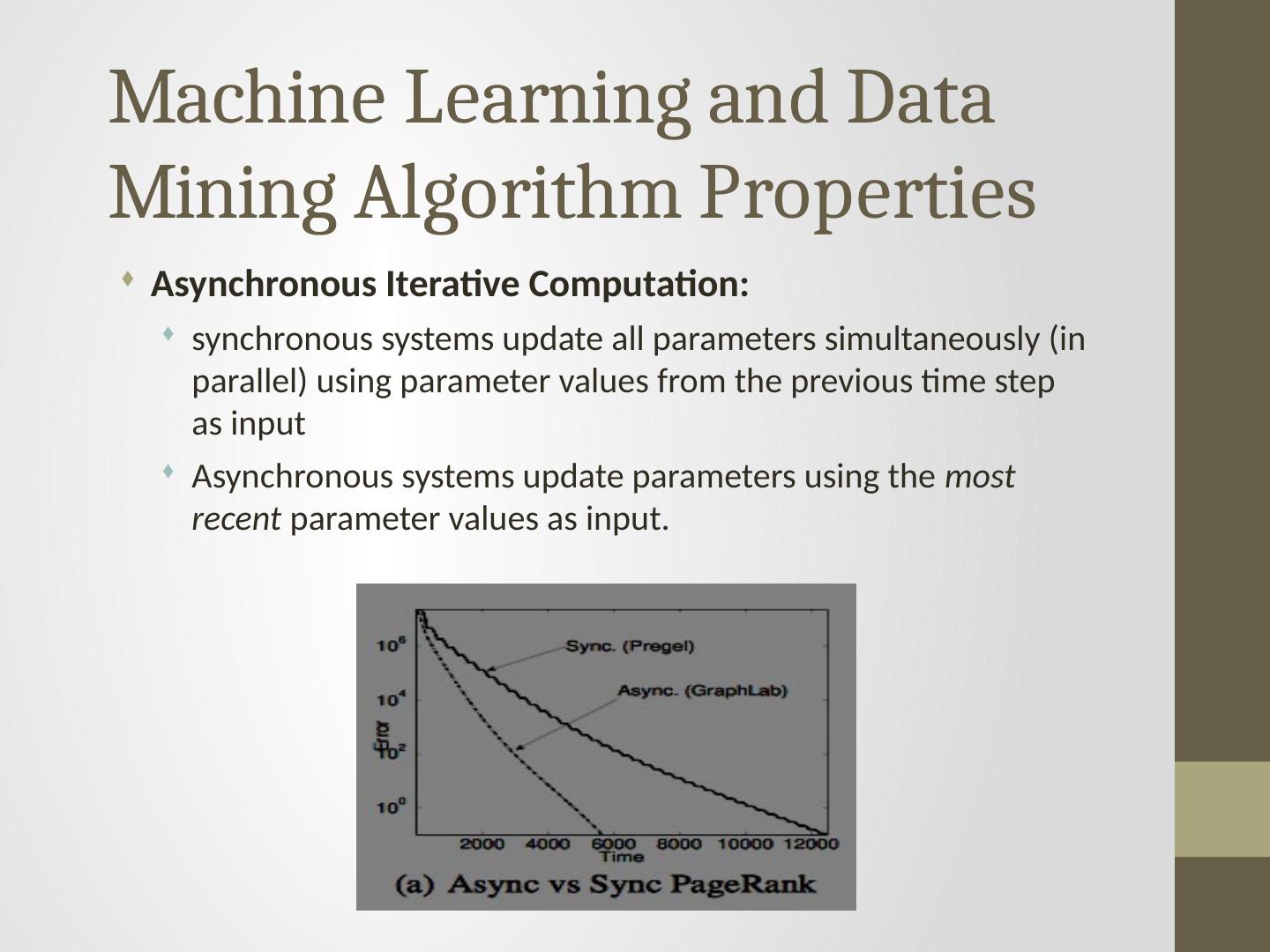 7 .Machine Learning and Data Mining Algorithm Properties Asynchronous Iterative Computation: synchronous systems update all parameters simultaneously (in parallel) using parameter values from the previous time step as input Asynchronous systems update parameters using the most recent parameter values as input.