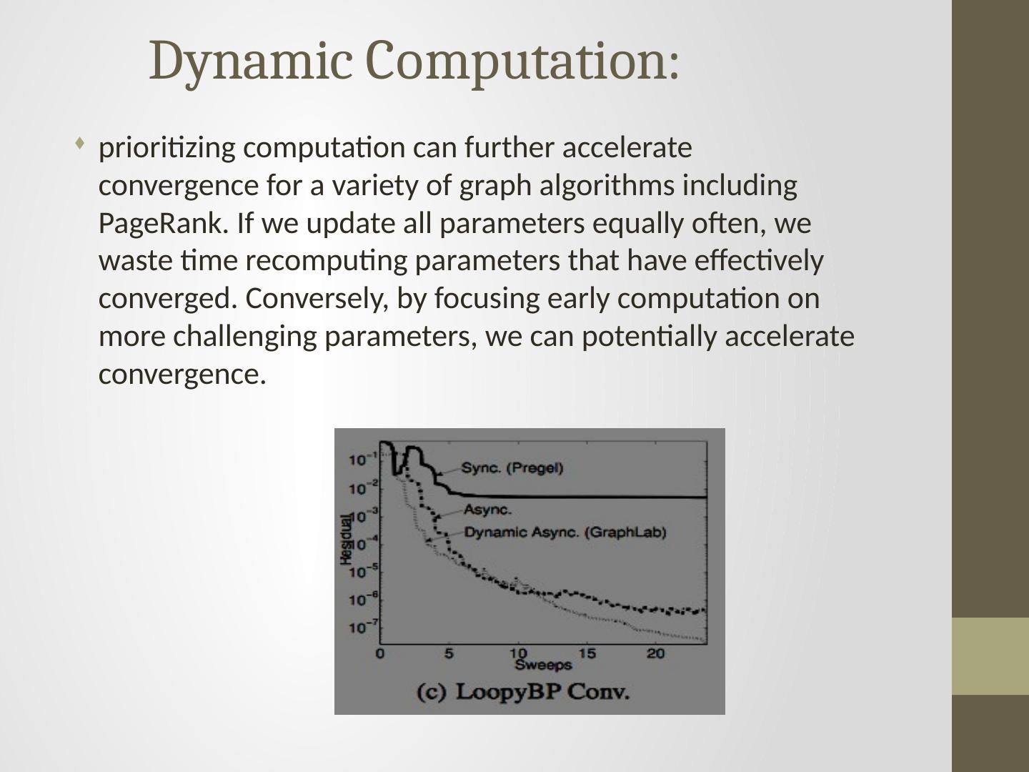 10 . Dynamic Computation: prioritizing computation can further accelerate convergence for a variety of graph algorithms including PageRank. If we update all parameters equally often, we waste time recomputing parameters that have effectively converged. Conversely, by focusing early computation on more challenging parameters, we can potentially accelerate convergence.