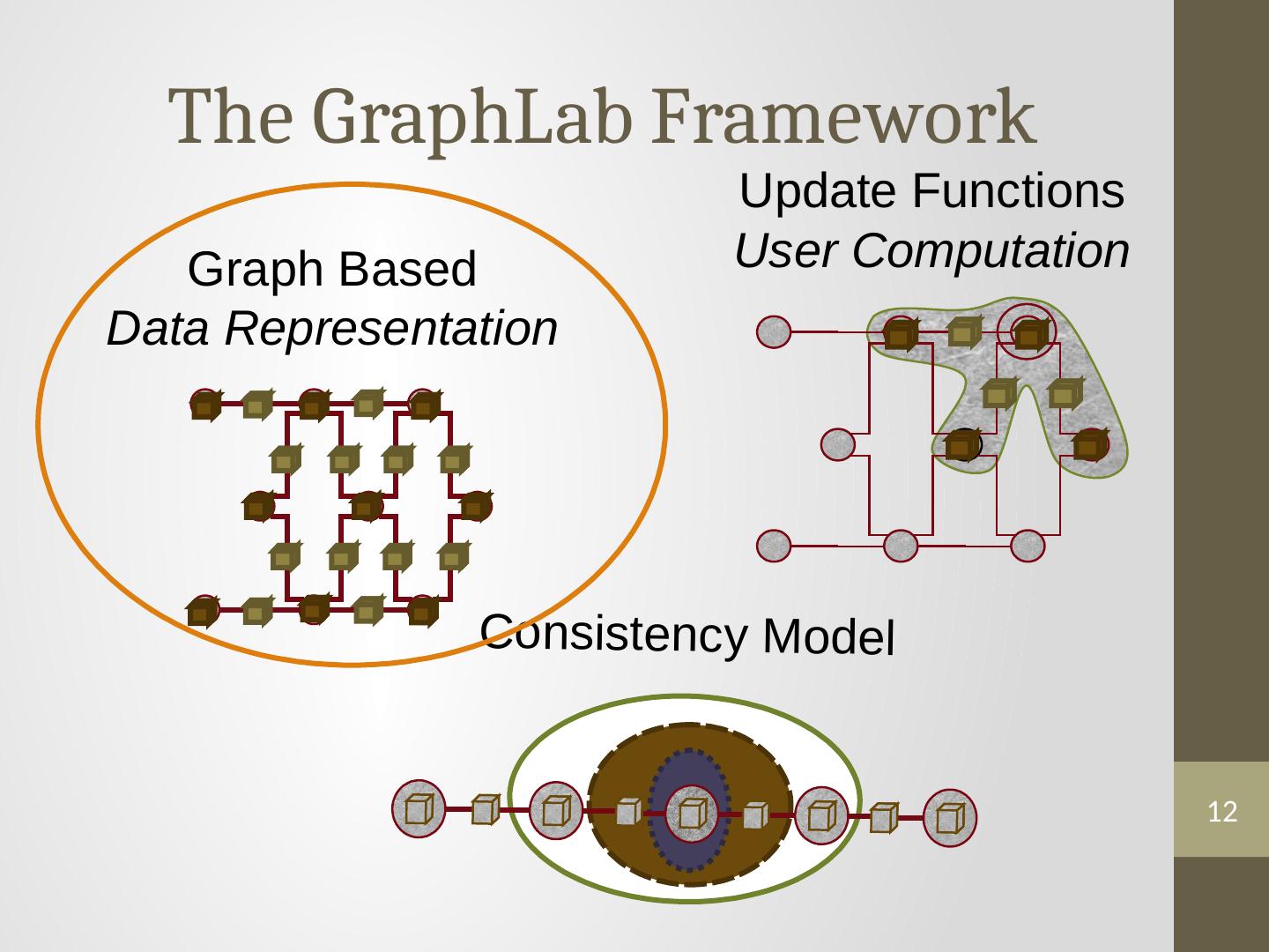 12 .12 The GraphLab Framework Consistency Model Graph Based Data Representation Update Functions User Computation