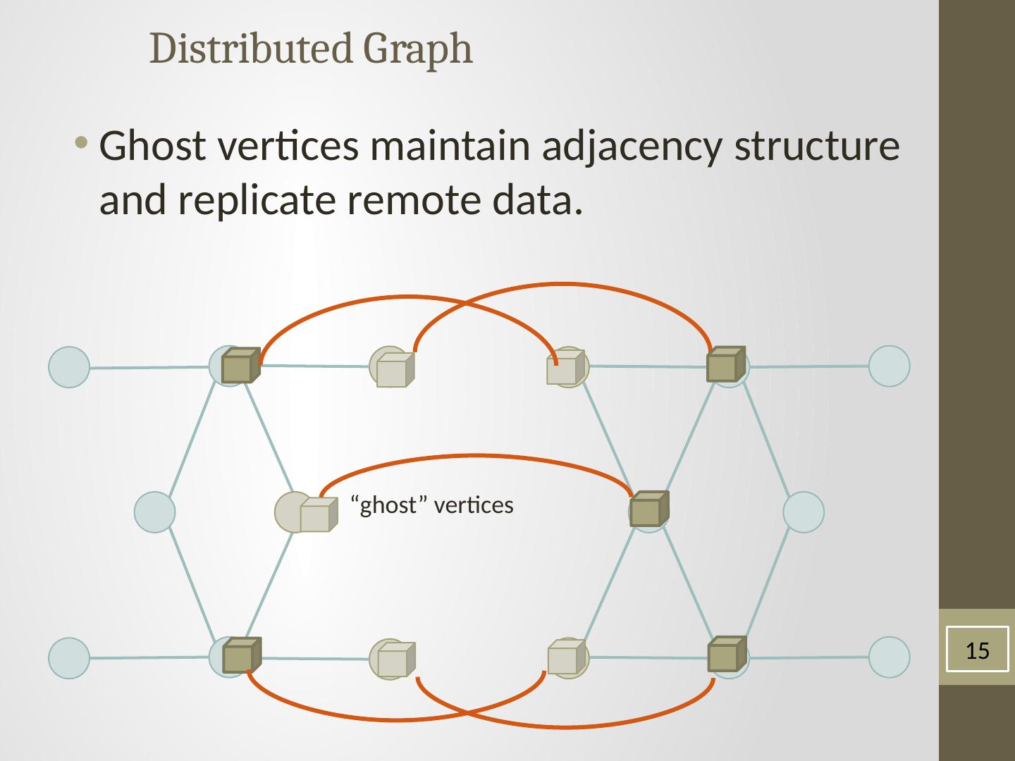 15 .Distributed Graph Ghost vertices maintain adjacency structure and replicate remote data. “ghost” vertices 15