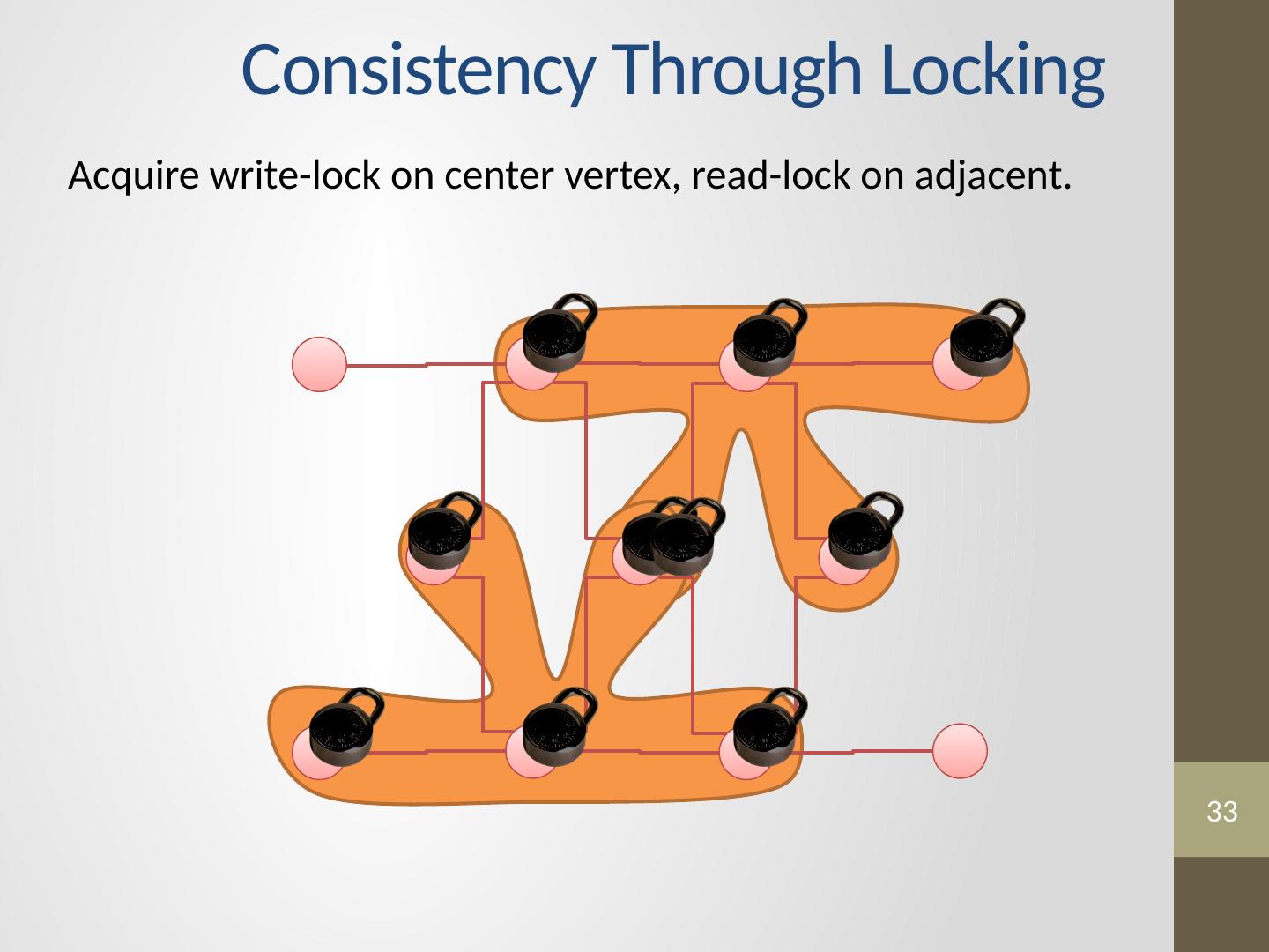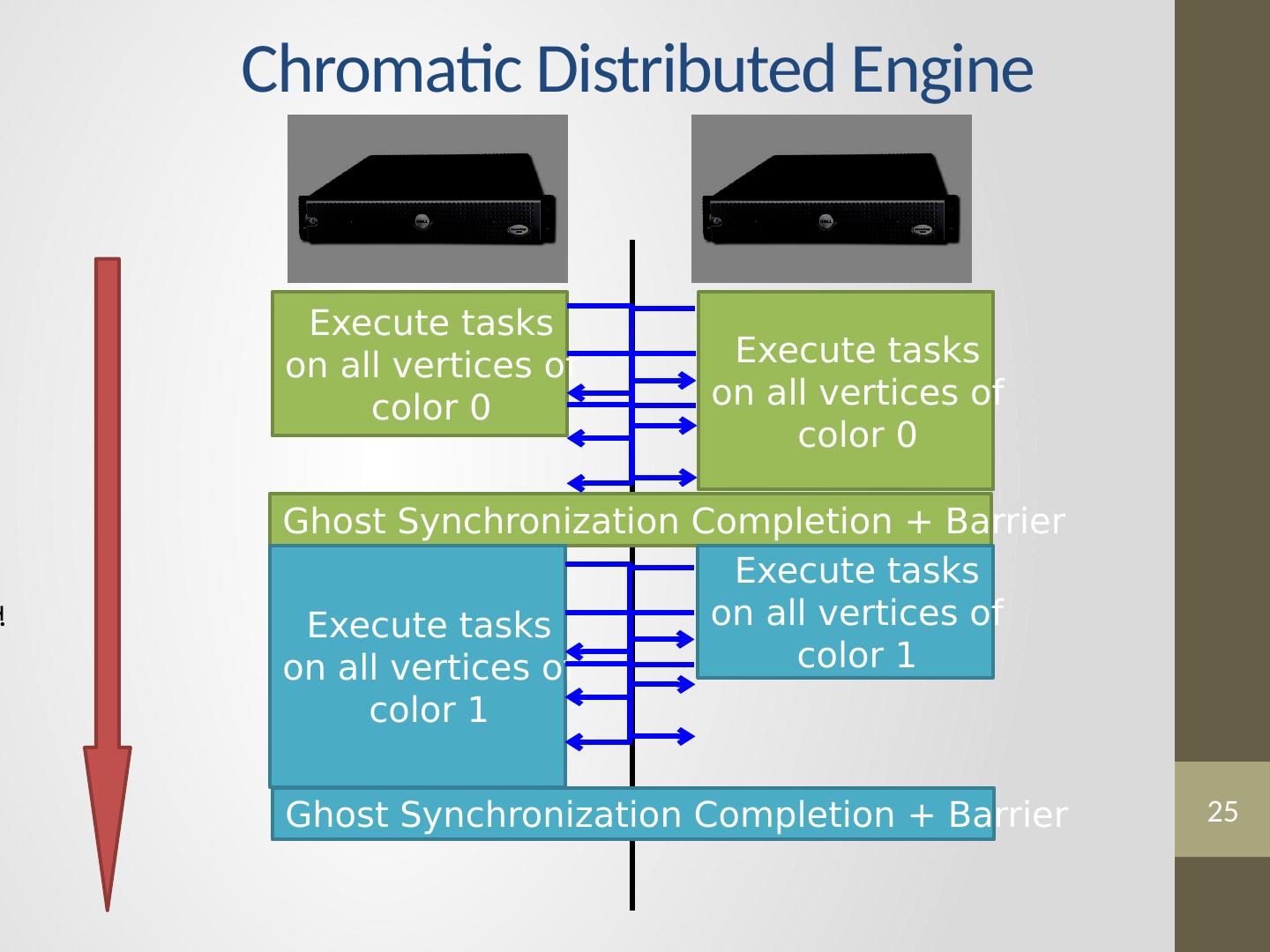 25 .25 Chromatic Distributed Engine Time Execute tasks on all vertices of color 0 Execute tasks on all vertices of color 0 Ghost Synchronization Completion + Barrier Execute tasks on all vertices of color 1 Execute tasks on all vertices of color 1 Ghost Synchronization Completion + Barrier