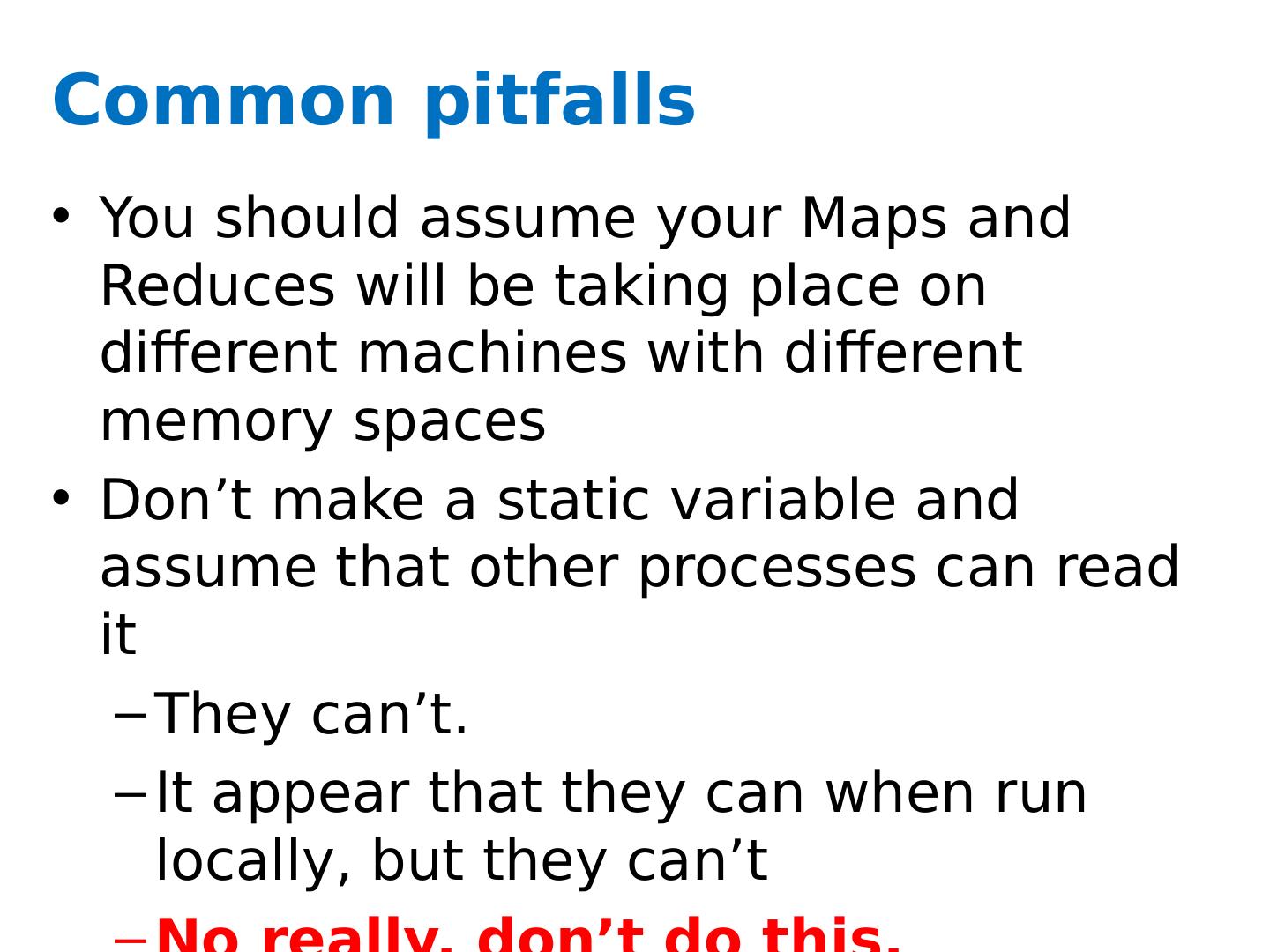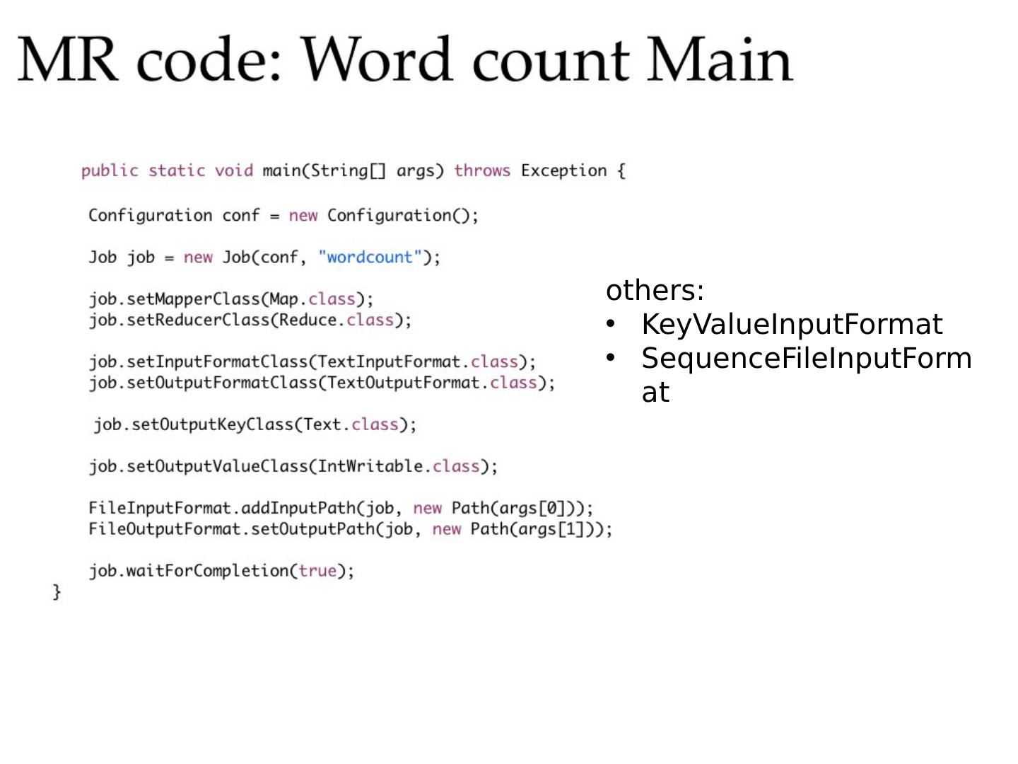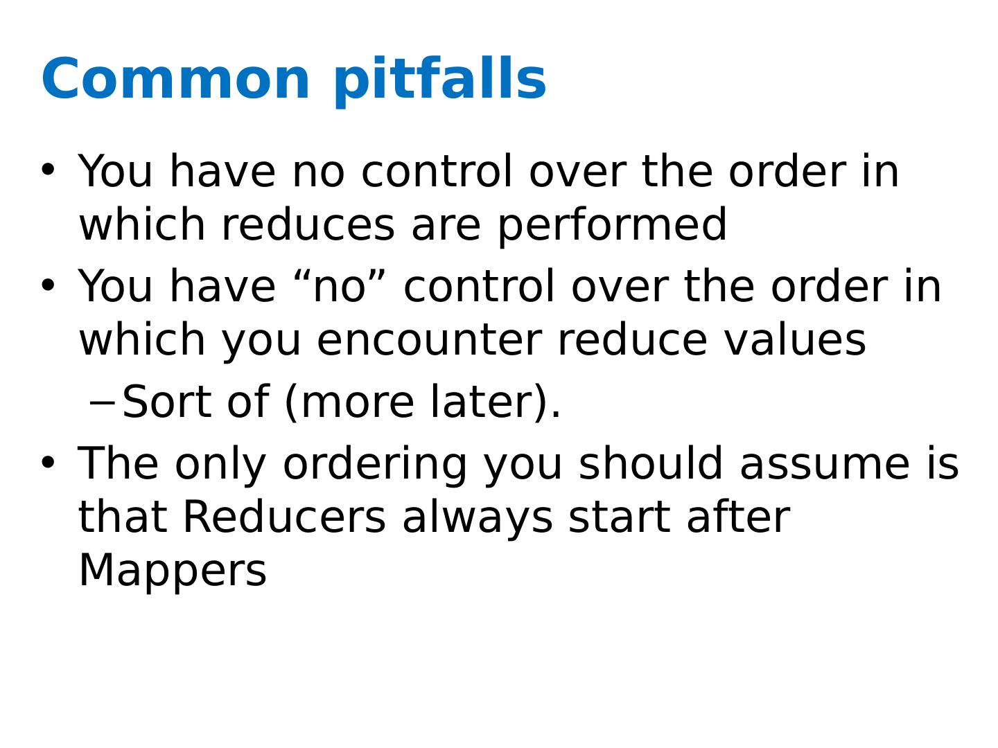 29 .Inspiration not Plagiarism This is not the first lecture ever on Mapreduce I borrowed from William Cohen, who borrowed from Alona Fyshe , and she borrowed from: Jimmy Lin http://www.umiacs.umd.edu/~jimmylin/cloud-computing/SIGIR-2009/Lin-MapReduce-SIGIR2009.pdf Google http://code.google.com/edu/submissions/mapreduce-minilecture/listing.html http://code.google.com/edu/submissions/mapreduce/listing.html Cloudera http://vimeo.com/3584536