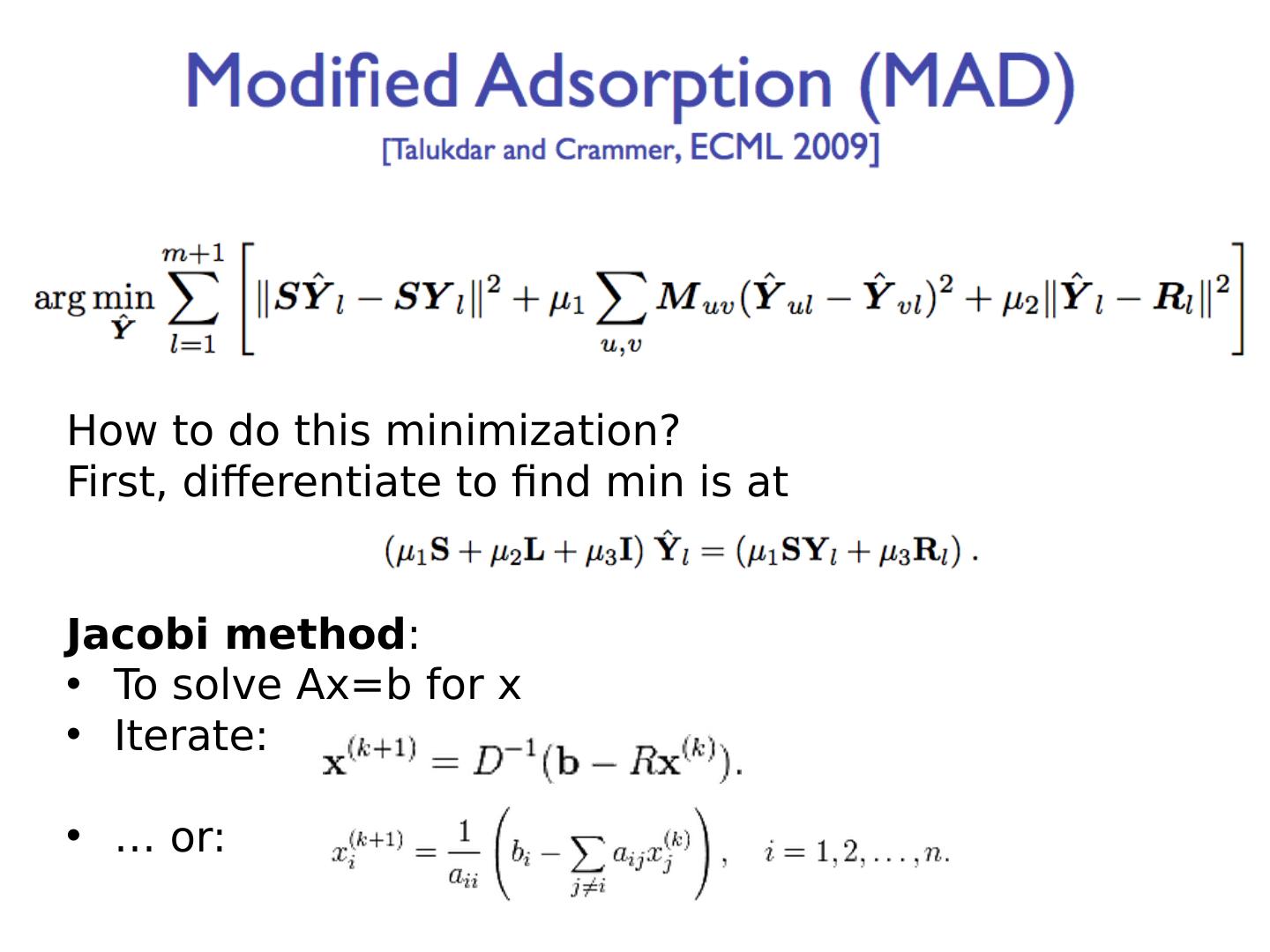 23 .How to do this minimization? First, differentiate to find min is at Jacobi method : To solve Ax=b for x Iterate: … or: