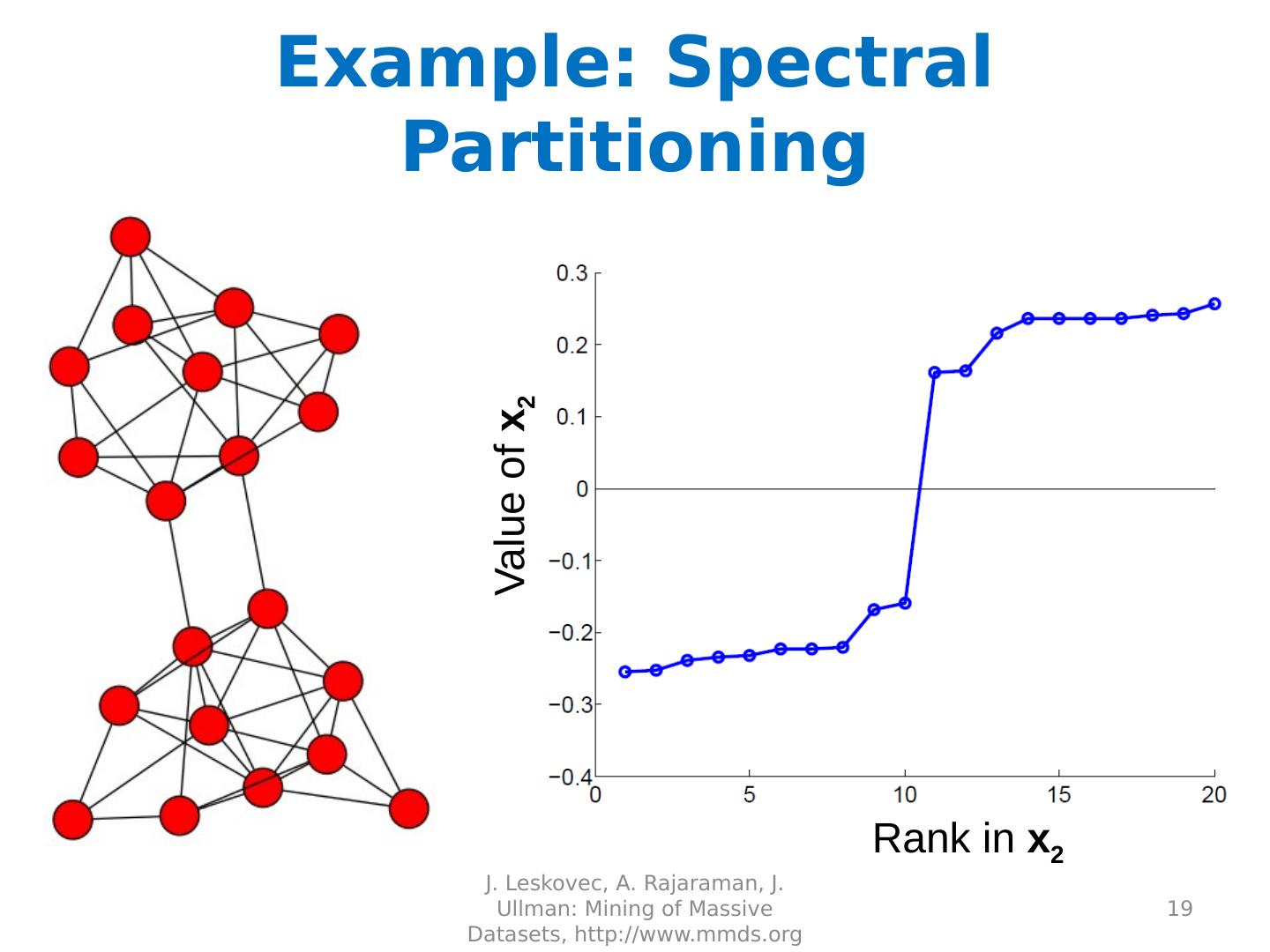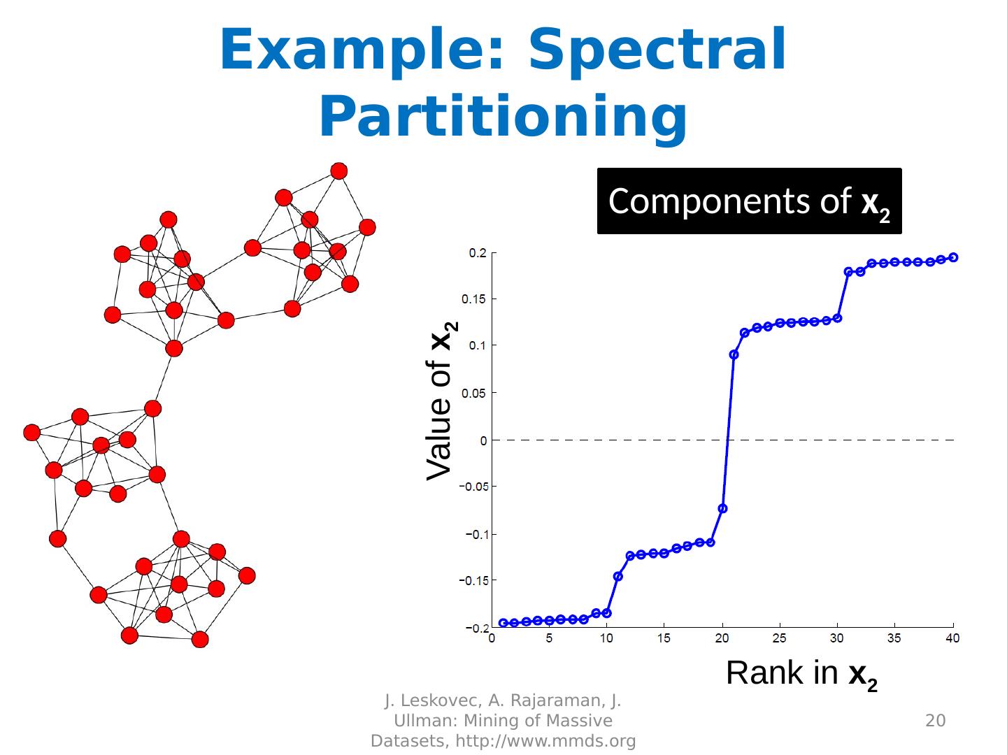 19 .Example: Spectral Partitioning J. Leskovec, A. Rajaraman, J. Ullman: Mining of Massive Datasets, http://www.mmds.org 19 Rank in x 2 Value of x 2