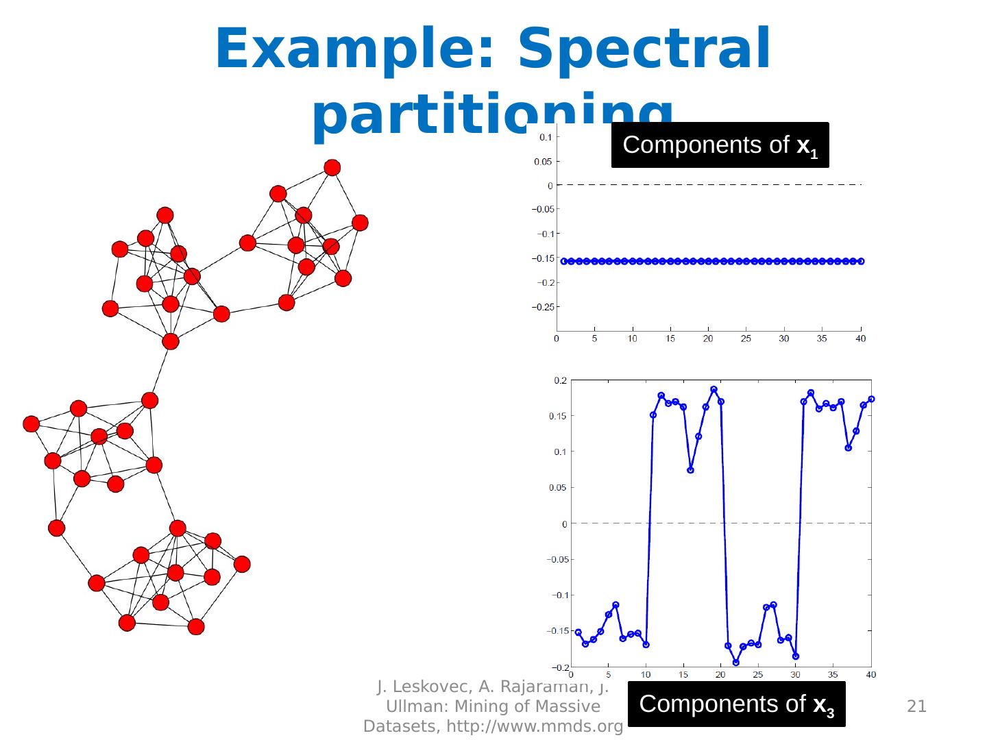21 .Example: Spectral partitioning J. Leskovec, A. Rajaraman, J. Ullman: Mining of Massive Datasets, http://www.mmds.org 21 Components of x 1 Components of x 3