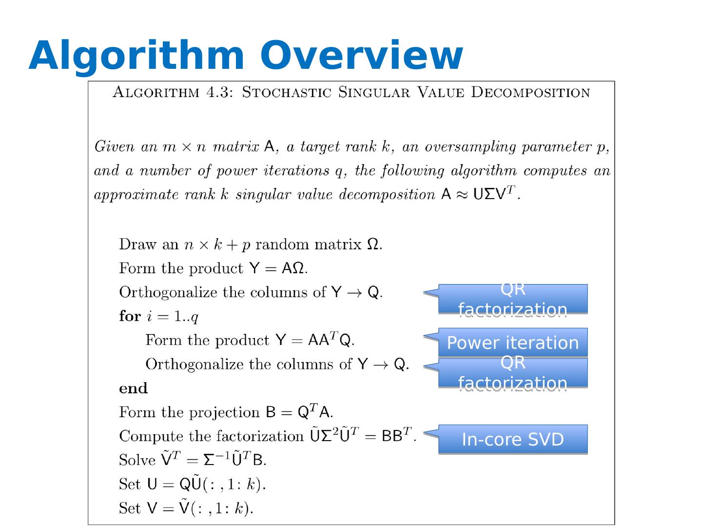 14 .Algorithm Overview QR factorization Power iteration QR factorization In-core SVD