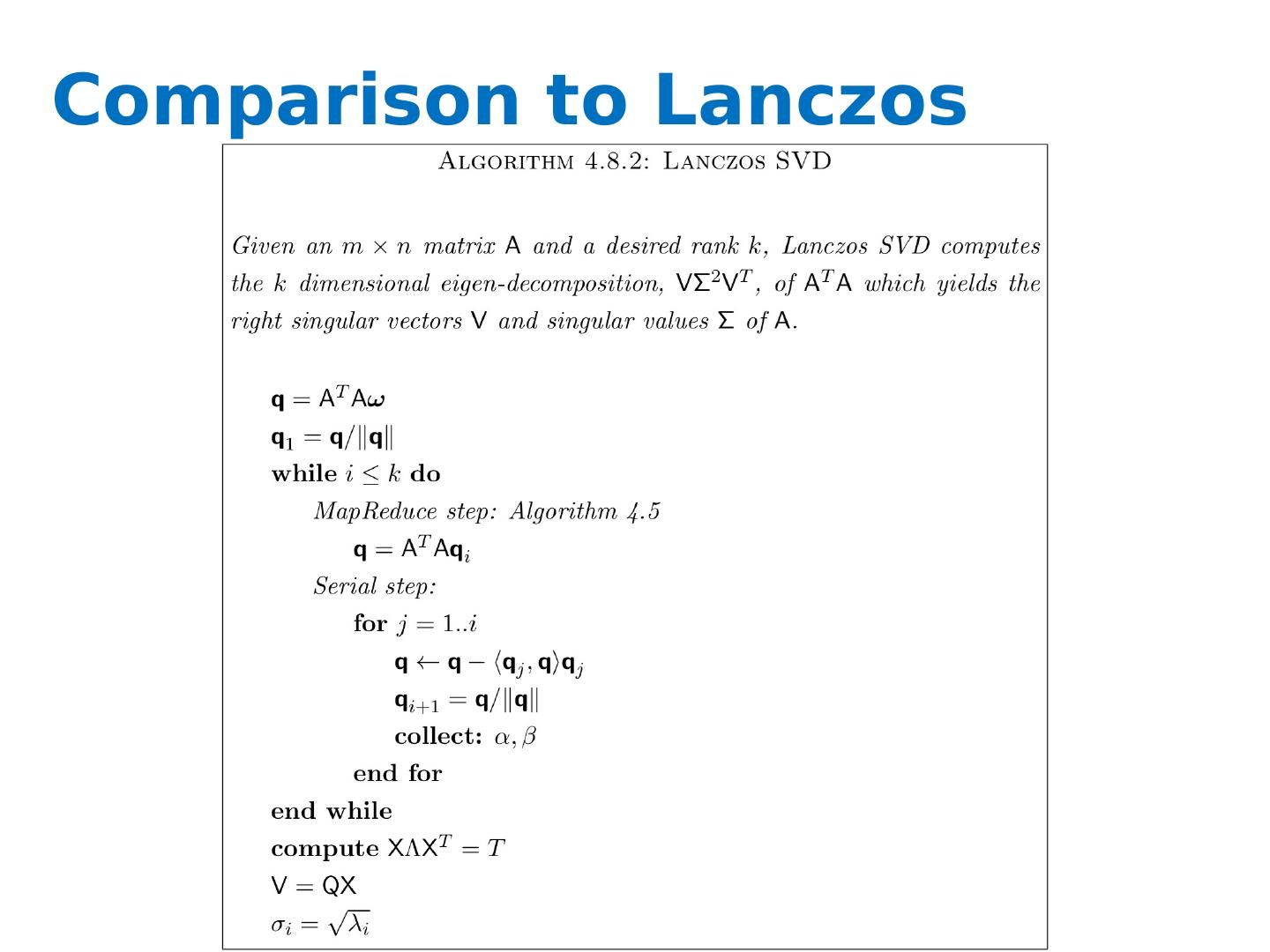 7 .Approximating the SVD INPUT: Q OUTPUT: Singular vectors U Form k x n matrix B = Q T A Compute SVD of B = ÛΣV T Compute singular vectors U = QÛ