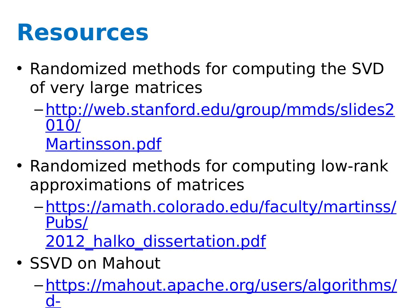 1 .Stochastic SVD on Hadoop Shannon Quinn (with thanks to Gunnar Martinsson and Nathan Halko of UC Boulder, and Joel Tropp of CalTech )