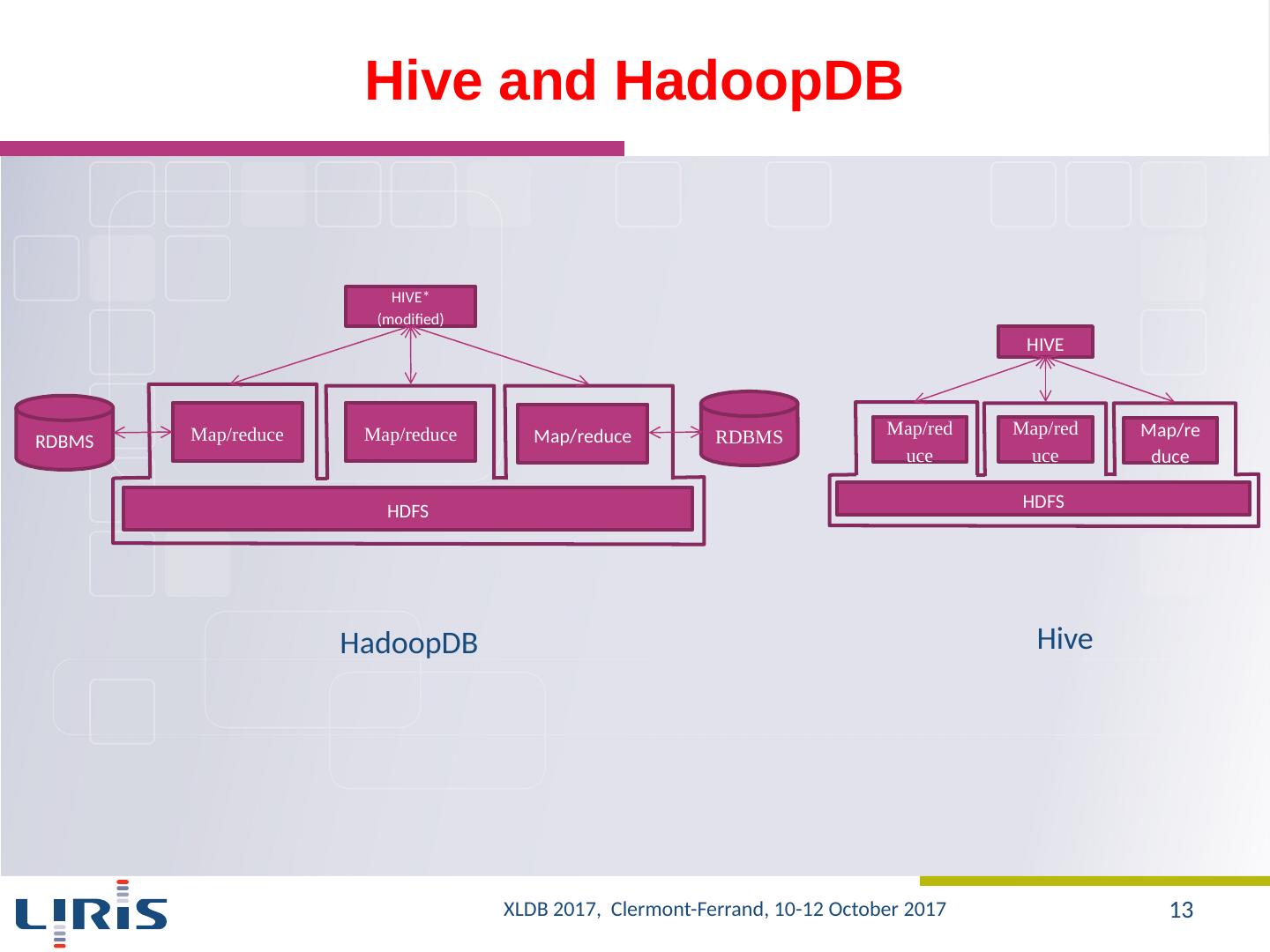 13 .Hive and HadoopDB Map/reduce Map/reduce Map/reduce HDFS HIVE Map/reduce Map/reduce Map/reduce HDFS HIVE* ( modified ) RDBMS RDBMS HadoopDB Hive XLDB 2017, Clermont-Ferrand, 10-12 October 2017 13
