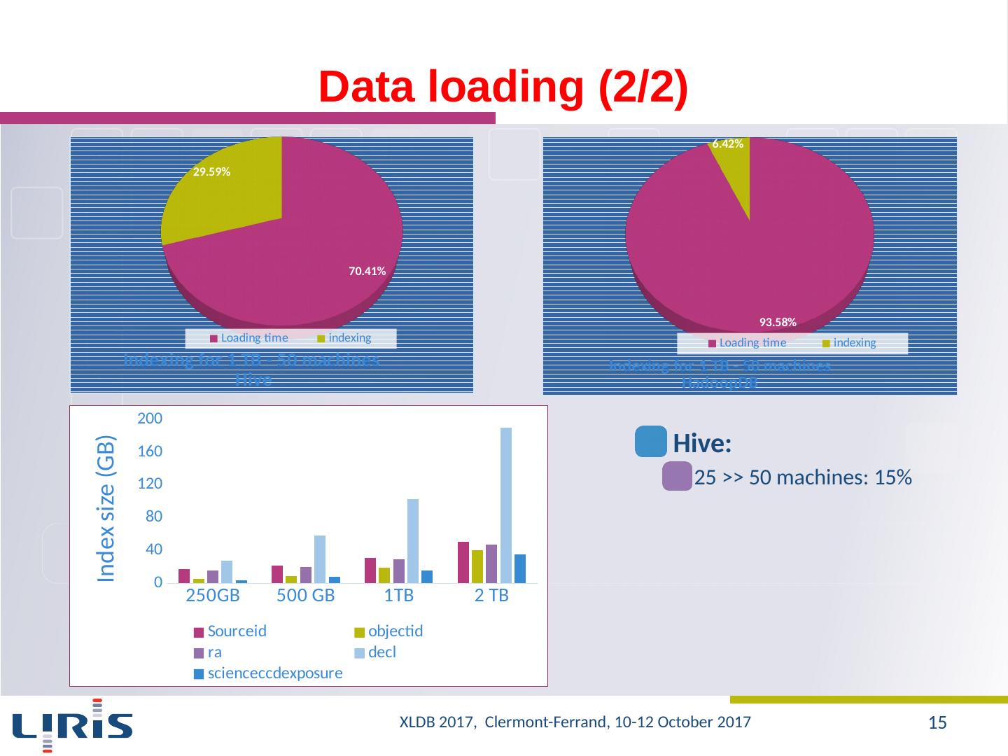 14 .Data loading (1/2) Différence ( Hive >> HadoopDB ): 300 % for 25 machines and 200 % pour 50 machines Hive : 2X of time for 2X of data 25 >> 50 machines: same time HadoopDB : 2X of data: 90 %-120 % more 25 >>50 machines: 25 % gain XLDB 2017, Clermont-Ferrand, 10-12 October 2017 14