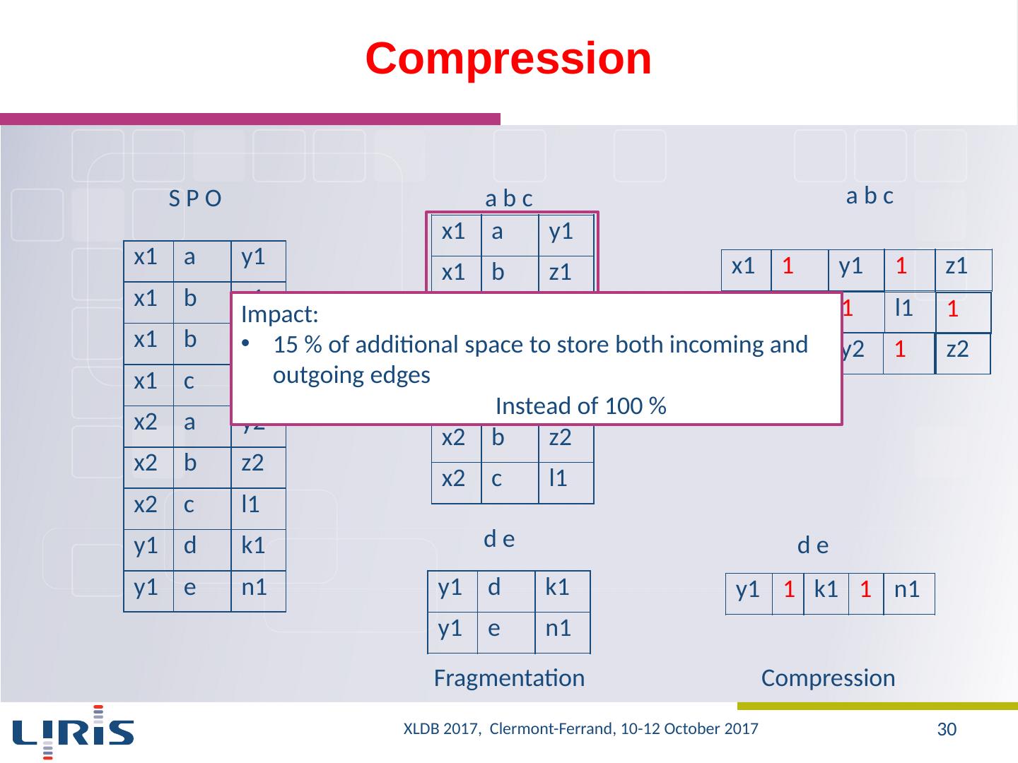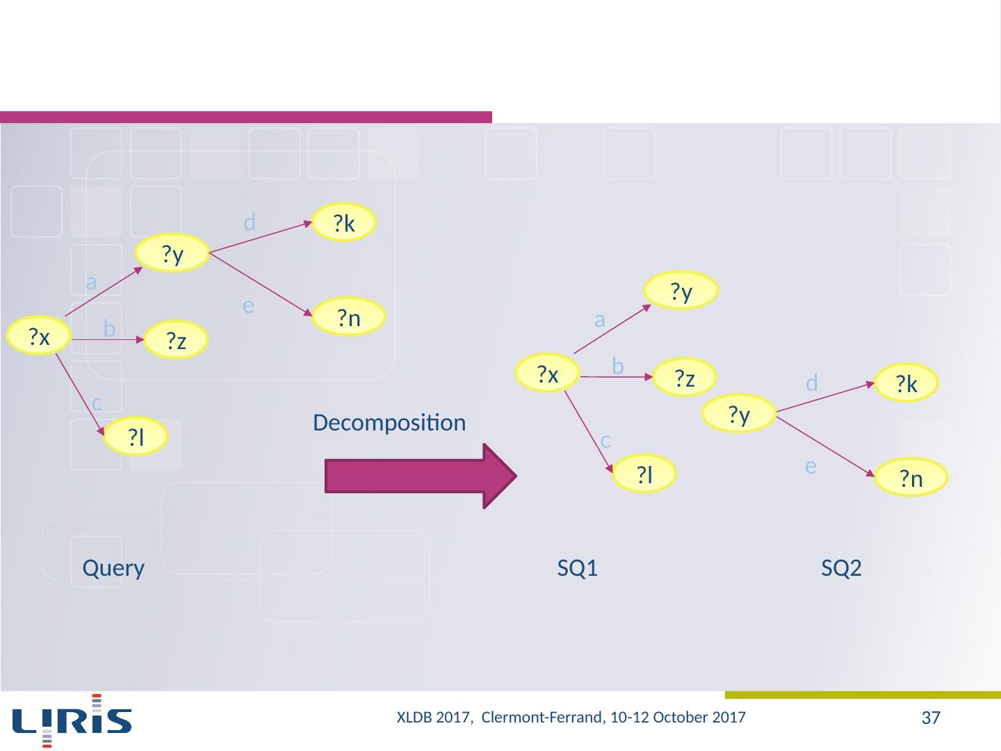 29 .Storage (2/2) ?x ?y ?z a b Problem 2: Scan of SPO ? x1 a y1 x1 b z1 x1 c l1 x2 a y2 x2 b z2 x2 c l1 y1 d k1 y1 e n1 x1 a y1 x1 b z1 x1 c l1 x2 a y2 x2 b z2 x2 c l1 y1 d k1 y1 e n1 a b c d e S P O SPO-Lattice a b c a a b b d e f d e f h j g c XLDB 2017, Clermont-Ferrand, 10-12 October 2017 29
