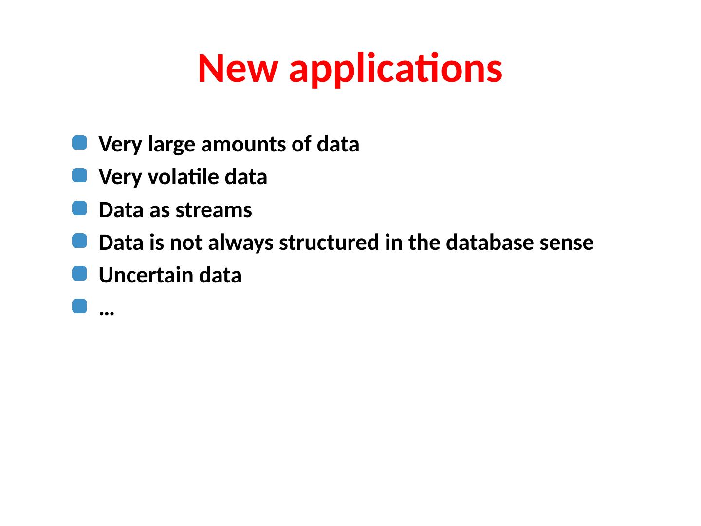 2 .New applications Very large amounts of data Very volatile data Data as streams Data is not always structured in the database sense Uncertain data …