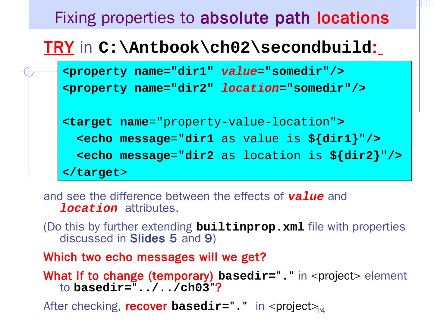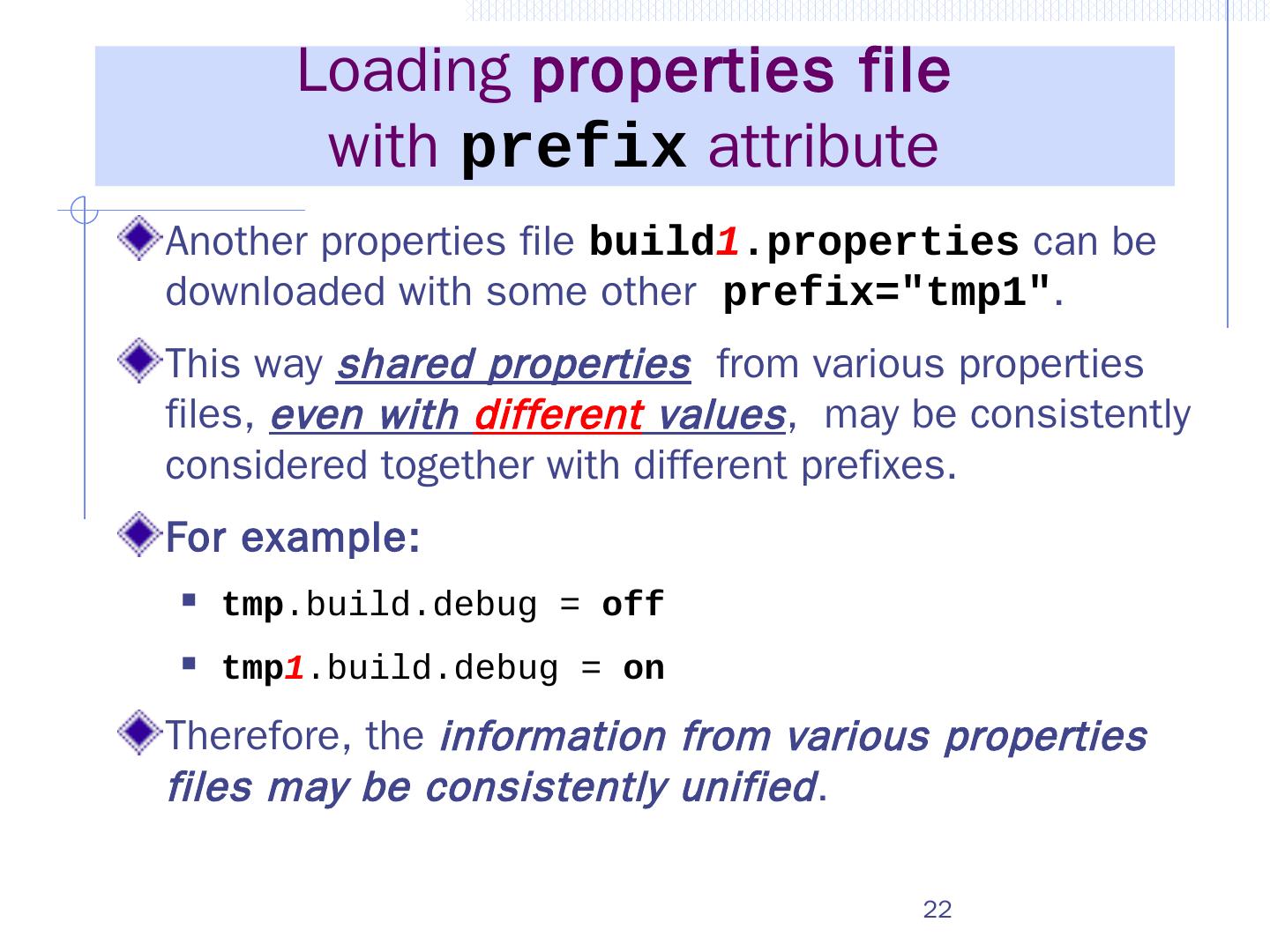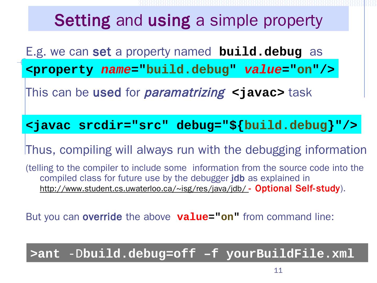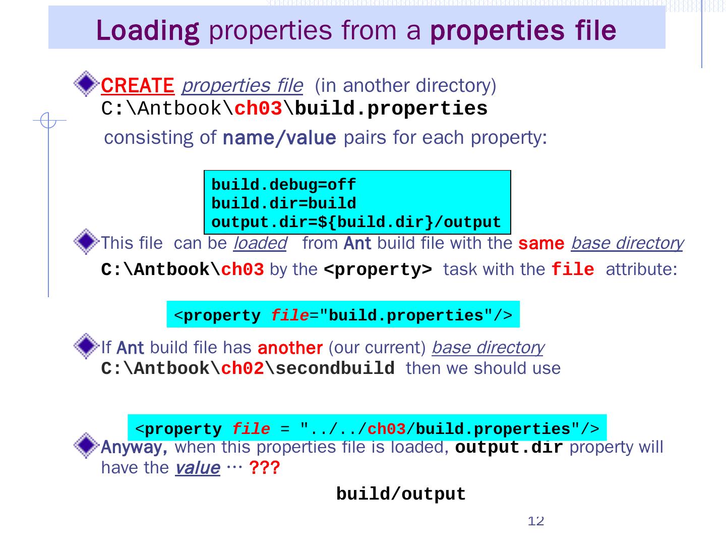 These slides are mainly based on “Java Development with Ant” - E. Hatcher ... [echo] ant.version = Apache Ant(TM) version 1.8.2 compiled on December 20 ...