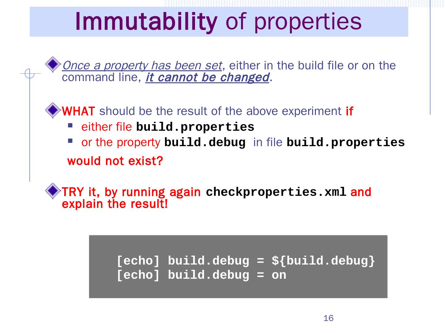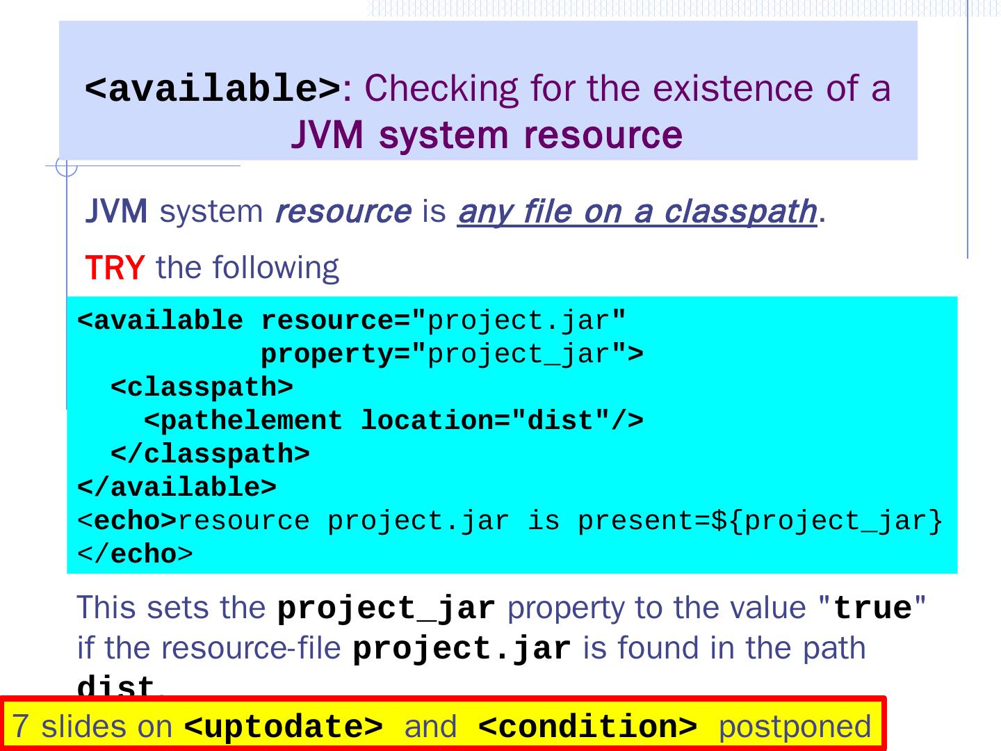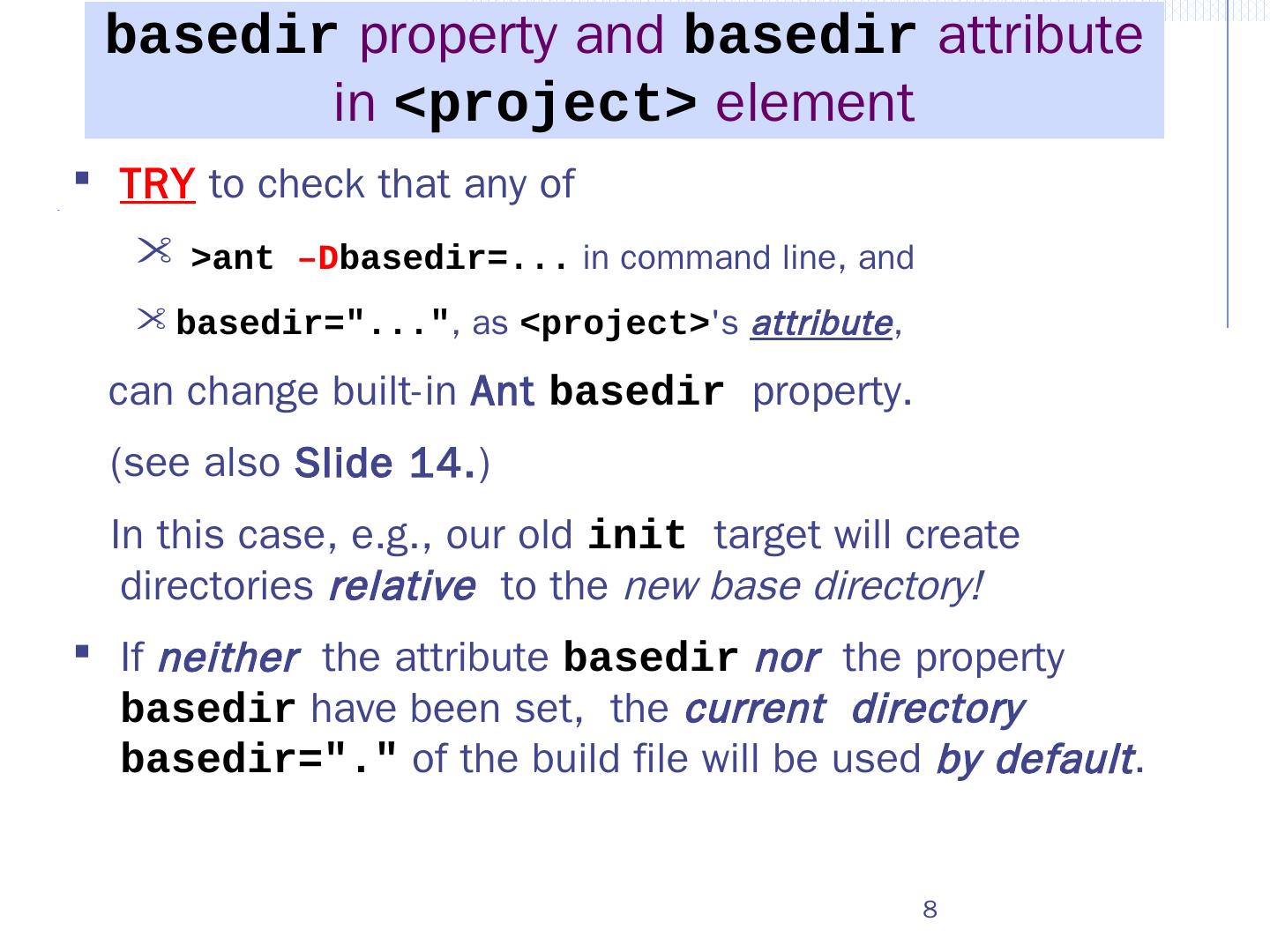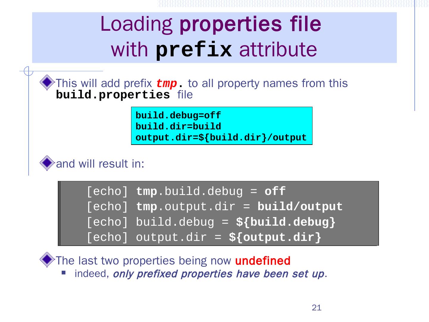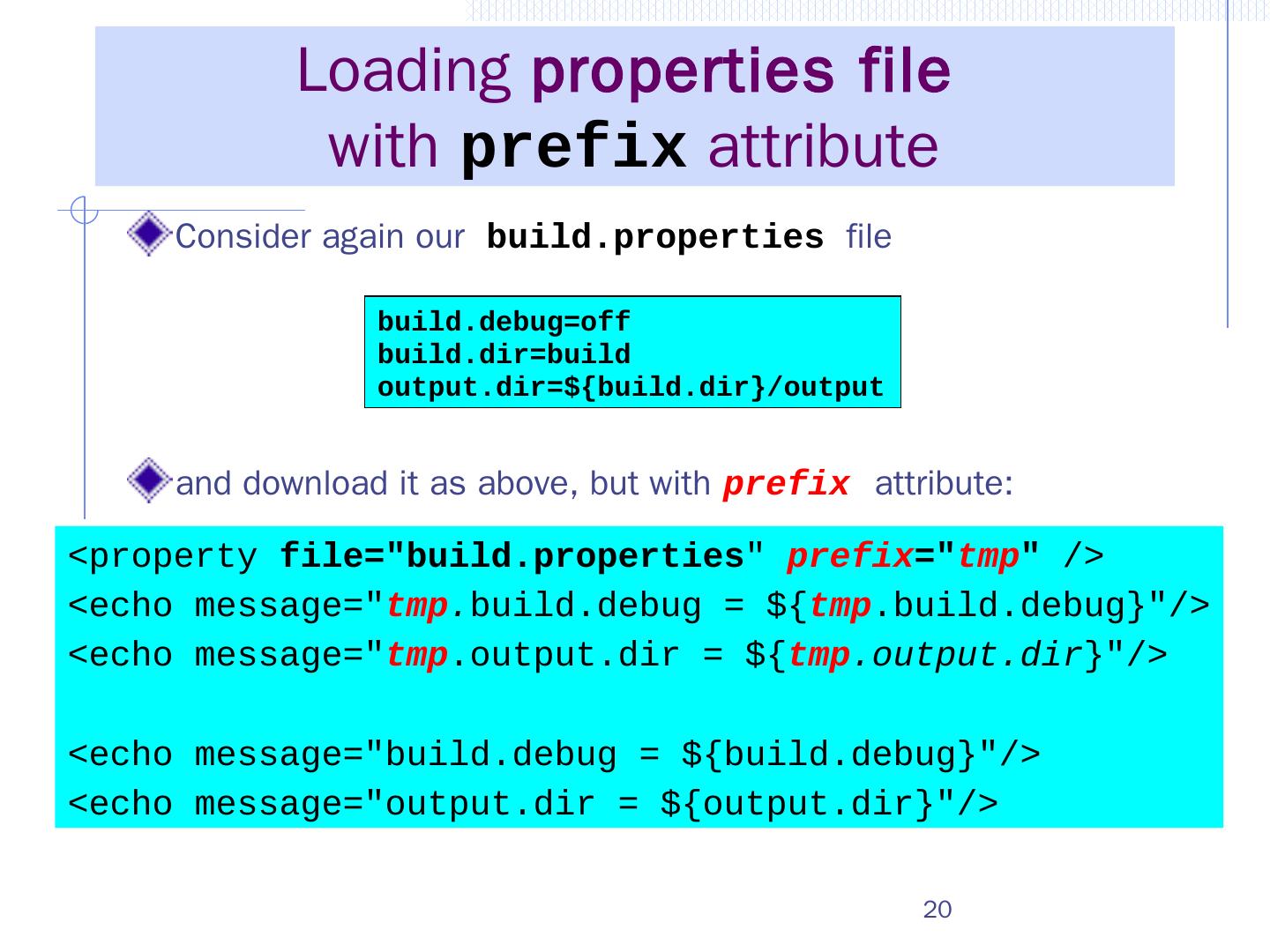 These slides are mainly based on “Java Development with Ant” - E. Hatcher ... [echo] ant.version = Apache Ant(TM) version 1.8.2 compiled on December 20 ...
