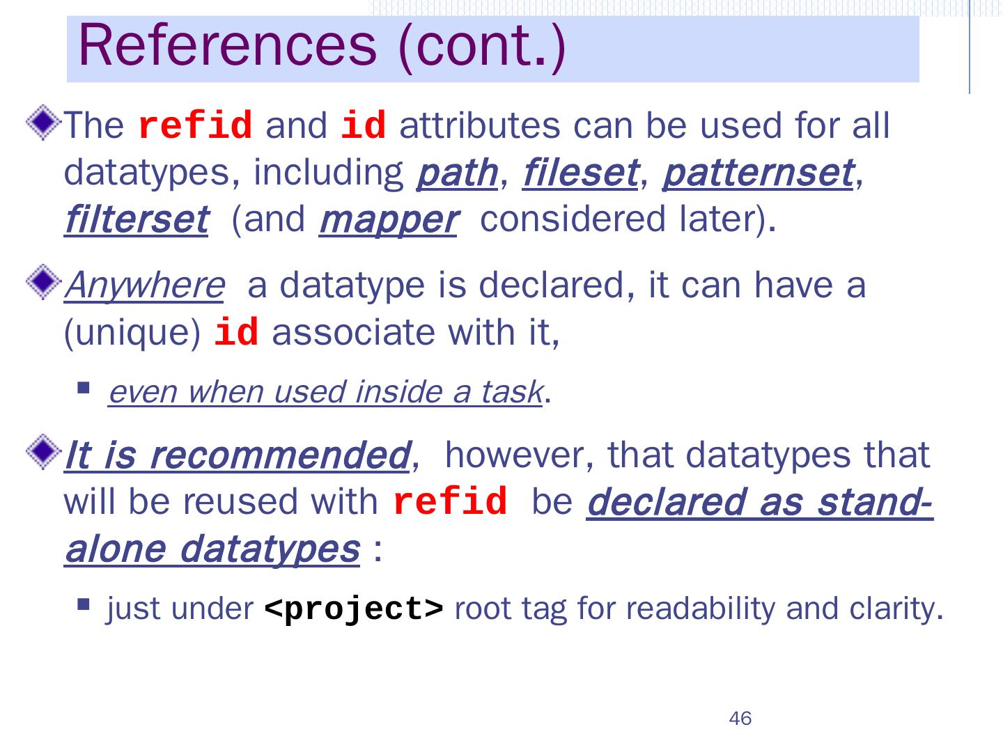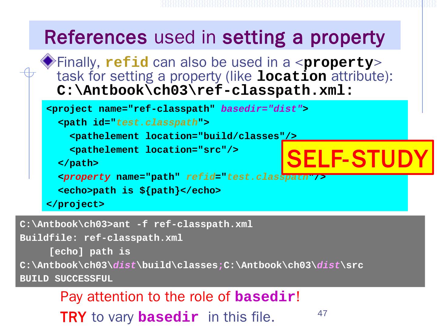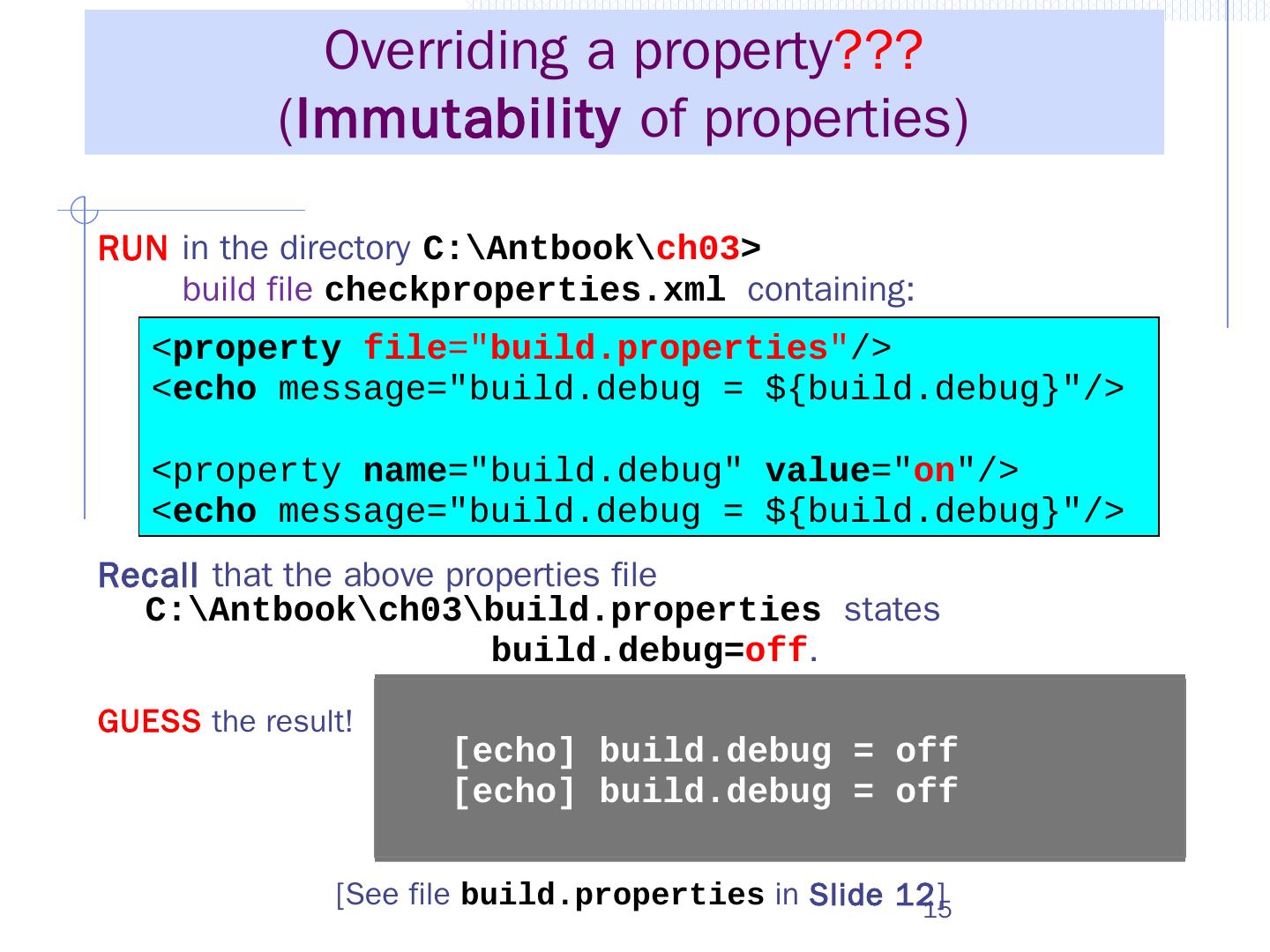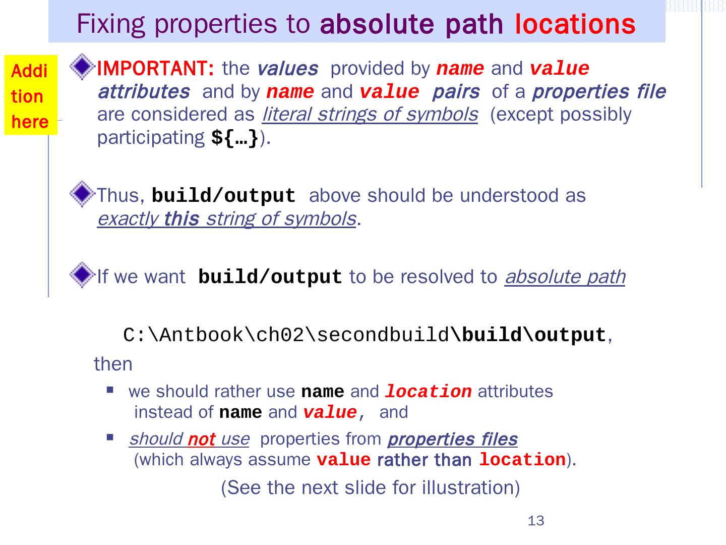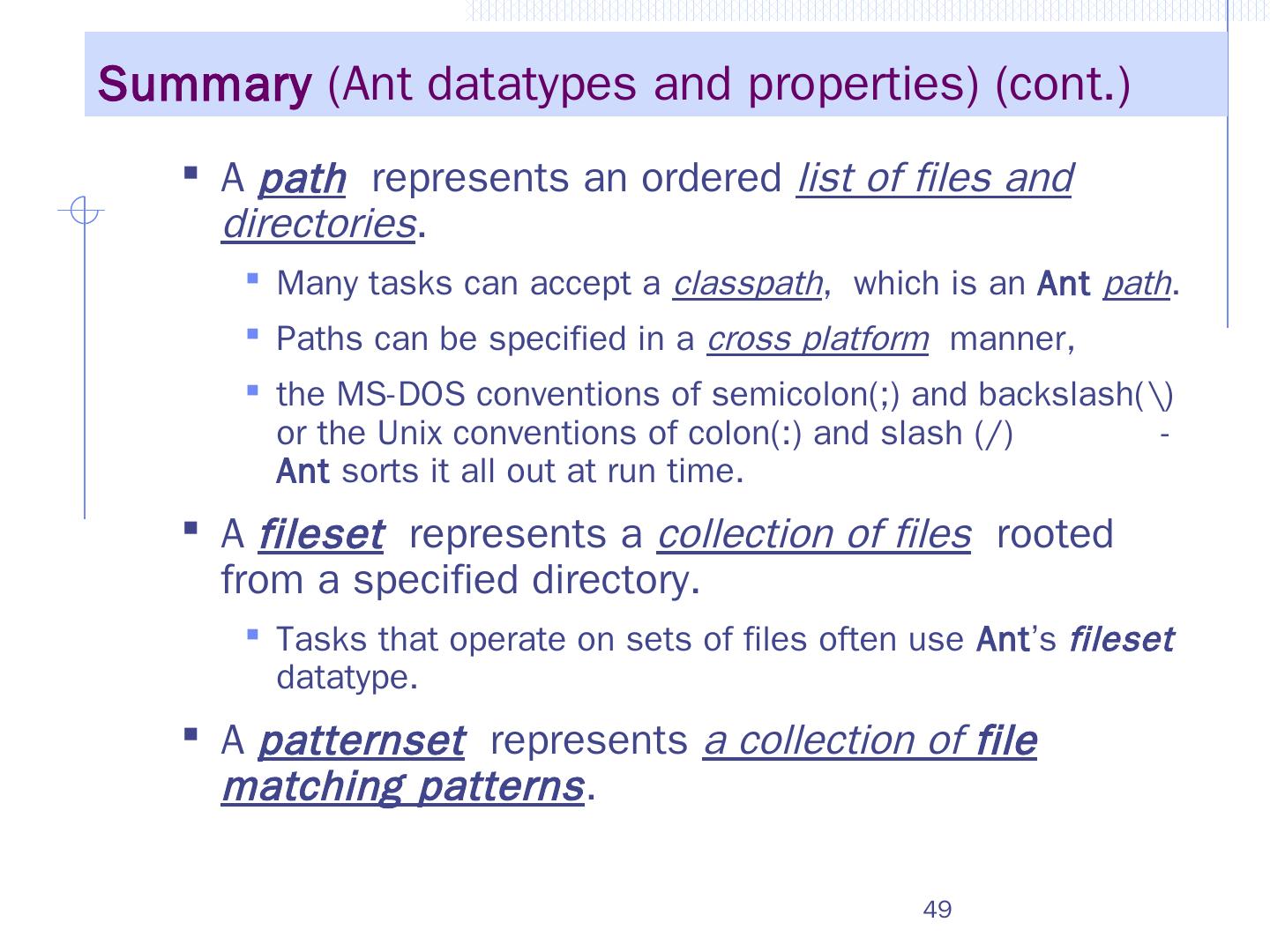 These slides are mainly based on “Java Development with Ant” - E. Hatcher ... [echo] ant.version = Apache Ant(TM) version 1.8.2 compiled on December 20 ...