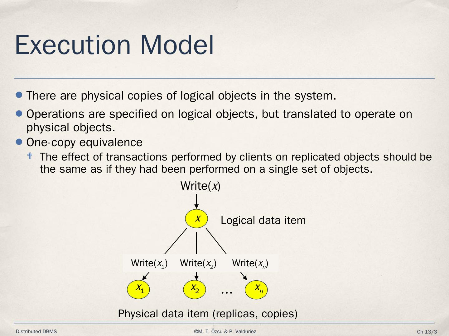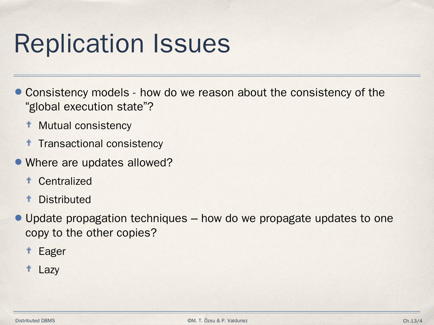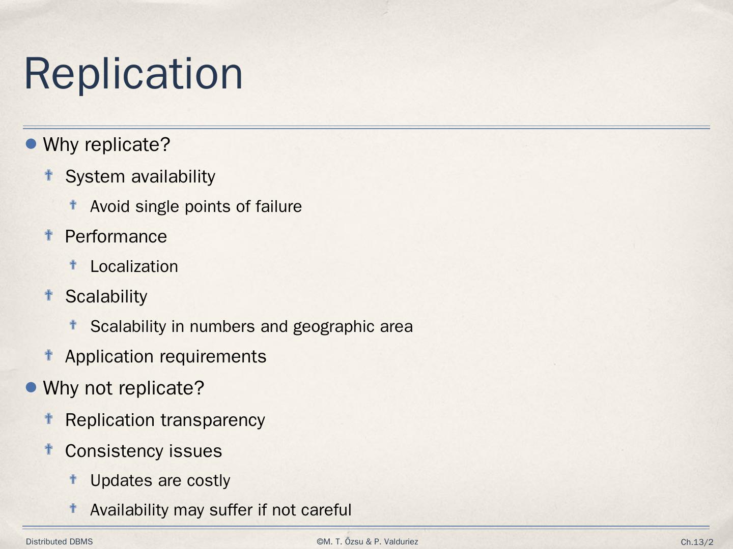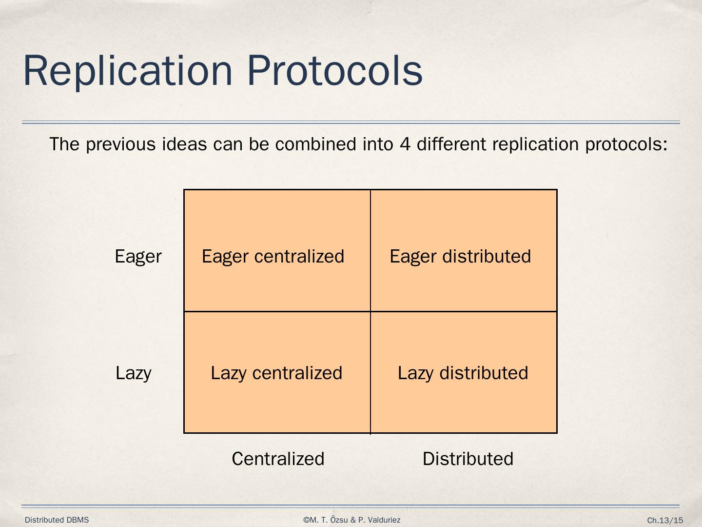 Consistency criteria; Replication protocols; Replication and failure management ... Eventual consistency: the copies are not identical when update transaction ...