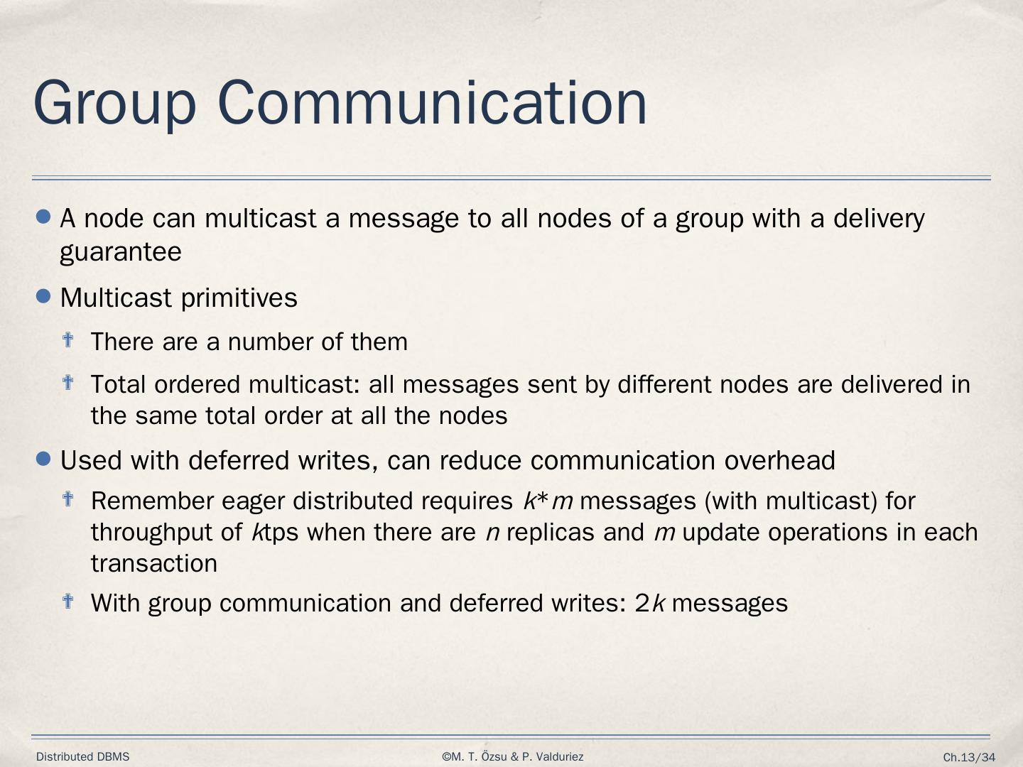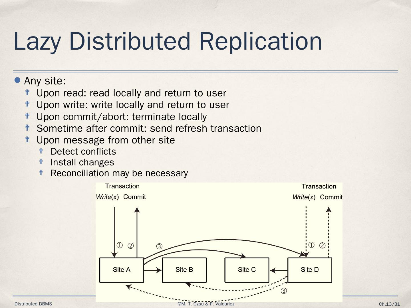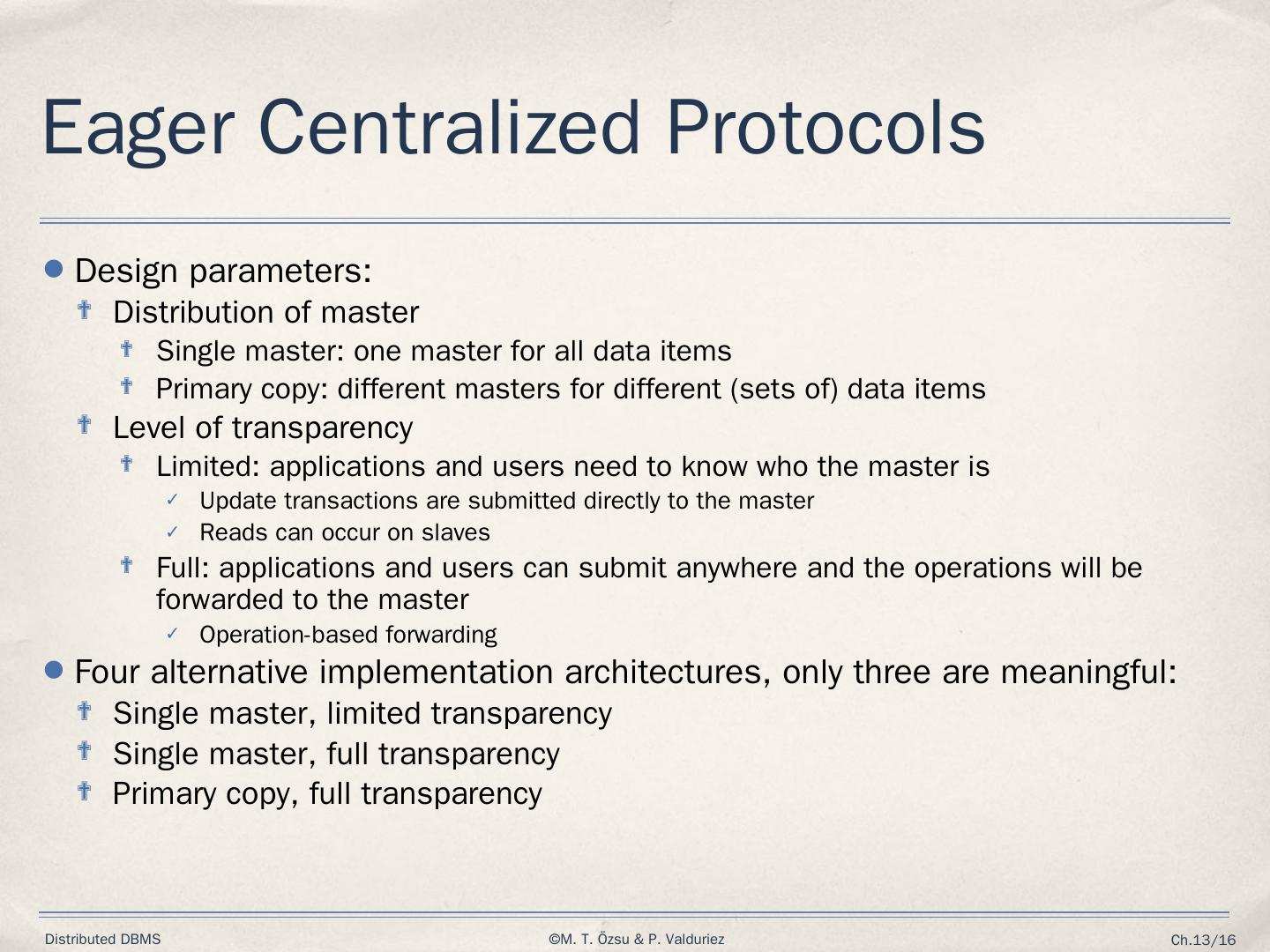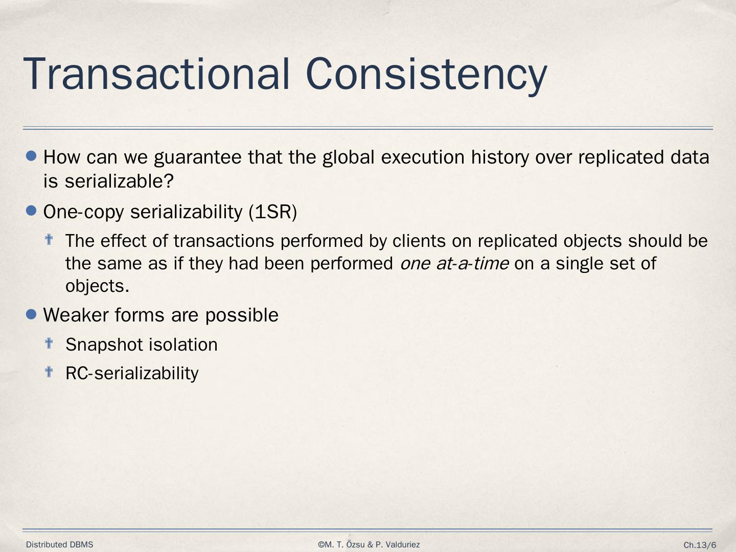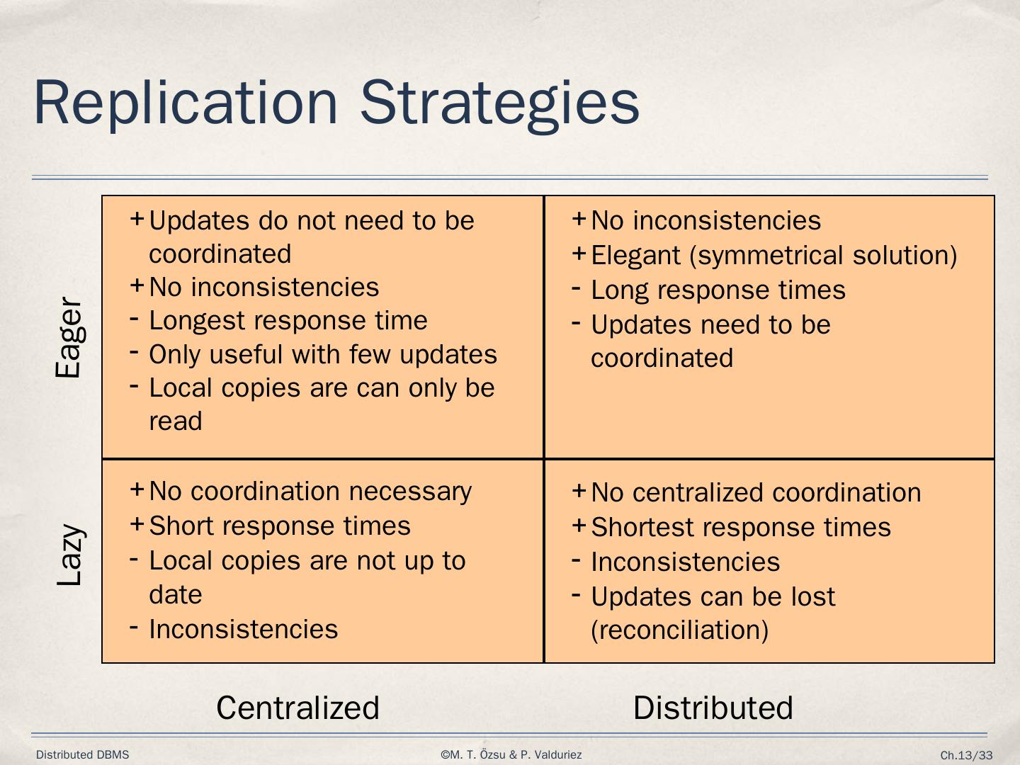Consistency criteria; Replication protocols; Replication and failure management ... Eventual consistency: the copies are not identical when update transaction ...