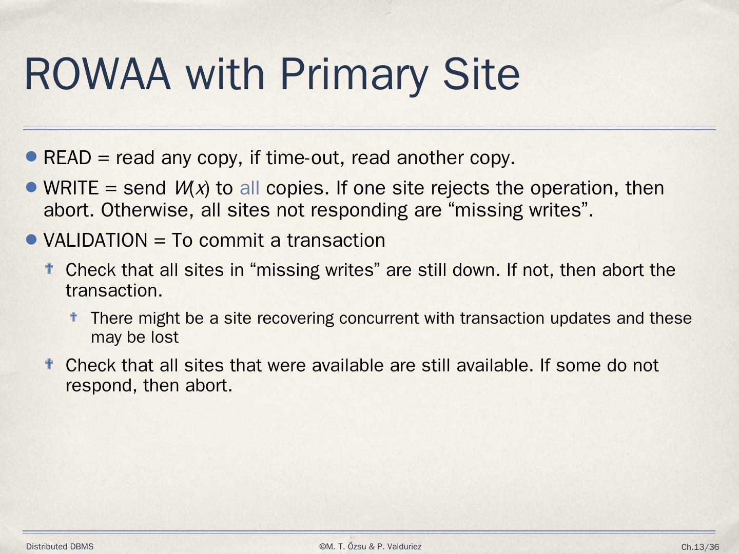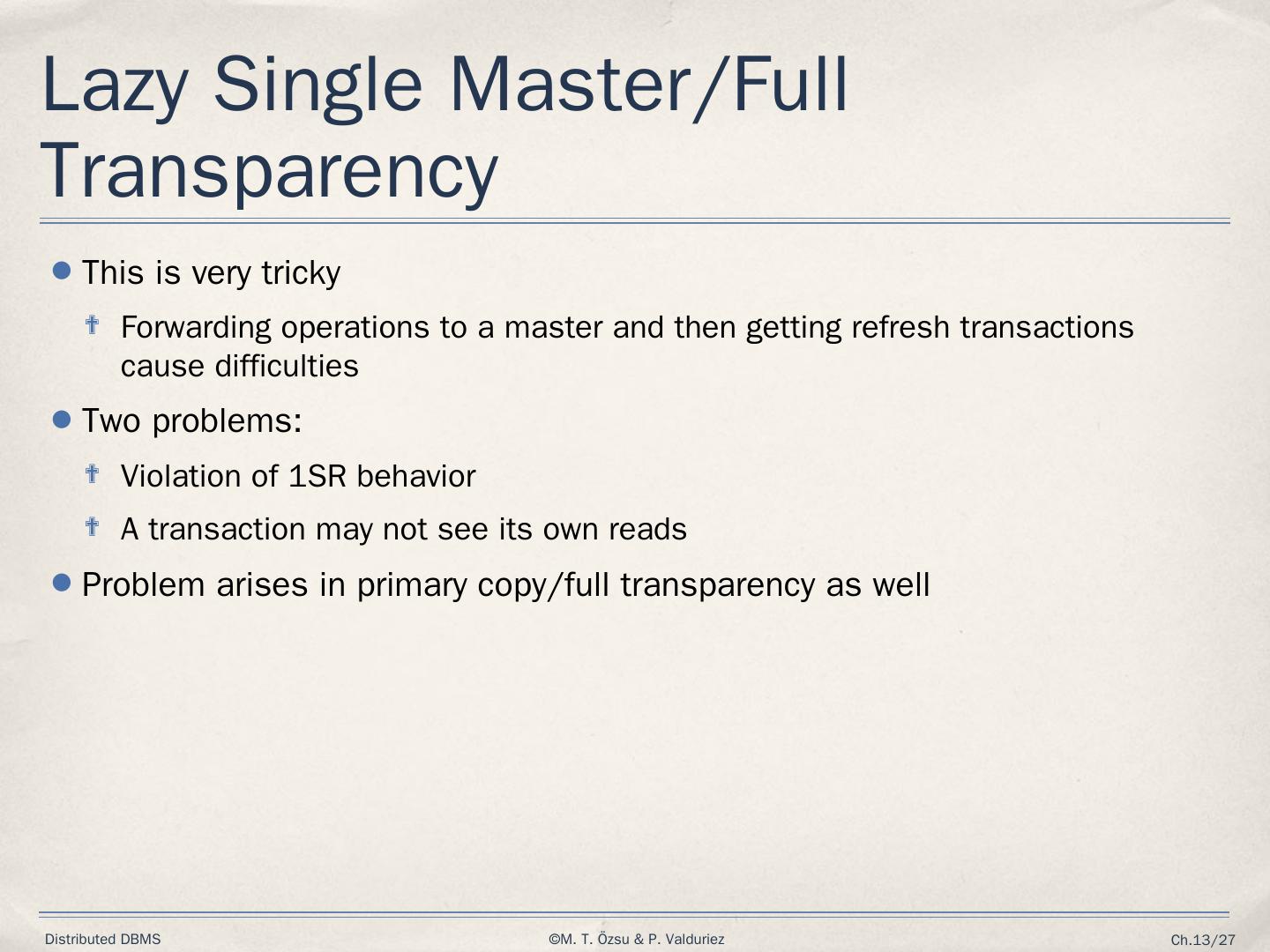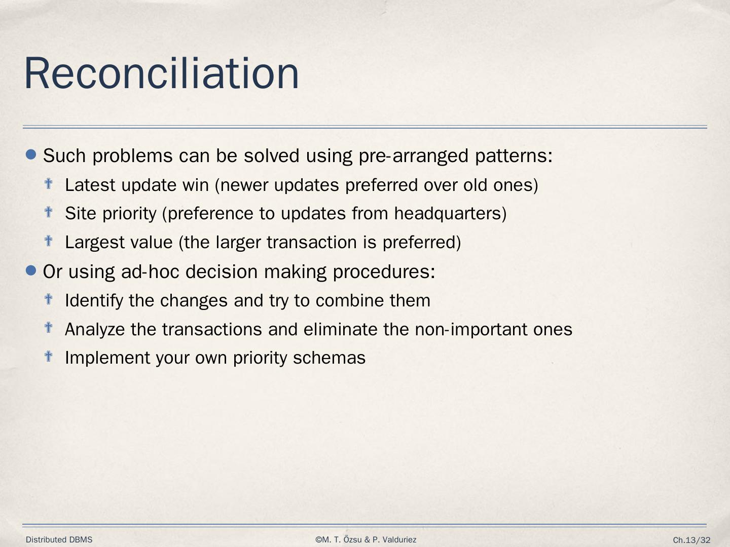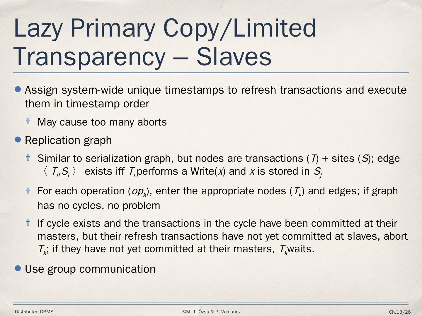 Consistency criteria; Replication protocols; Replication and failure management ... Eventual consistency: the copies are not identical when update transaction ...