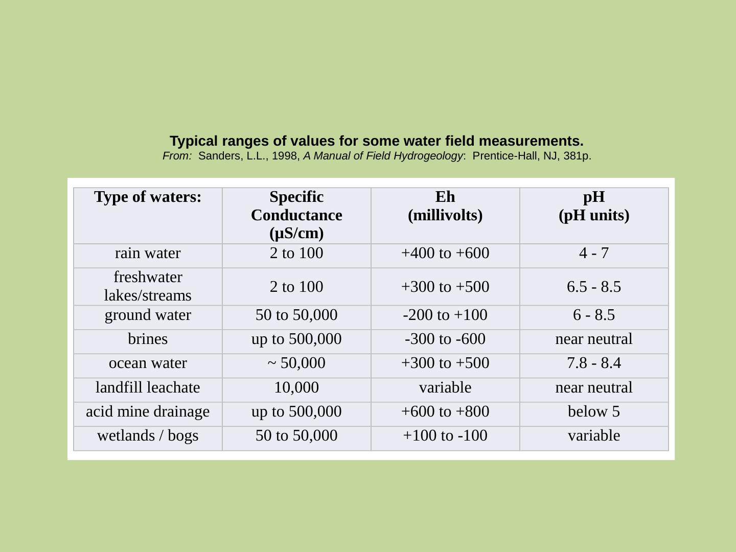 Eh-pH predominance diagram for aqueous chromium at 25 °C (Crtot = 1 µM). Specific conductance (SpC) is a measure of the concentration of soluble salts in ...