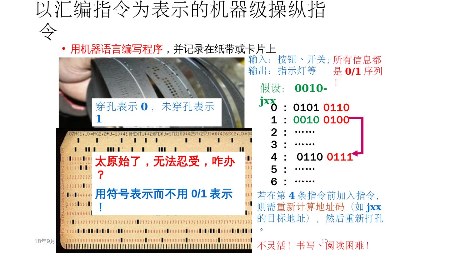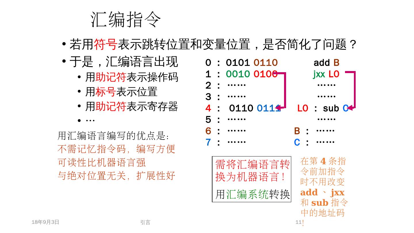计算机能够识别和处理的“语言”,不仅仅是C、C++等,也可以是自己定义的语言 ... 与绝对位置无关,扩展性好. 需将汇编语言转换为机器语言! 用. 汇编系统. 转换. **.