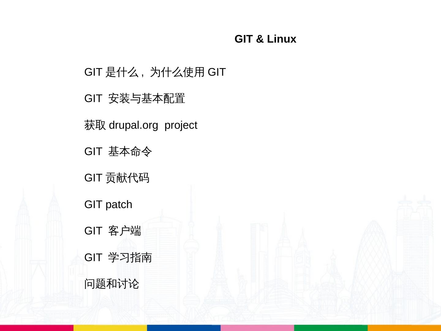 Feature and function introduction to GIT & Linux. June 22 ... Ruby On Rails,jQuery,Perl,Debian,Linux内核, GIT缺点内部设计. 原理难学难懂.