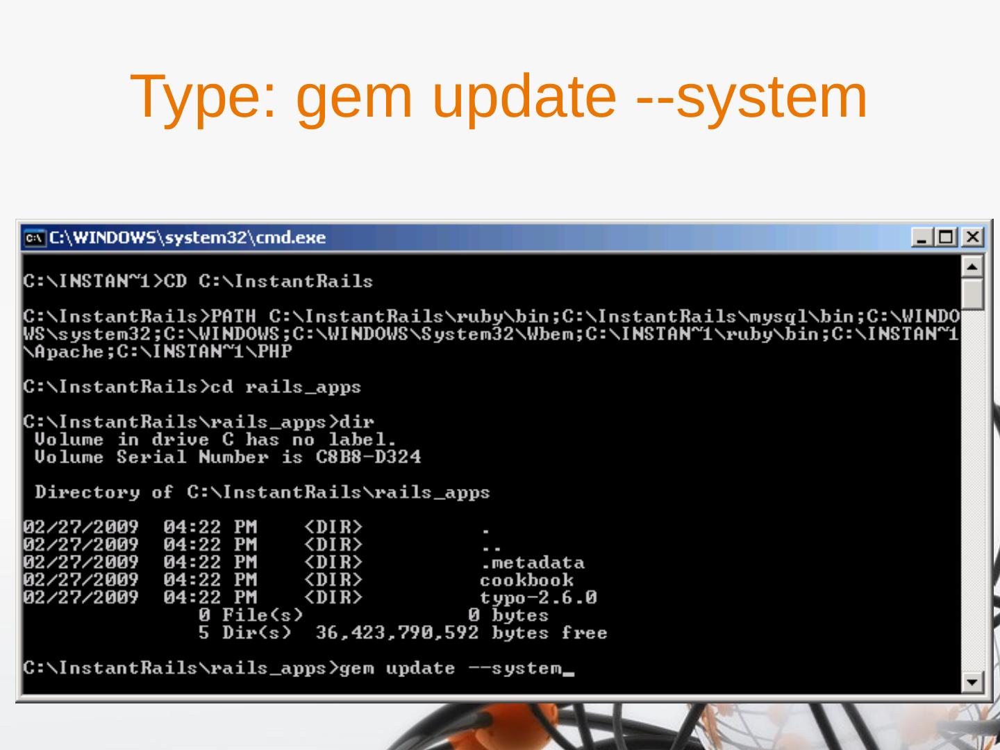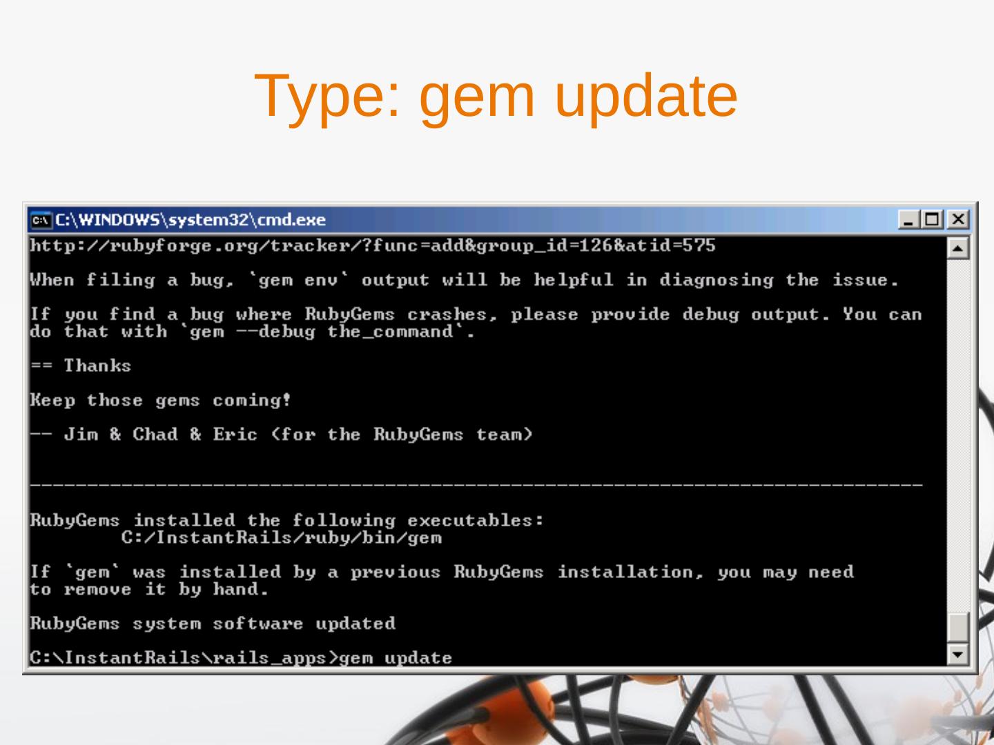 6 . Updating Instant Rails • Opening a Ruby Console 6