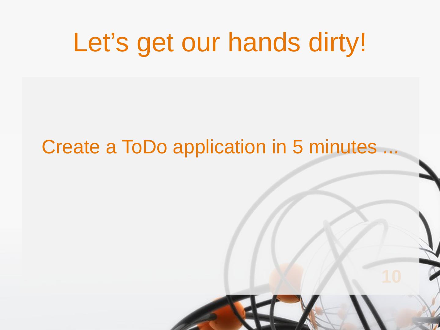 10 . Let’s get our hands dirty! Create a ToDo application in 5 minutes ... 10